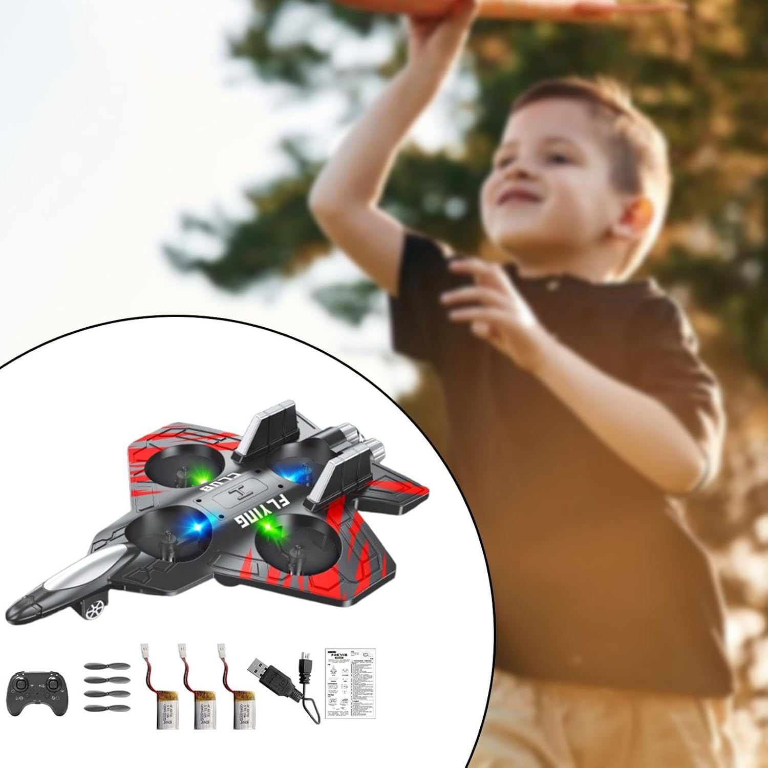 【Materiali di qualità】: Realizzato in schiuma e polipropilene di qualità, questo aereo RC per bambini è costruito per resistere all'usura. La sua struttura robusta garantisce che mantenga la sua forma anche dopo un uso ripetuto. 【Un bel regalo】: ideale per compleanni o feste per bambini, questo RC illuminato è un bel regalo per bambini e bambine dai 3 anni in su che amano l'avventura e il gioco fantasioso 【Dimensioni compatte】: Misurando 25,5 cm x 18 cm x 5,2 cm / 10,04 pollici x 7,09 pollici x 2,05 pollici, questo giocattolo aereo è leggero e portatile, il che lo rende ideale per l'uso interno o esterno in vari ambienti , cortili o parchi 【Funzionalità interattive】: goditi una gamma di funzioni entusiasmanti con questo giocattolo da combattimento, tra cui luci, sensori e capacità di acrobazie, offrendo un divertimento senza fine sia per i bambini che per adulti a casa 【Design realistico】: prova l'emozione del volo simulato con questo aeroplano telecomandato in schiuma, caratterizzato da un design creativo e realistico che aggiunge al tuo tempo di gioco