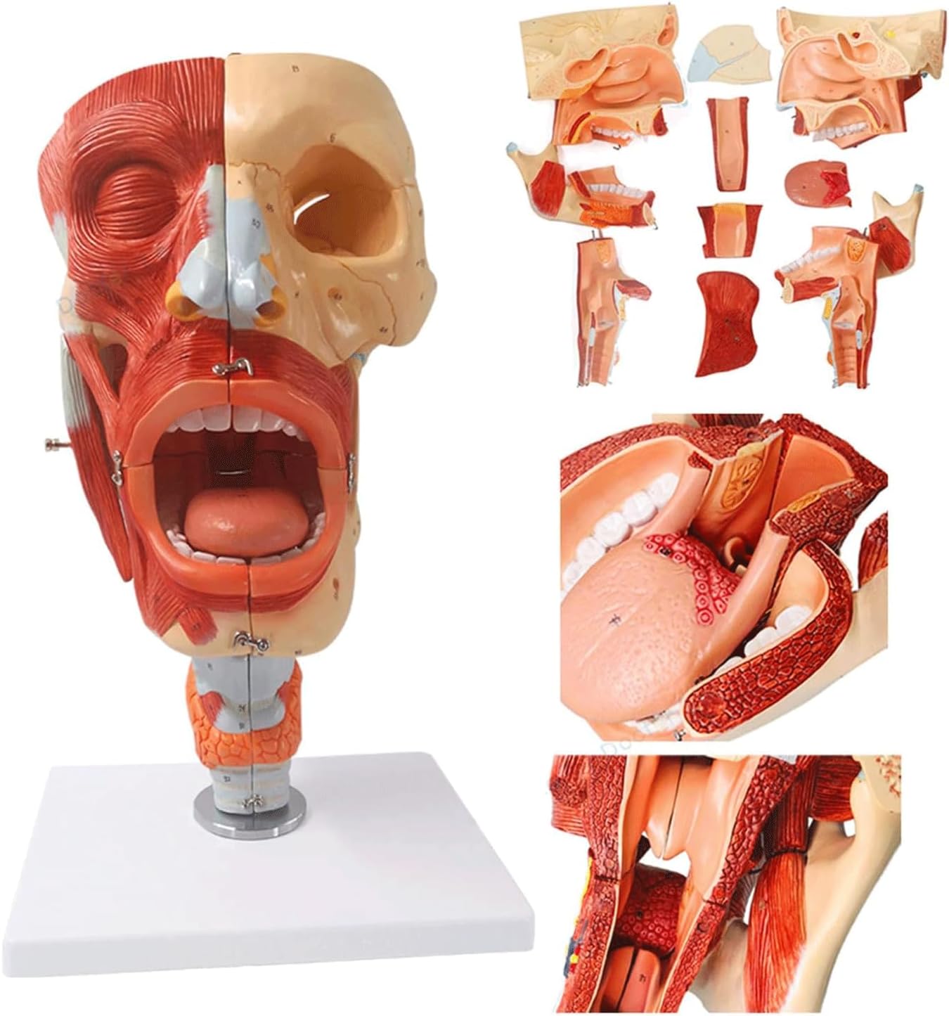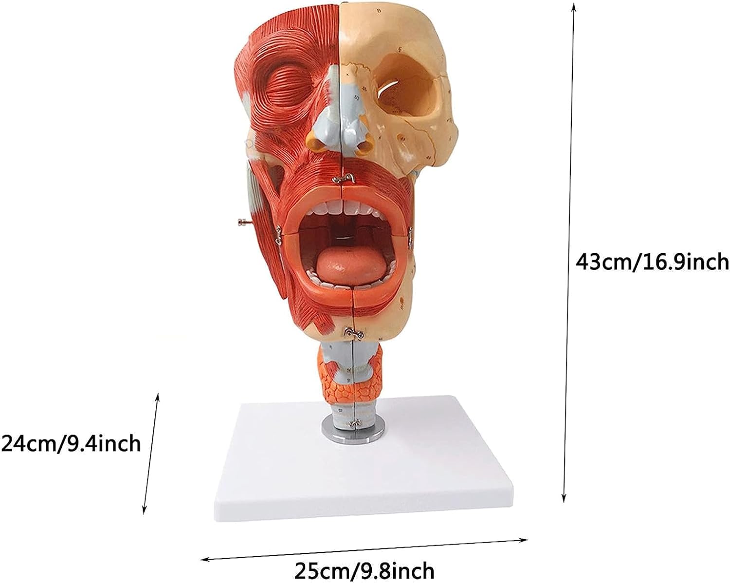 È utilizzato per strumenti di insegnamento scolastico, mostre e collezioni di apprendimento. Realizzato materiale in PVC, senza un odore peculiare.Il materiale e il colore di ciascun modello sono rigorosamente controllati.Progettato per essere facile da pulire e supportare le alte temperature, realistiche e senza odore. Mostra principalmente i muscoli facciali a destra, la forma del cranio a sinistra e l'anatomia della cavità orale, la cavità nasale, la faringe e la laringe. Insegnamento scolastico, apprendimento, ricerca su strumenti di visualizzazione e forniture di ornamenti di laboratorio.Ideale per scuole, ospedali, aiuti visivi nell'insegnamento della salute fisica. Una varietà di ambito: può essere utilizzato non solo come strumento di apprendimento degli studenti, ma anche come strumento di comunicazione per medici e pazienti.Abbastanza per soddisfare chiunque sia interessato all'organo umano.