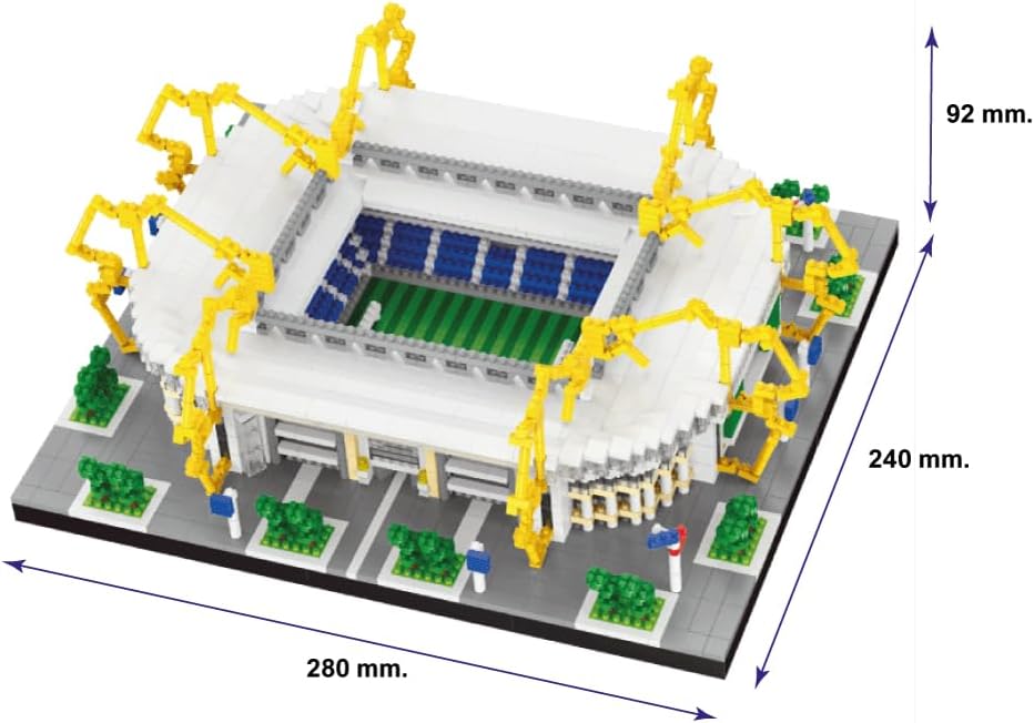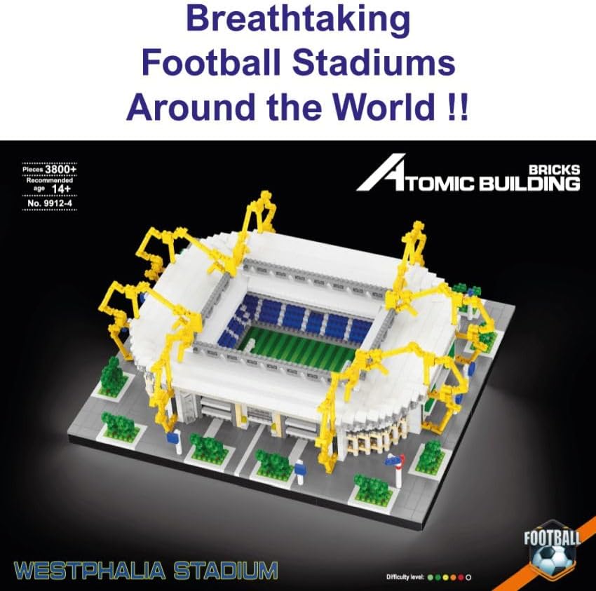 SET DI MATTONCINI IN MINIATURA per costruire lo stadio più iconico della Germania. Ricrea con precisione il famoso stadio di Dortmund, situato nella regione della Vestfalia, noto per la sua atmosfera vivace e per ospitare uno dei club di calcio più appassionati d'Europa. MODELLO DETTAGLIATO con oltre 3800 pezzi. Una volta assemblato, il modello misura 280 x 240 x 92 mm, catturando l'essenza architettonica di questo colosso sportivo. INCASTRO PERFETTO E FINITURA PROFESSIONALE. I blocchi, simili ai set più popolari ma in formato miniatura, sono realizzati in plastica di alta qualità che garantisce una costruzione solida, precisa e con un livello di dettaglio eccezionale. SFIDA AVANZATA per costruttori esperti. Ideale per adulti e giovani con esperienza nei giochi di costruzione. A causa della sua complessità, non raccomandato per minori di 14 anni. VERSIONE MIGLIORATA. Base rinforzata di 10 mm di spessore per una maggiore stabilità. Manuale di istruzioni più chiaro e dettagliato per facilitare il montaggio passo dopo passo.