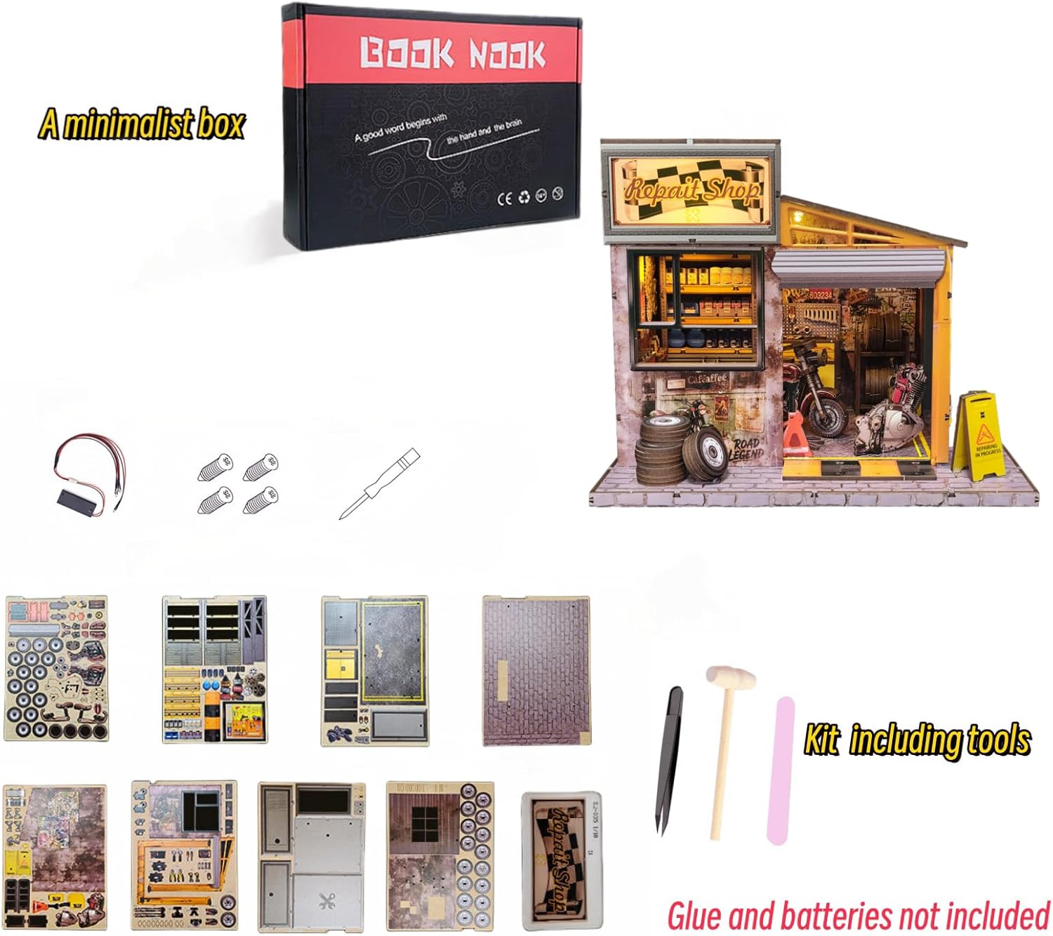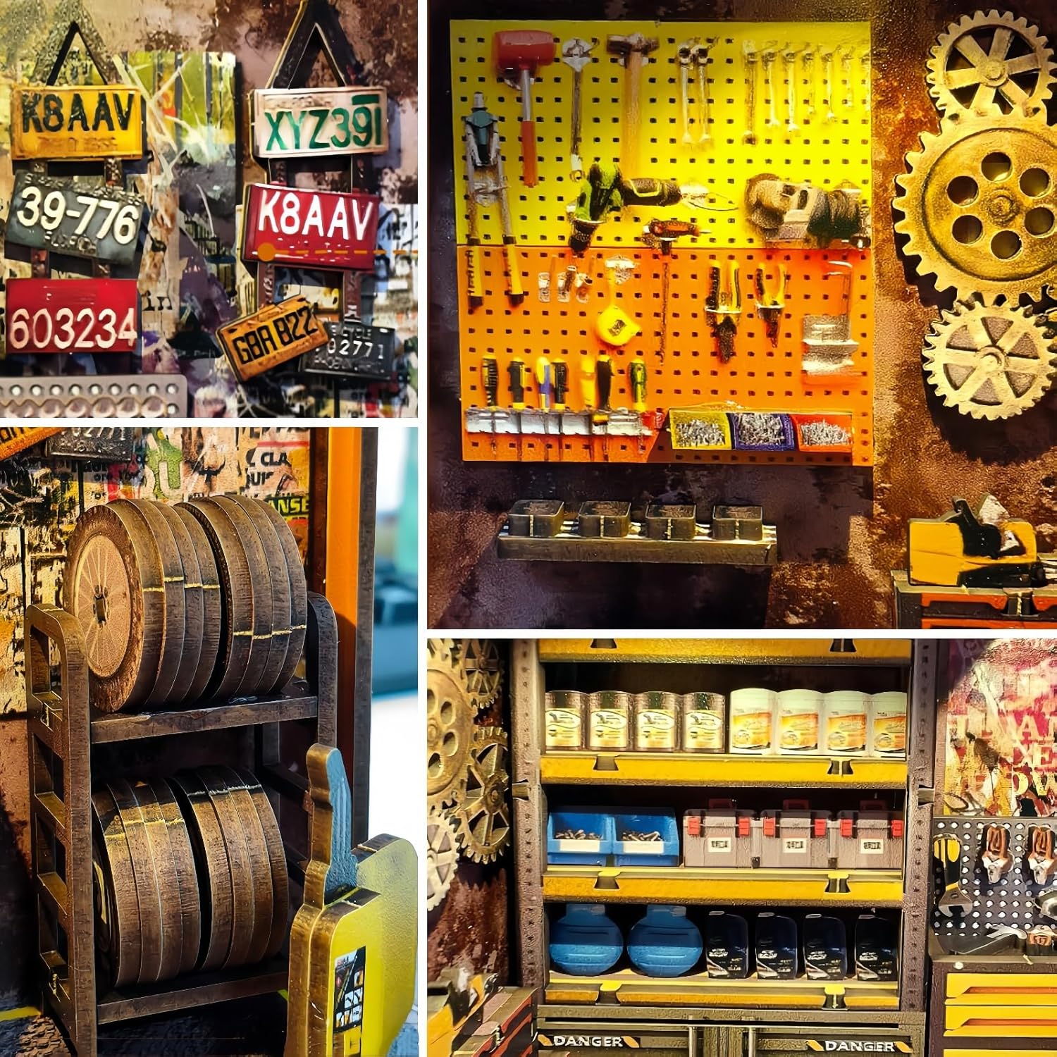 Un'officina di motociclette retrò: questo modello miniaturizza un'officina di riparazioni moto d'epoca. Costruirai una scena piena di estetica meccanica e fascino industriale con le tue mani, catturando il fascino unico del garage di un artigiano. Ricchi dettagli meccanici: il modello è ricco di vari dettagli meccanici, tra cui ingranaggi, chiavi, pneumatici, una cassetta degli attrezzi ben fornita, un pannello forato universale e un motore smontato, il tutto replicando meticolosamente una vera officina. Divertimento coinvolgente artigianale: goditi la gioia creativa di costruire da zero. Questo modello offre un processo di assemblaggio pieno di bellezza meccanica e un forte senso di realizzazione. Una miscela di praticità ed estetica: non è solo una bella opera d'arte, ma anche una perfetta decorazione per la casa. Che sia su una scrivania, su una vetrina o in un ufficio, diventa un punto focale unico che mette in mostra la tua passione per i macchinari. Regalo creativo per adulti: questo modello è un ottimo regalo per gli amanti dell'artigianato, gli appassionati di moto o meccanici. È più di un regalo; è un ricordo unico e bello che puoi creare con le tue mani.