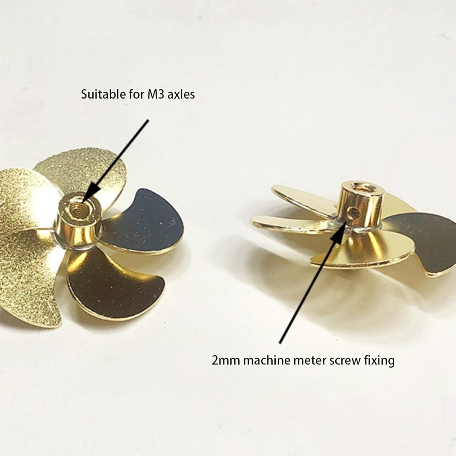 Coppia di eliche a 5 pale in ottone da 30 mm progettate for modelli di navi RC e aggiornamenti di barche fai da te Costruzione in ottone di alta qualità for durata e resistenza alla corrosione Il foro dell'albero M3 si adatta ai sistemi di trasmissione standard delle imbarcazioni fissati con viti di fissaggio M2 Lame saldate di precisione in stagno for una migliore propulsione e efficienza dell'acqua Ideale for navi RC in scala che forniscono movimento stabile e realistico