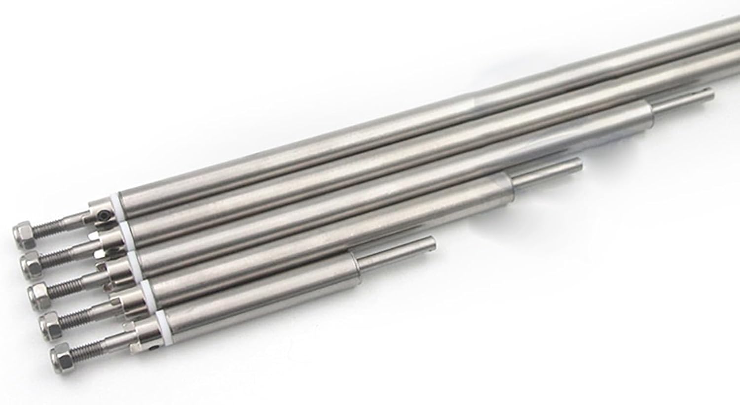 Kit albero motore per barca modello RC: realizzato in acciaio inossidabile 304 durevole e resistente alla ruggine con rotazione regolare ed elevata efficienza di trasmissione. Taglie disponibili: le lunghezze dell'albero vanno da 10 cm a 35 cm, con un diametro esterno del manicotto di 9 mm. Kit completo: comprende albero, manicotto, forcella elica, rondella, cuscinetti e dado autobloccante. Prestazioni elevate: i doppi cuscinetti a sfera ad alta velocità garantiscono una trasmissione fluida ed efficiente. Ampia applicazione: perfetta per modellini di barche, repliche in scala, modelli di barche in legno e barche professionali O e V.