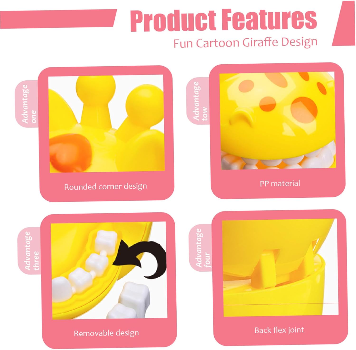 Ideale per l'uso in classe e a casa: perfetto sia per insegnanti che per genitori, questo modello di denti è un eccellente strumento educativo per aule o sessioni di apprendimento a casa, fornendo un approccio pratico alla comprensione della salute dentale. Materiali adatti ai bambini: realizzato con materiali adatti ai bambini, questo modello di denti è costruito per resistere al gioco e all'apprendimento entusiasti, garantendo uno strumento didattico sicuro ed efficace per gli aspiranti giovani studenti. Spazzolino interattivo incluso: il set viene fornito con uno spazzolino a misura di bambino che consente ai bambini di esercitarsi nelle tecniche di spazzolatura, rendendo l'igiene orale divertente e interattiva e aiutandoli a sviluppare sane abitudini igieniche. Coltivazione delle abitudini igieniche: questo modello dimostrativo di denti è specificamente progettato per promuovere abitudini igieniche insegnando ai bambini l'importanza di lavarsi regolarmente i denti e delle cure dentistiche in modo giocoso che incoraggia abitudini durature. Divertente design con giraffa a forma di cartone animato: il nostro modello di denti per insegnare ai bambini presenta un'adorabile giraffa a forma di cartone animato, rendendo l'esperienza di apprendimento coinvolgente e divertente per i bambini, catturando il loro interesse per l'igiene orale fin dalla tenera età.