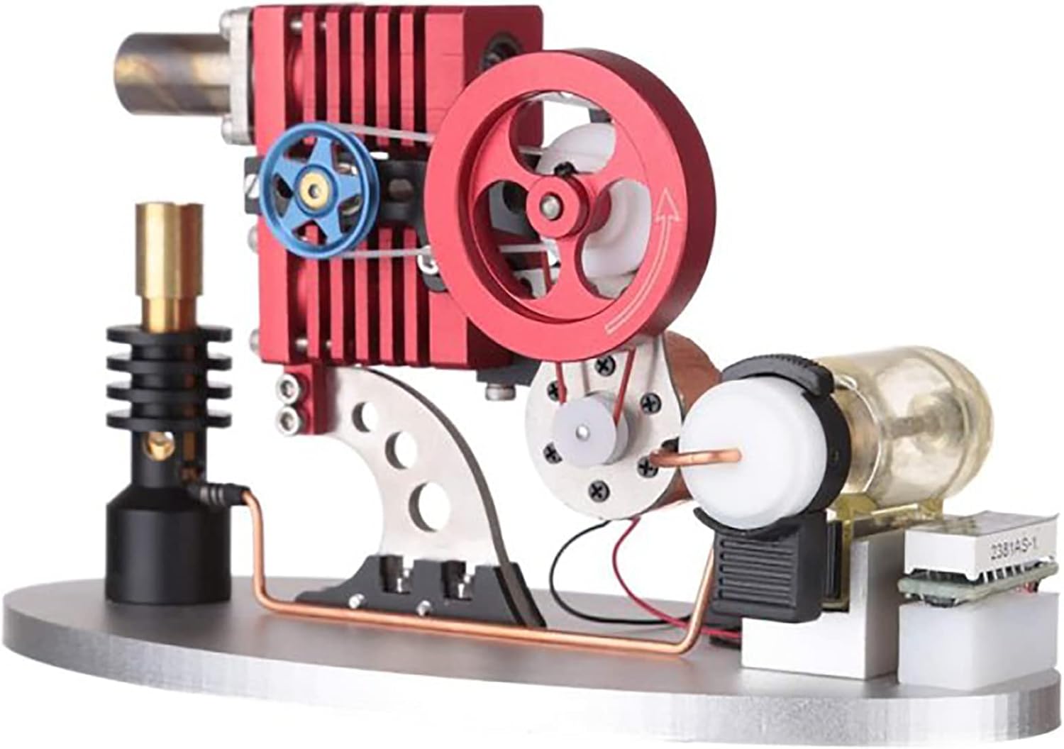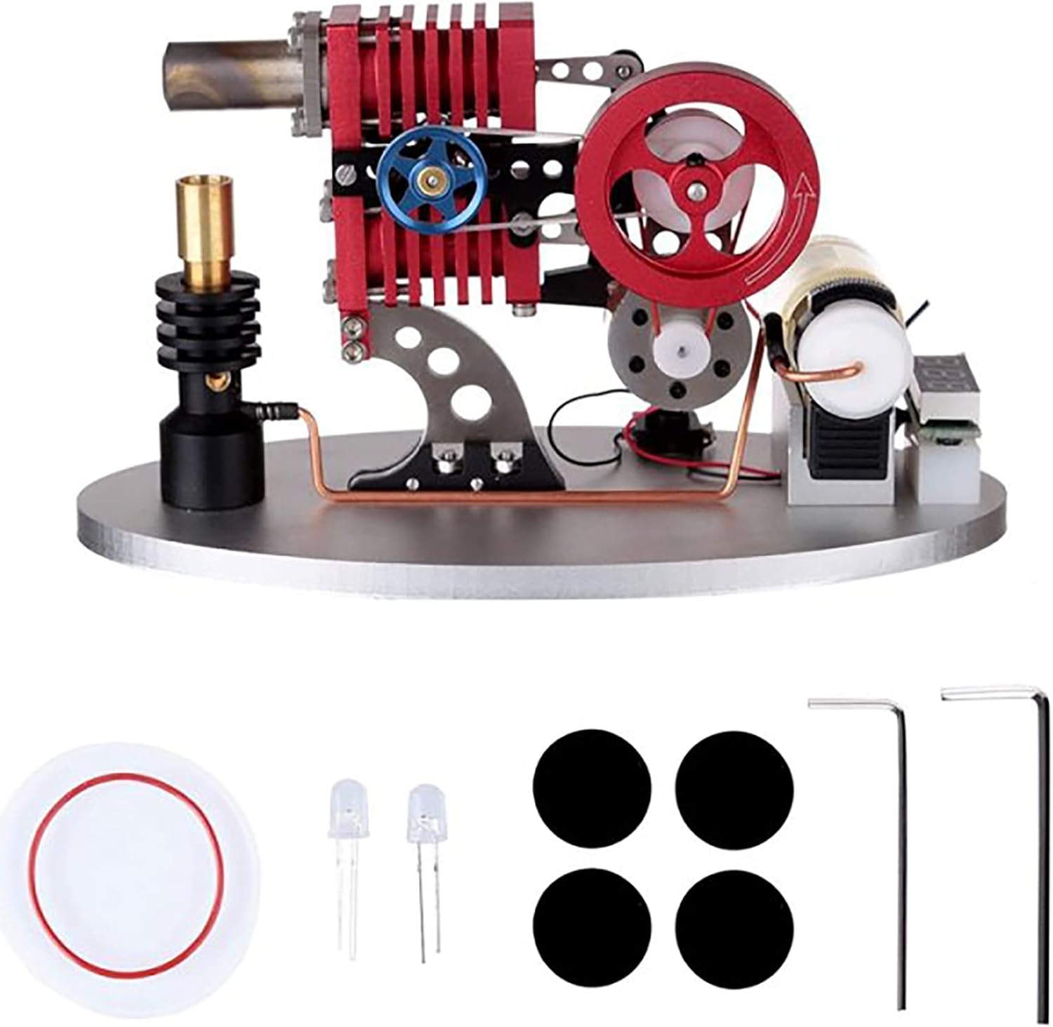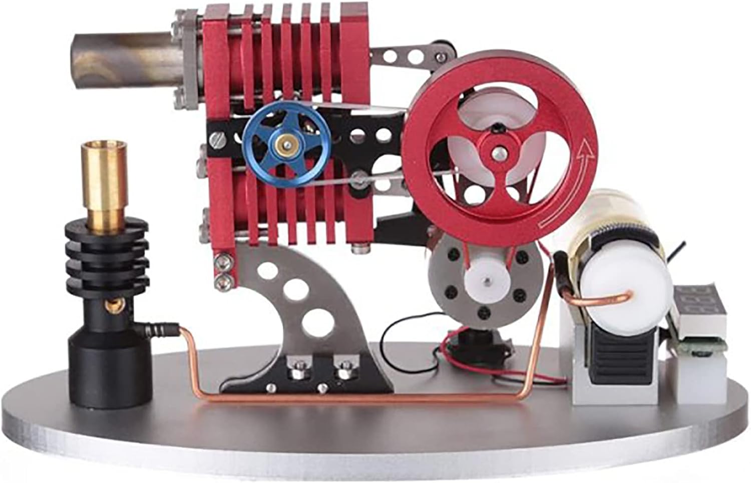 Modello di motore Stirling: questo modello di motore Stirling adotta una struttura di collegamento del bilanciere a doppio pistone e doppio cilindro, con un piccolo generatore e sfere di lampada a LED ed è dotato di un misuratore di visualizzazione digitale della tensione. Il design complessivo è molto bello e accattivante. *Artigianato eccellente: la superficie della macchina è squisitamente trattata e ricca di lucentezza metallica. Le parti sono abbinate con alta precisione. È dotato di un serbatoio per il carburante del gas butano. La macchina funziona in modo fluido e affidabile. *Giocattoli educativi: le perle della lampada a LED emettono luci brillanti quando la macchina è in funzione, il voltmetro può osservare la tensione di generazione di energia in tempo reale e puoi anche preparare una piccola lampadina da 5 V e collegarla a un piccolo generatore per accendersi, che è infinito spazio all'immaginazione e al desiderio di esperimenti pratici. *Usi: posizionare il modello del motore Stirling su un tavolo orizzontale, iniettare il gas butano nel serbatoio del gas, accendere e preriscaldare per 30 secondi, quindi girare manualmente il volano per facilitare l'avvio. *Servizio: se hai domande sui nostri prodotti, ti preghiamo di contattarci in tempo, ti risponderemo al più presto entro 24 ore. Felice shopping!