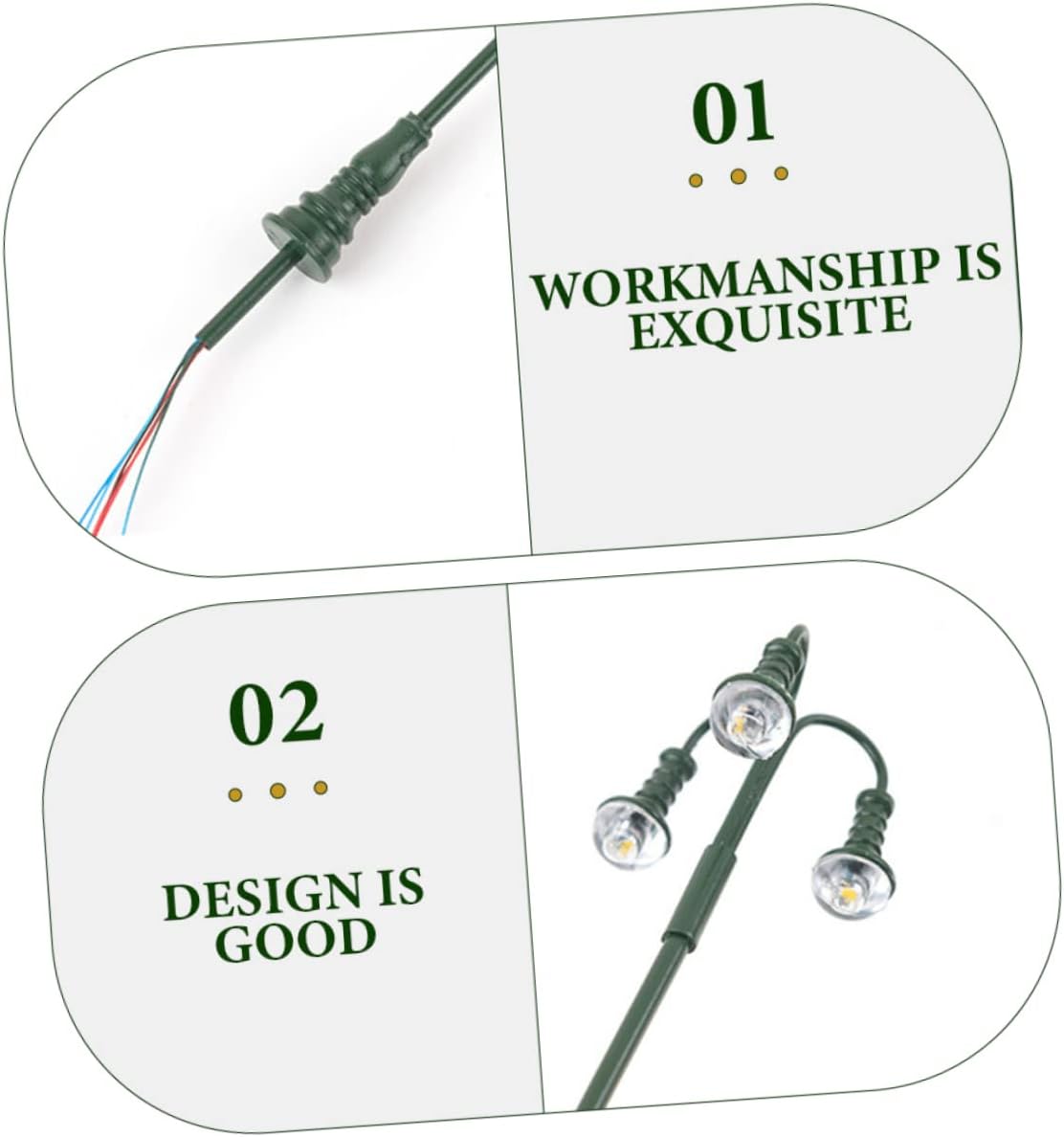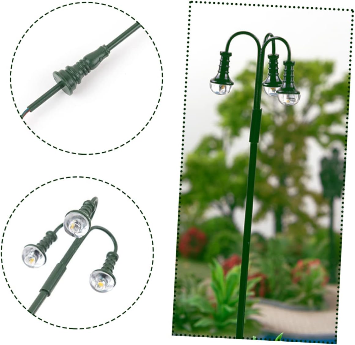 Luci da giardino in miniatura: questo modello di lampione in miniatura è fantastico per te o per la tua famiglia che ama i mini lavoretti e i modellini di luci del treno Arredamento da giardino in miniatura: posizionalo nella tua mini casa o stanza per dettagli più realistici, rendi la mini casa più affascinante, modello di mini lampione Lampioni stradali in miniatura: il modello di lampione è fatto, molto pratico per una decorazione di lunga durata, modello di lampione Modelli di lampione simulato: adatti per mini casa e tavolo di sabbia, ottima decorazione per la tua mini casa, scene di vita colorate, modellino di lampada ferroviaria Modelli di lampada: il modello di lampione da cortile ha una base piatta, che garantisce stabilità sulla scrivania e sul pavimento. materiali per lampioni