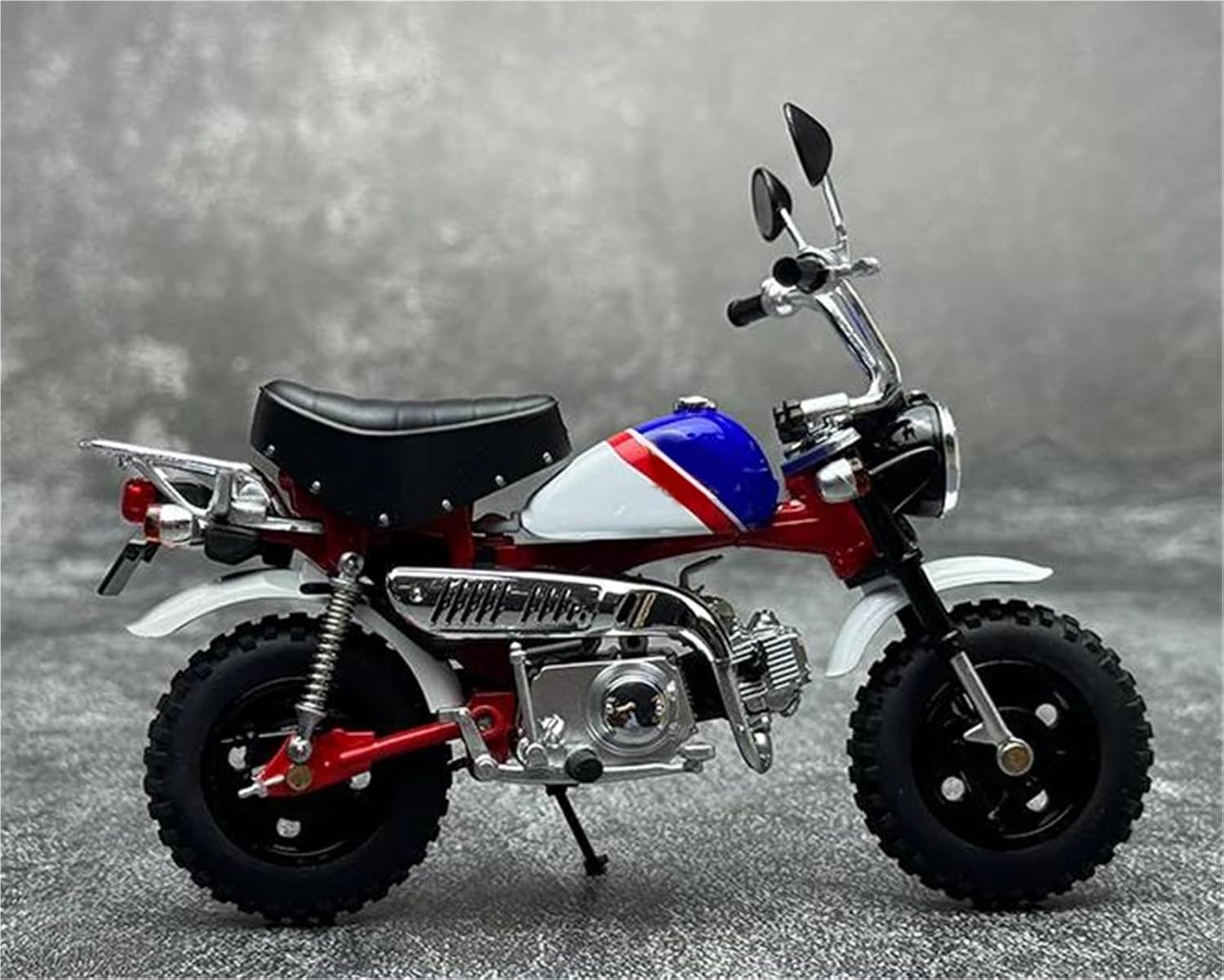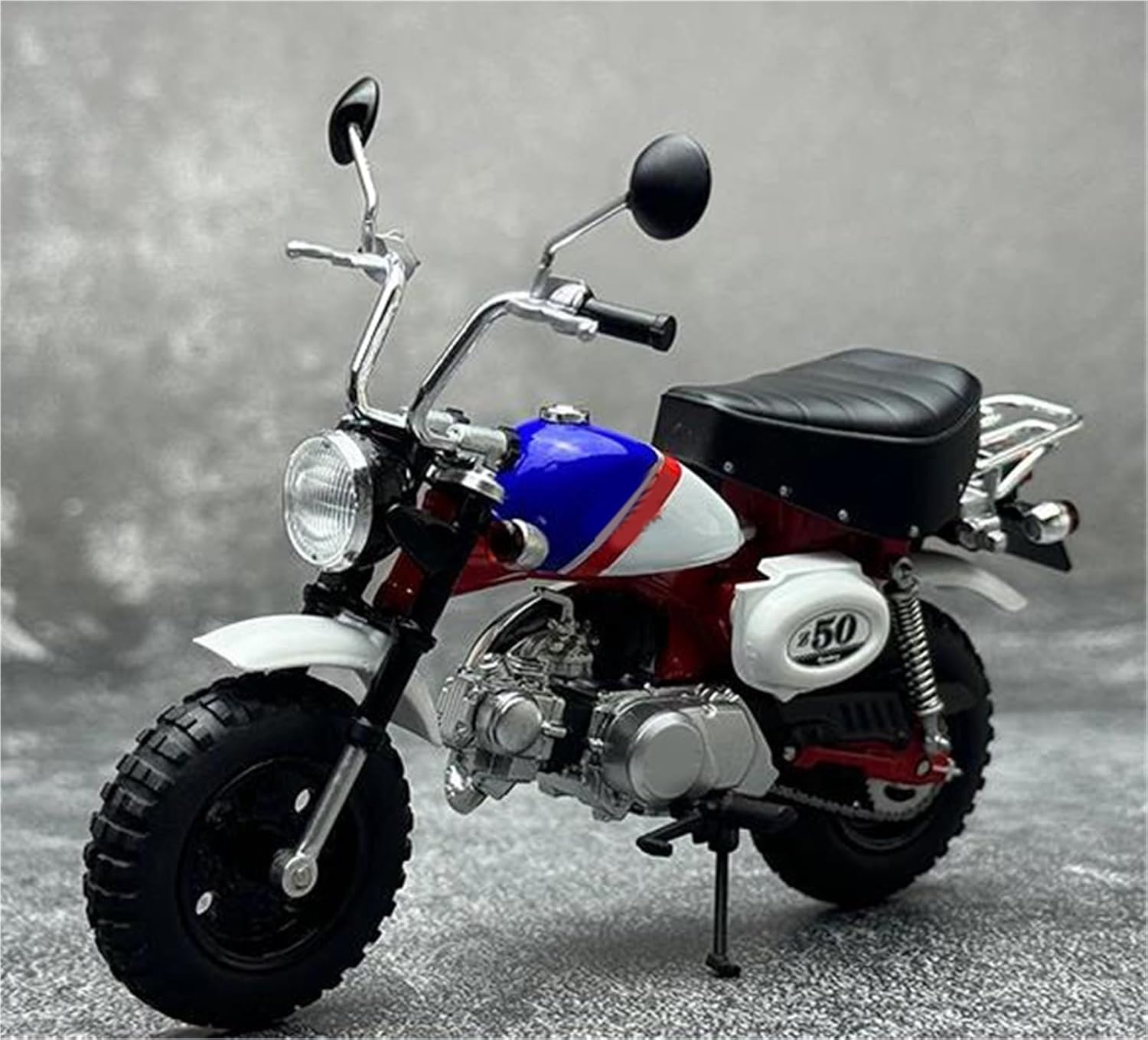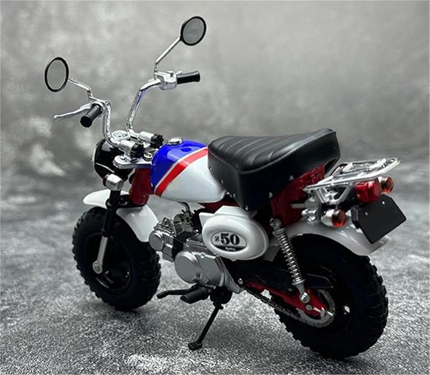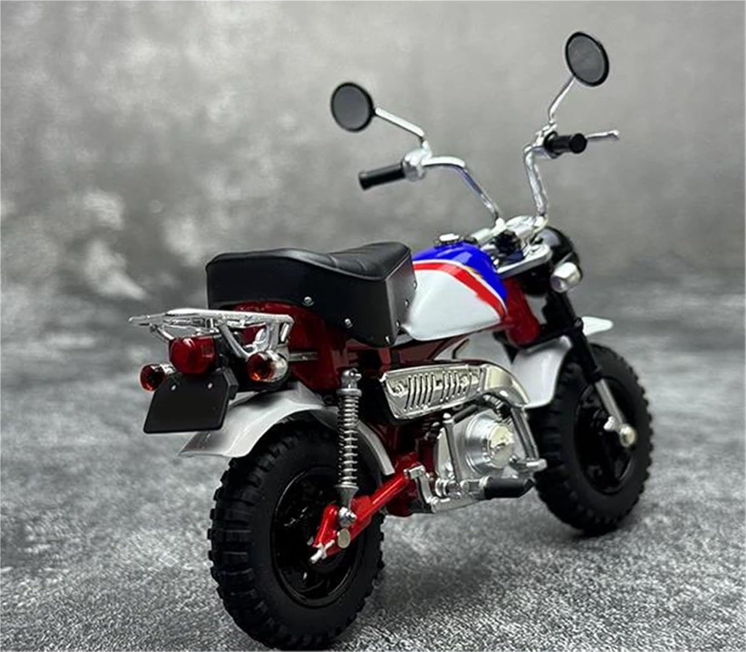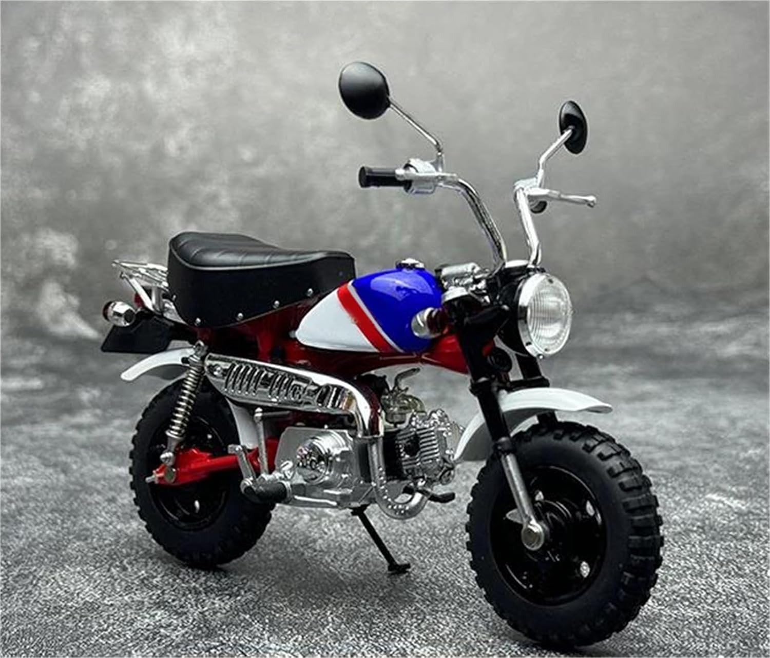 Modello di auto giocattolo moto in scala 1:12, il modello è durevole e duraturo. La costruzione robusta consente di esporlo con orgoglio anno dopo anno senza rompersi. Il modello di moto è un modello squisito realizzato in stretta conformità con la forma, la struttura, il colore, gli interni e altre proporzioni del veicolo originale. È un modello in miniatura del veicolo originale ed è progettato per riprodurre l'aspetto del veicolo originale. Modello di auto di simulazione Modello di moto per Monkey 2000, funzione del modello: 2 ruote possono rotolare, la ruota anteriore può girare. Realizzato in resistente lega di zinco, è resistente alle cadute e all'usura, garantendo la durevolezza del modello e la sua lunga conservazione. La finitura della vernice è uniformemente liscia, con colori vivaci e duraturi che resistono allo sbiadimento e alle scheggiature, garantendo un aspetto costantemente brillante.