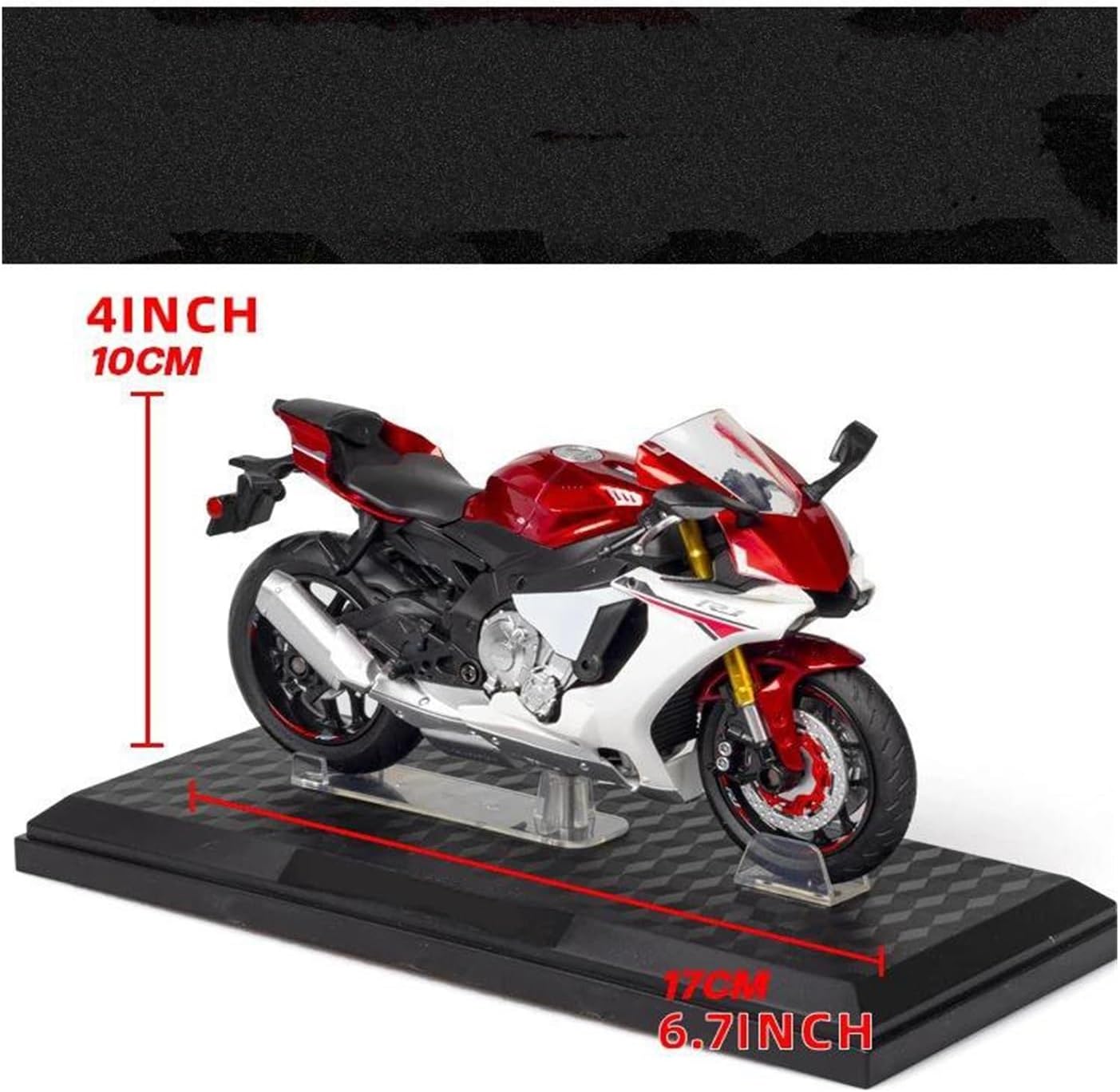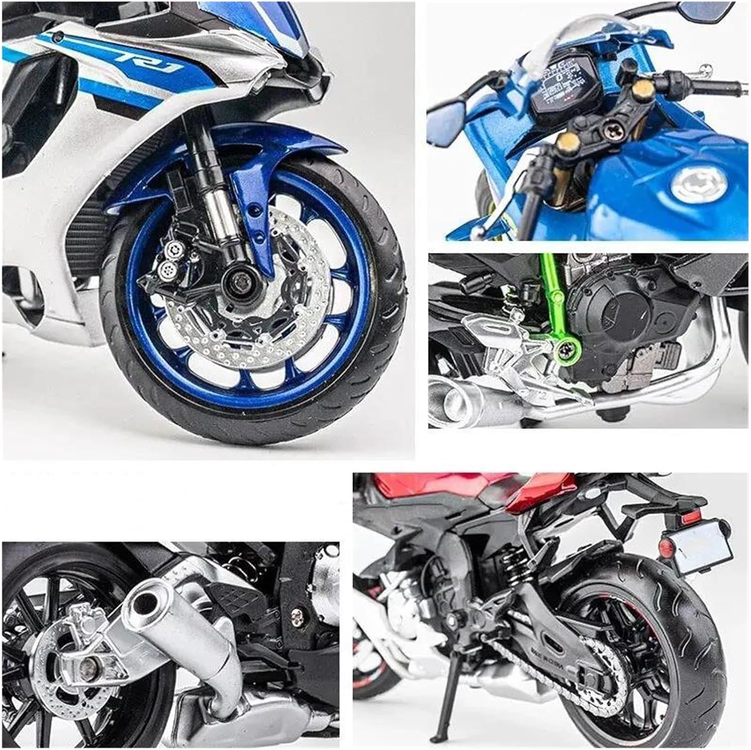 La robusta e durevole motocicletta pressofusa è realizzata con serbatoio del carburante in lega di zinco + parti in plastica ABS e pneumatici in gomma. Riprodotta con straordinaria accuratezza, non è stato tralasciato alcun dettaglio, dal motore e dal sedile unici alle curve eleganti, rendendo questa una replica assolutamente fedele. La ruota anteriore del modello di moto può ruotare insieme al manubrio. La ruota anteriore può ruotare in modo flessibile e le ruote anteriore e posteriore simulano un effetto ammortizzante. Perfetto per l'esposizione su tavolo. Leggero ma robusto, è un oggetto da collezione ideale per gli appassionati di modellismo motociclistico di tutte le età. Per soddisfare le esigenze dei nostri clienti, per qualsiasi domanda non esitate a contattarci.