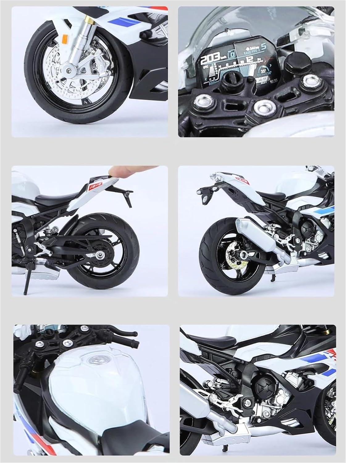 Modello di motocicletta per S1000RR S 1000 RR Il modello di motocicletta è un modello squisito realizzato in stretta conformità con la forma, la struttura, il colore, gli interni e altre proporzioni del veicolo originale. È un modello in miniatura del veicolo originale ed è progettato per riprodurre l'aspetto del veicolo originale. Modello di auto di simulazione Modelli di auto giocattolo in scala 1:12, DECORATIVO DA COLLEZIONE Il modello di motocicletta è un pezzo meraviglioso per la vetrina del collezionista e un must per ogni fan La finitura liscia e senza sbavature e la vernice lucida e uniforme dimostrano una maestria artigianale eccezionale. Questo modello incarna lo stile di una motocicletta, soddisfacendo l'amore degli appassionati per i modelli nostalgici.