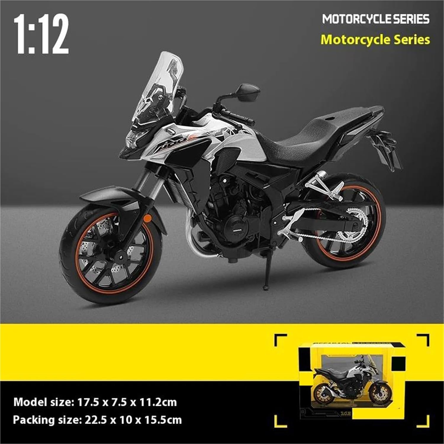 Modello di motocicletta in scala 1:12 per CB400X CB 400 X Il design intricato del modello di motocicletta mette in mostra la ricca storia e l'eleganza delle motociclette. Dalle ruote e dai manubri realistici ai tubi di scarico e al motore, ogni elemento è finemente realizzato per catturare l'essenza di un vero classico, rendendolo un regalo ideale per la festa del papà per i papà che amano le motociclette. MODELLO DI MOTOCICLETTA: il modello di motocicletta è un accessorio creativo da scrivania per l'ufficio e la casa. È anche un regalo per il fidanzato, il papà e l'amante delle motociclette. Realizzato in resistente lega di zinco, è resistente alle cadute e all'usura, garantendo la durevolezza del modello e la sua lunga conservazione. La finitura della vernice è uniformemente liscia, con colori vivaci e duraturi che resistono allo sbiadimento e alle scheggiature, garantendo un aspetto costantemente brillante.