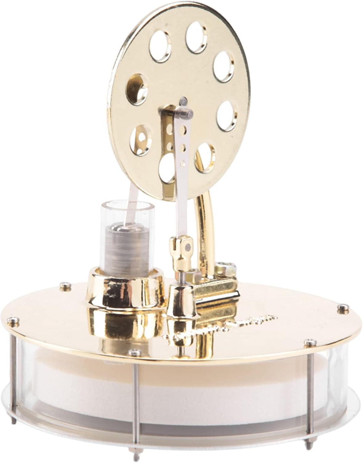 Ampia gamma di applicazioni: le persone lo acquistano per progetti scientifici per bambini, apprendimento di fisica/meccanica, presentazioni in classe e altro ancora. Più semplice: basta girare una tazza di acqua calda e sei a posto; basta mantenere una differenza di temperatura sufficiente. La base del motore Stirling è realizzata in acciaio inossidabile altamente lucidato, camicie dei cilindri in vetro, cuscinetti di precisione, alberi dei cuscinetti in acciaio e volani in lega di zinco. Tutte le parti sono trattate in superficie per prevenire la ruggine. Senza olio. Design elegante e pregevole fattura, questa è una bellissima opera d'arte.
