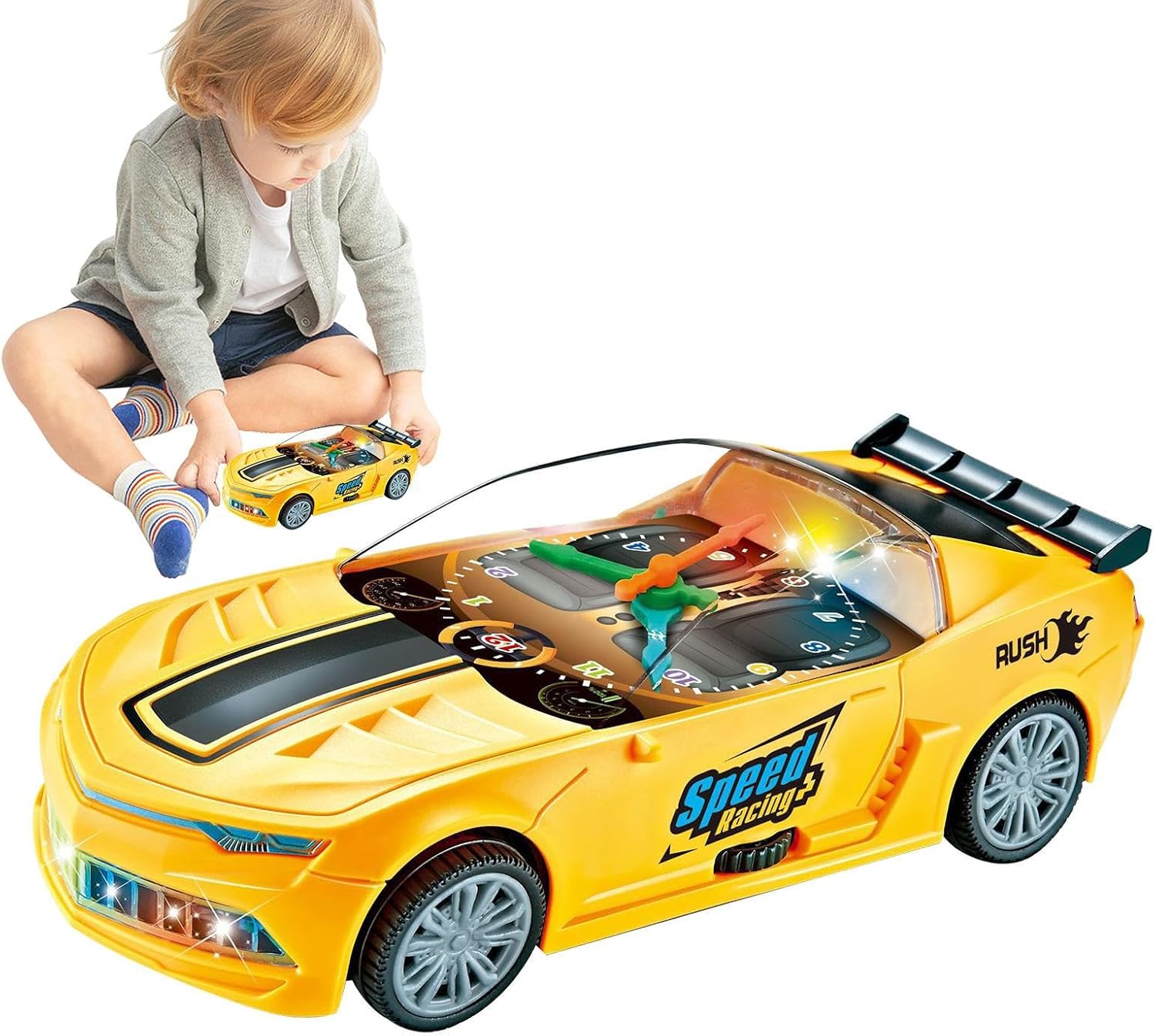 Istruzione attraverso l'intrattenimento: questo giocattolo per elettriche, con la sua funzione di orologio integrato, aumenta l'interattività e il significato educativo dei giocattoli, offrendo una funzione di orologio divertente che può insegnare ai bambini a conoscere il mentre gioca Delizia leggera e musicale: il giocattolo per elettriche con le sue luci colorate e piacevoli effetti musicali cattureranno sicuramente i bambini. Lasciali immergere in una festa audiovisiva della gioia e creare un'atmosfera di gioco giocosa incoraggiando l'immaginazione e la creatività Esperienza migliorata: lascia che i tuoi bambini prendano la loro immaginazione in marcia con questo giocattolo per elettriche. La funzione Electric Drive consente un controllo flessibile, garantendo un'avventura ed emozionante di gioco Sicurezza assicurata: esperienza di gioco senza preoccupazioni con il nostro giocattolo per elettriche, con bordi lisci e un design per la prima sicurezza unita a una struttura robusta. Realizzato con materiali sicuri e sani, garantisce la sicurezza di tuo figlio divertendosi Multi usi: vanta un design e un meccanismo distintivi, questo giocattolo per elettriche è ideale per i bambini affezionati a meccanici ed elettronica. per tutte le fasce d'età, offre un'esperienza di gioco coinvolgente e informativa