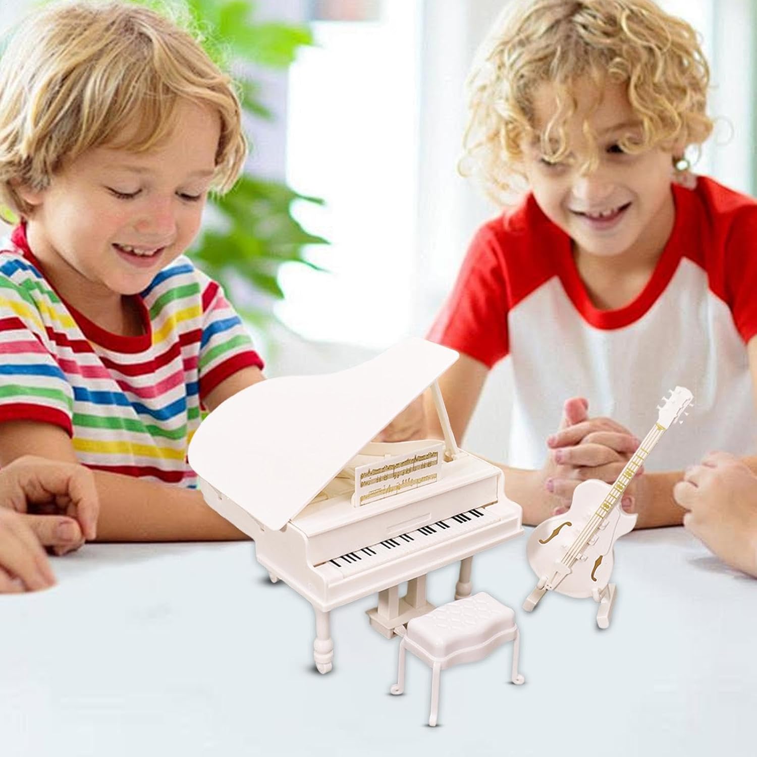 Prestazioni durevoli: il nostro modello di pianoforte è realizzato con materiali di prima qualità che lo rendono una scelta sicura e robusta per le stanze dei bambini o le aree giocattoli. Il suo materiale eccellente garantisce longevità e buone prestazioni, offrendo ai clienti una scelta ideale per il piacere della loro famiglia. Fai attenzione ai dettagli: questo modello di pianoforte, con dettagli squisiti e una buona incisione, riproduce autenticamente il talento artistico degli strumenti reali, aggiungendo realismo a qualsiasi scena in miniatura. Miglioramento delle prestazioni: Migliora il tuo spettacolo con il nostro piccolo modello di pianoforte e una gamma di accessori per strumenti musicali come chitarra e sgabello inclusi. Aggiungi colore alla tua scena e migliora il gameplay e la visibilità globale per un'esperienza indimenticabile Leggero e portatile: il design compatto ed elegante di questo modello di pianoforte consente una sistemazione facile in vari ambienti. Si adatta facilmente a camere, finestre e uffici per bambini senza occupare troppo spazio, ideale per piccoli spazi. Le sue dimensioni squisite rendono un'aggiunta affascinante al tuo arredamento Aumenta la creatività del tuo bambino: il modello di pianoforte dei nostri bambini è ideale per sviluppare creatività e immaginazione, con un design unico che incorpora tessuto di lino e motivi giocosi.