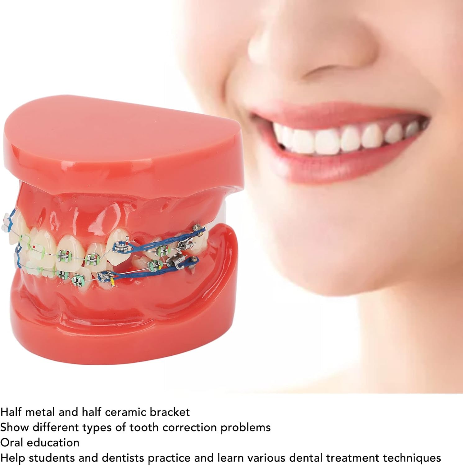 PRODOTTO INCLUSO: Il nostro modello dentale include un modello di dente in filo metallico con quattro denti, che mostra una combinazione di attacchi ortodontici in metallo e ceramica. Questo set completo consente un'esplorazione dettagliata delle tecniche. AMPIA APPLICAZIONE: gli usi del nostro modello dentale sono diversi. Dall'educazione dei bambini su come lavarsi correttamente i denti alla sensibilizzazione sulla cura delle gengive, questo modello funge da strumento versatile per vari scopi educativi e professionali. UTILITÀ: Pensato per un utilizzo pratico, questo modello fornisce preziosi consigli applicativi. Con 24 denti fissi fissati con viti, garantisce stabilità e durata e consente movimenti realistici per dimostrazioni didattiche ed esercizi di abilità. ECCELLENTE MODELLO DI INSEGNAMENTO: Il nostro modello è riconosciuto per la sua eccellente formazione dentale e viene utilizzato nelle cliniche odontoiatriche, negli istituti scolastici e nei laboratori di ricerca di tutto il mondo. Facilita l'apprendimento pratico e la pratica di varie tecniche di igiene orale. UTILIZZO VERSATILE: questo modello dentale non si limita a una singola funzione. Serve come strumento indispensabile per educare i bambini, praticare le procedure dentistiche e migliorare la comunicazione tra dentisti e pazienti. La sua versatilità lo rende importante