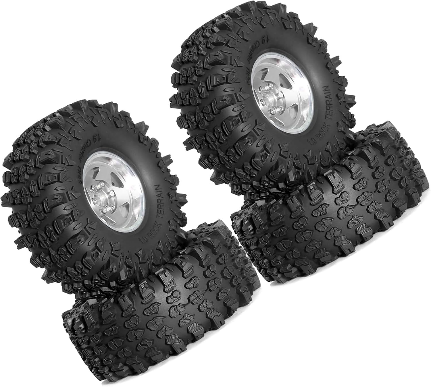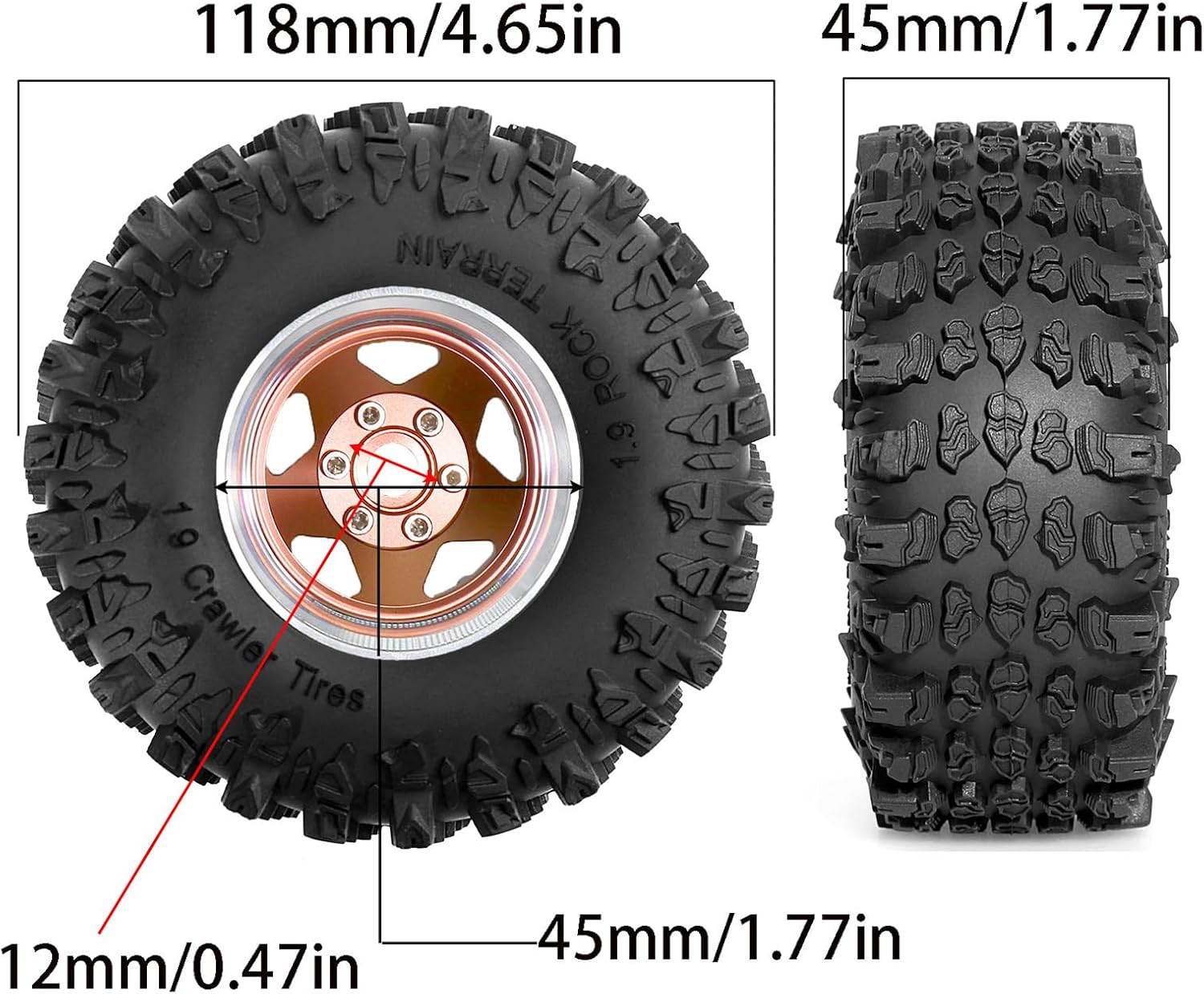 Indipendentemente da ciò, si sta navigando in percorsi al coperto o all'aperto all'aperto, questi pneumatici offrono un'ottima presa e manovrabilità per il gioco competitivo e avventure su strada. Funzione: Questi sono facilmente peso, stabilità e velocità aumentanti del veicolo Facile da installare: i pneumatici sono facili da installare. Aspetto: aspetto nuovo e squisita fattura. 4 pneumatici per ruote con scala 1/10 per auto modello SCX10.