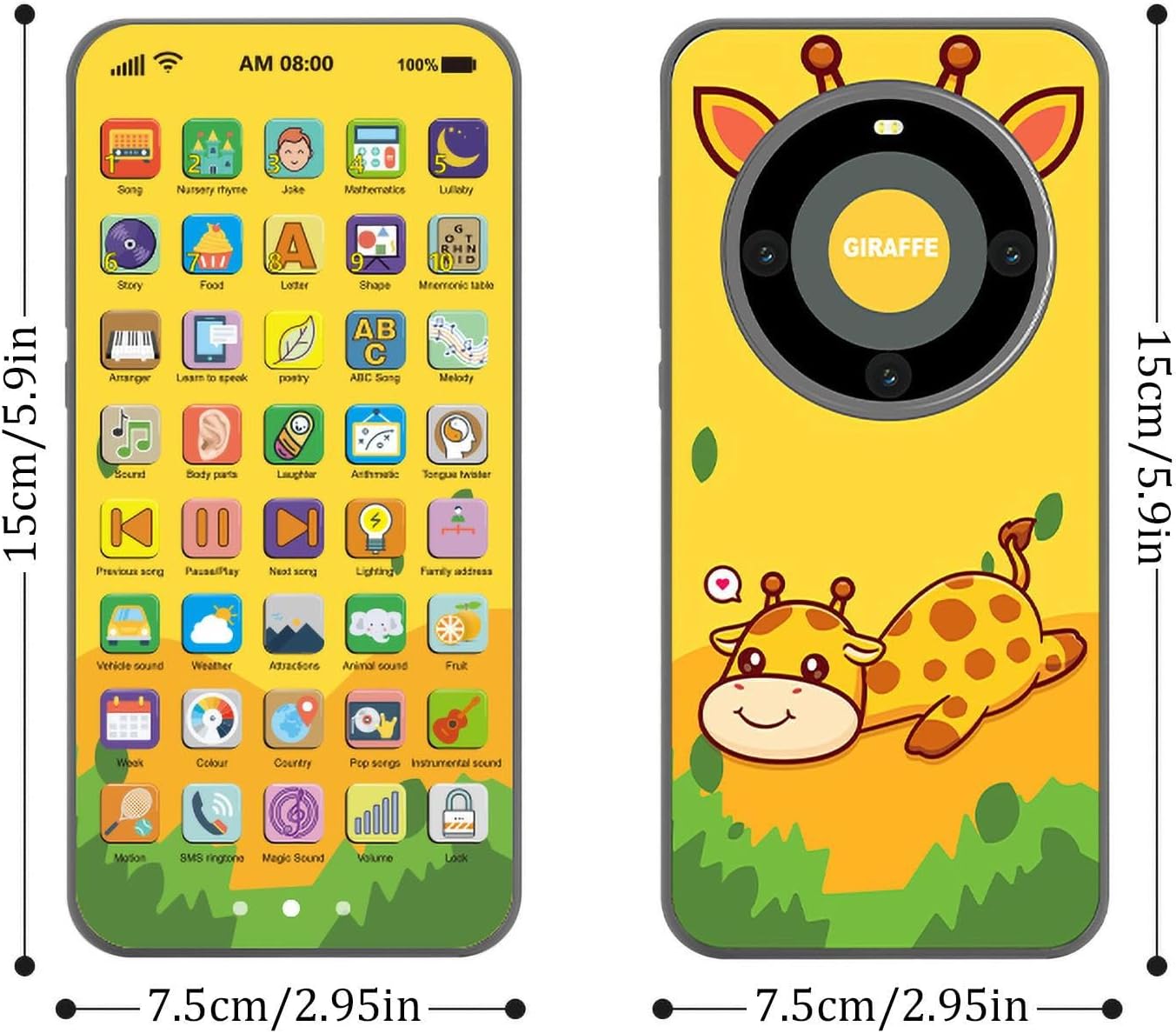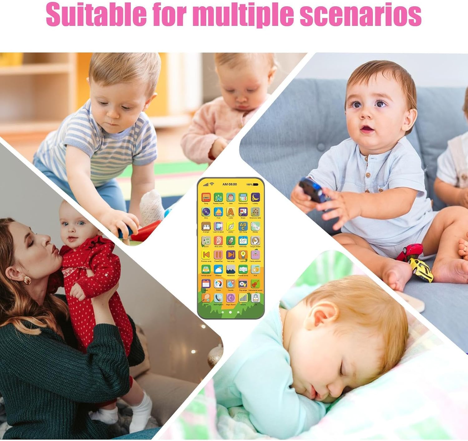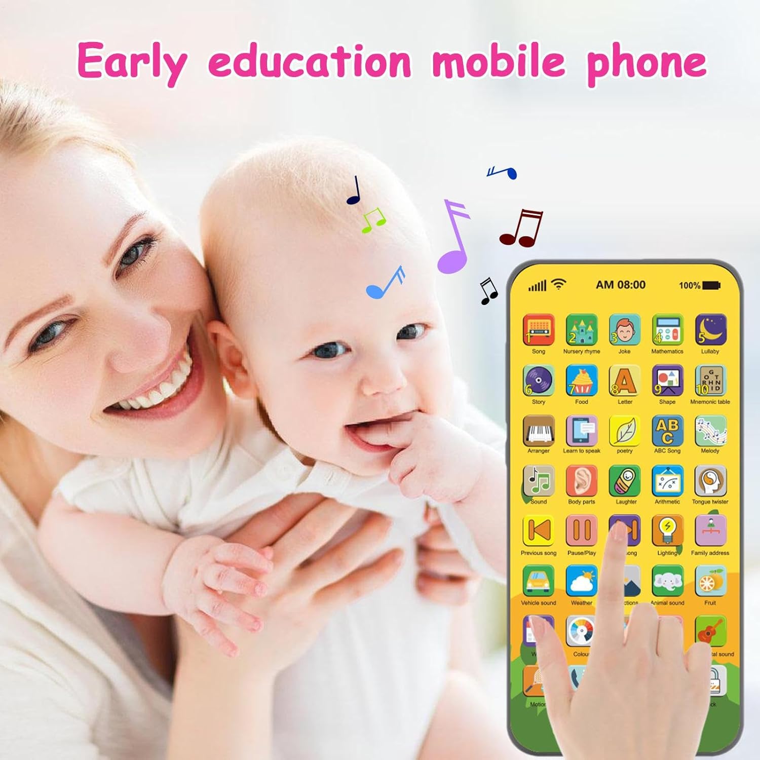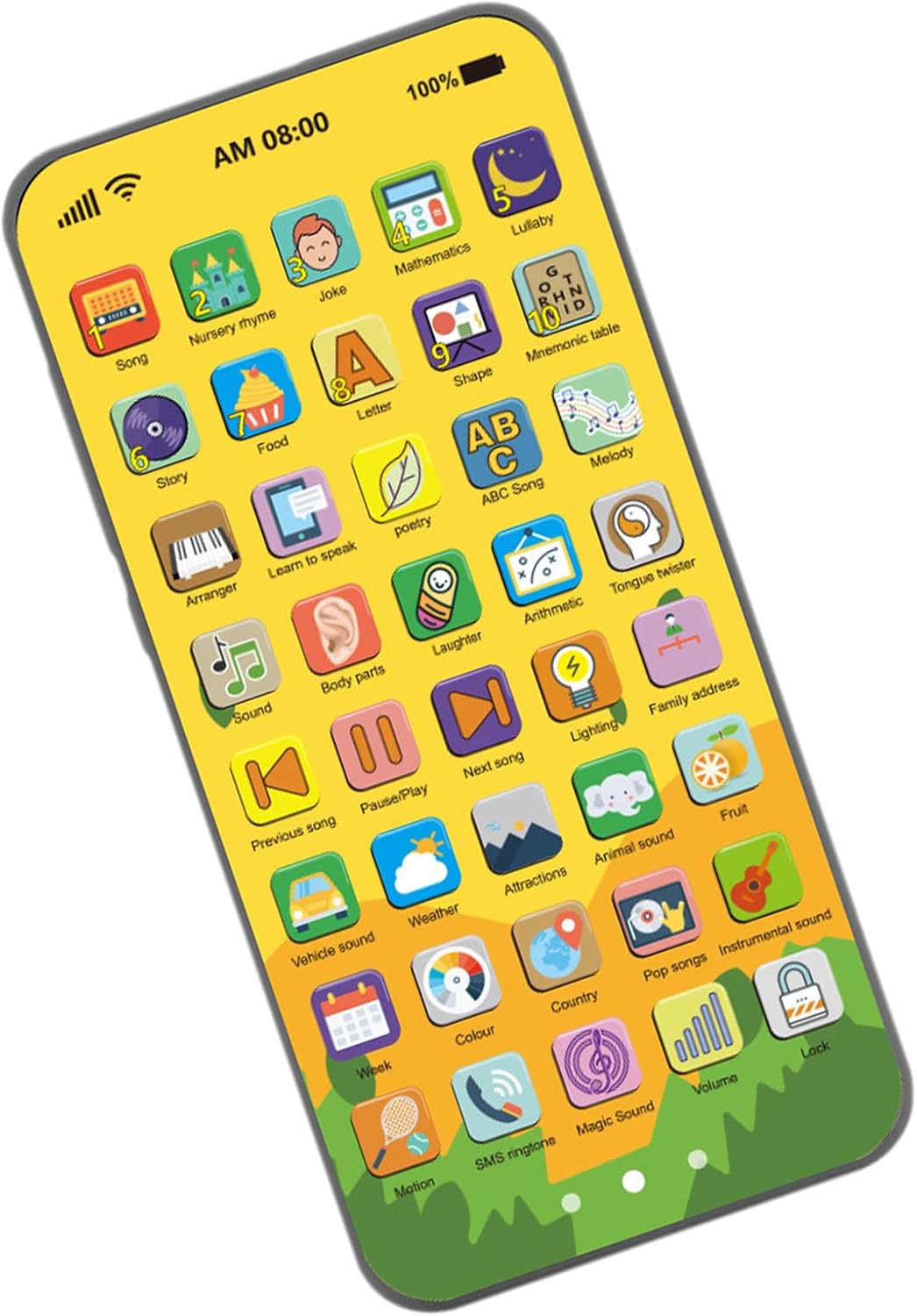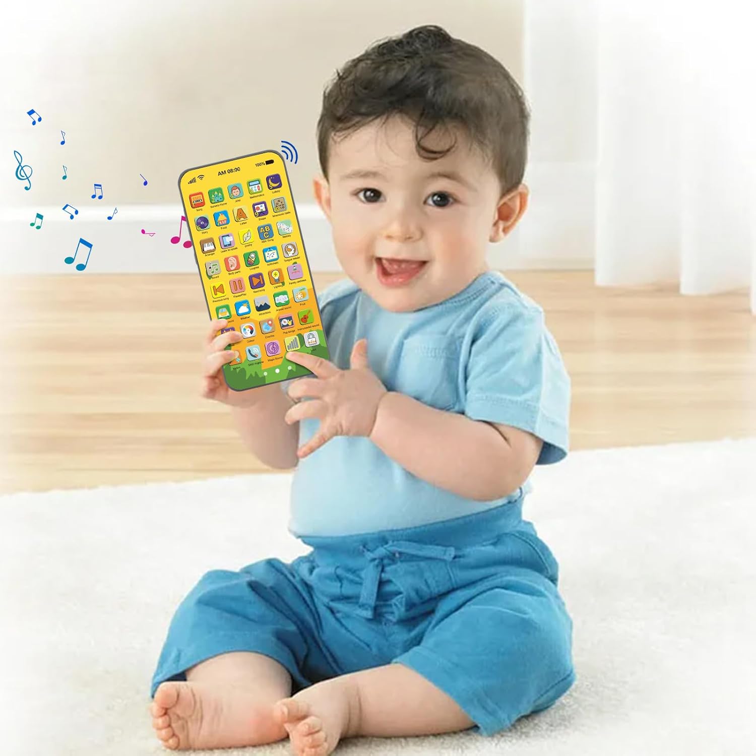 Divertimento Didattico: Copre argomenti come meteo, colori, animali, matematica e vita quotidiana (alimenti/indirizzi) con 40 tasti interattivi. Apprendimento dinamico per bambini attraverso il gioco. Sviluppo sociale: Stimola l'immaginazione con funzioni varie; migliora il linguaggio, sviluppa la cognizione e le interazioni sociali, coltivando preziose capacità di problem solving. Luci Accattivanti: Ispira la curiosità con luci LED morbide e colorate. Volume regolabile garantisce esperienza uditiva sicura e divertente, favorendo lo sviluppo sensoriale e cognitivo. Materiali ecologici: Realizzato con finitura opaca anti-impronte e bordi arrotondati, garantisce sicurezza per i bambini e utilizza materiali sostenibili atossici per un gioco responsabile. Design unico compatto: Il nostro telefono giocattolo educativo presenta un touch screen sottile che imita un vero telefono, ideale per coinvolgere le manine dei bambini in giochi interattivi.