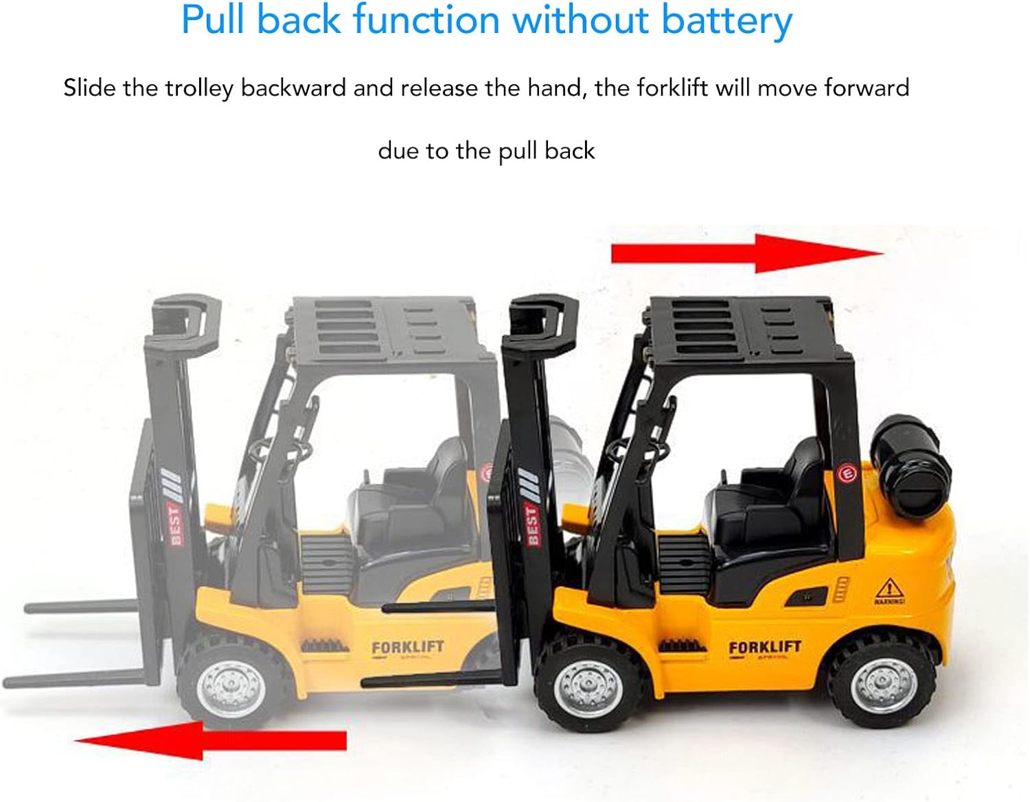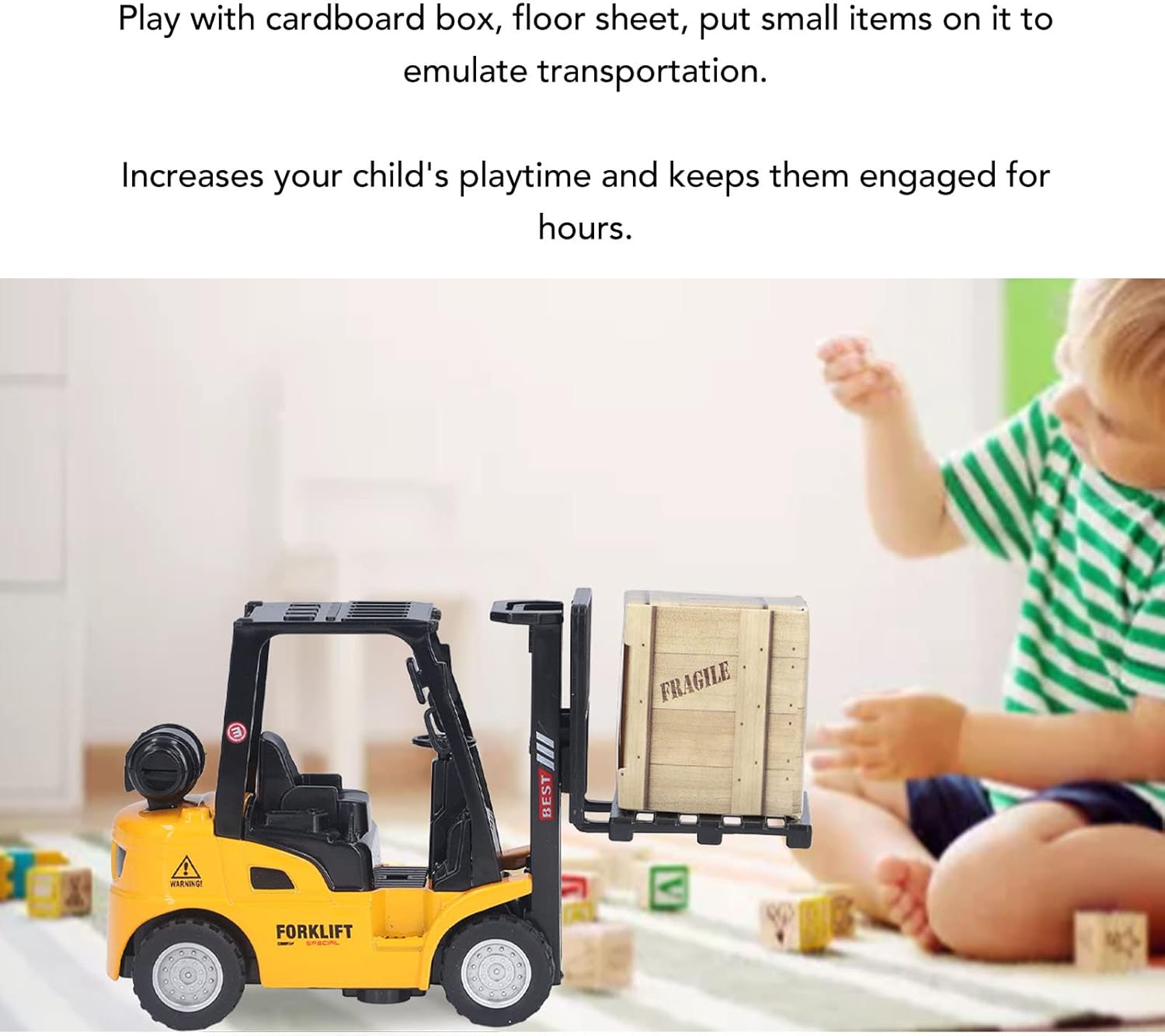 Design che attira l'attenzione: la forma vibrante e realistica di questo giocattolo del carrello elevatore cattura l'interesse dei bambini, rendendolo un'aggiunta ideale a qualsiasi sala giochi per stimolare la creatività. Funzionalità di sollevamento coinvolgente: il design sollevabile incoraggia i bambini a partecipare attivamente al loro gioco, migliorando il loro divertimento mentre sviluppano sottili abilità motorie attraverso attività di sollevamento interattive. Giochi sicuri e divertenti: questo giocattolo include una funzione di tiro che elimina la necessità di batterie, fornendo un'esperienza di gioco Sicurezza con bordi lisci che proteggono le mani piccole durante il gioco. Simulazione del trasporto creativo: i bambini possono usare il carrello elevatore per trasportare vari oggetti, promuovendo scenari fantasiosi che li aiutano a conoscere il movimento e la logistica in modo giocoso. Durabilità di lunga durata: costruita con materiali in lega e plastica di buona qualità, questo giocattolo del carrello elevatore è progettato per la resilienza, asSicurezzando che rimane una parte amata della collezione di giocattoli del tuo bambino nel tempo.