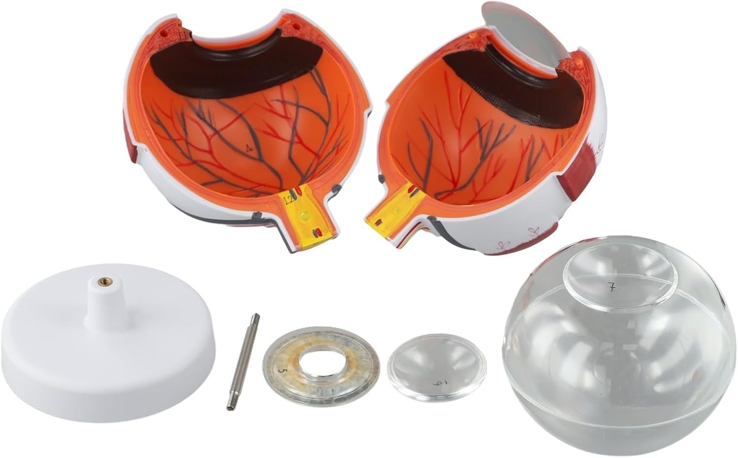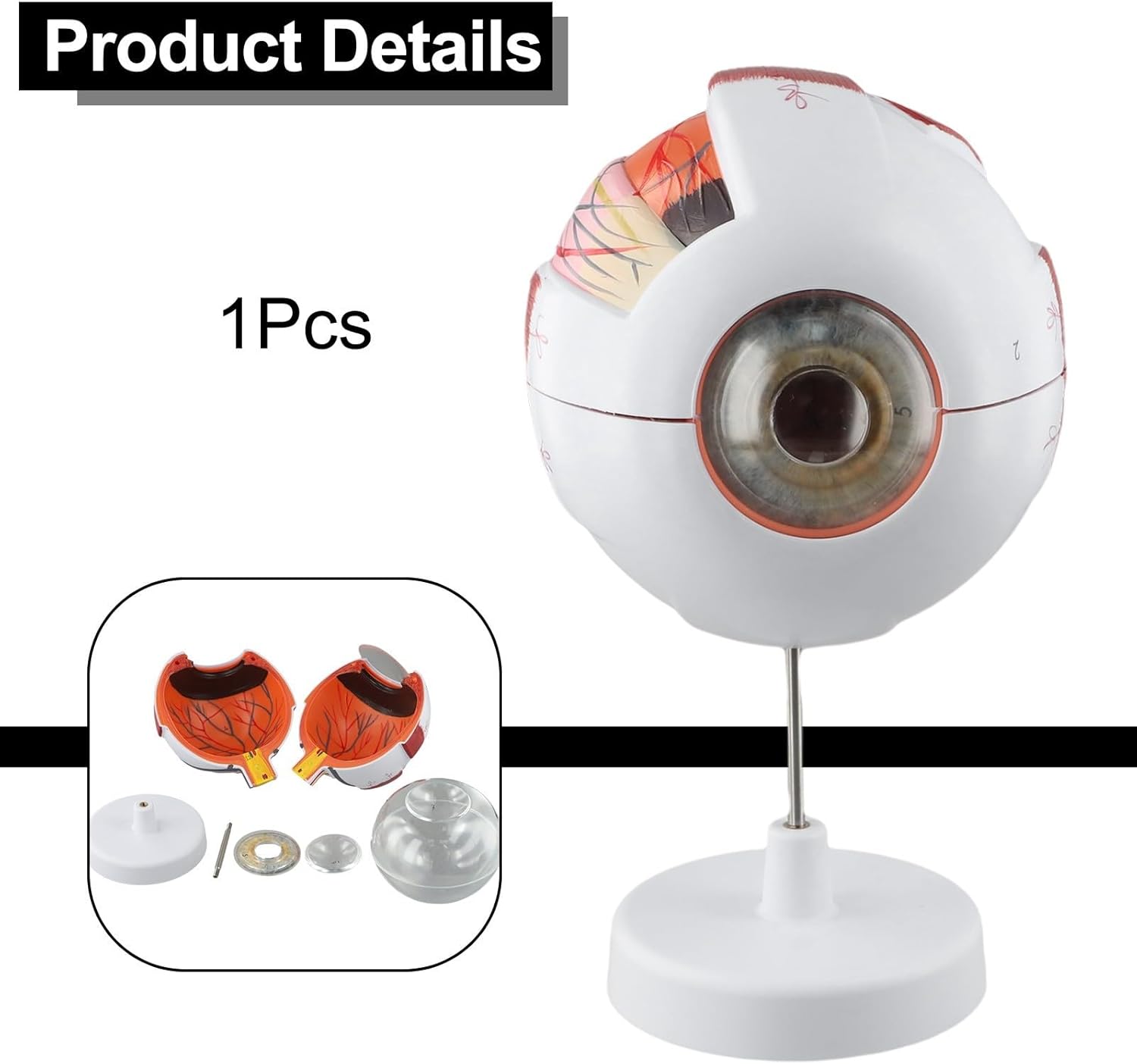 [MODELLO ANATOMICO REALISTICO] Questo modello di bulbo oculare umano offre una rappresentazione vivida e dettagliata dell'anatomia oculare, rendendolo uno strumento essenziale per l'educazione nei corsi di igiene e fisiologia. [PARTI STACCABILI PER L'APPRENDIMENTO INTERATTIVO] Il modello 3x presenta 6 parti staccabili, mentre il modello 6x include 8 parti, migliorando le esperienze di apprendimento pratico per studenti ed educatori. [Per impostazioni educative] Perfetto per l'insegnamento dell'oftalmologia, questo modello aiuta nella comunicazione medico-paziente e fornisce preziose informazioni sulla struttura degli occhi. Struttura in PVC: realizzato in PVC, questo modello è progettato per resistere all'uso regolare in aule o cliniche, longevità e affidabilità. [Promemoria sulle dimensioni] Si prega di controllare le vostre esigenze di taglia; il modello 6x ha un diametro di 15 cm, mentre il modello 3 misura 10 cm.