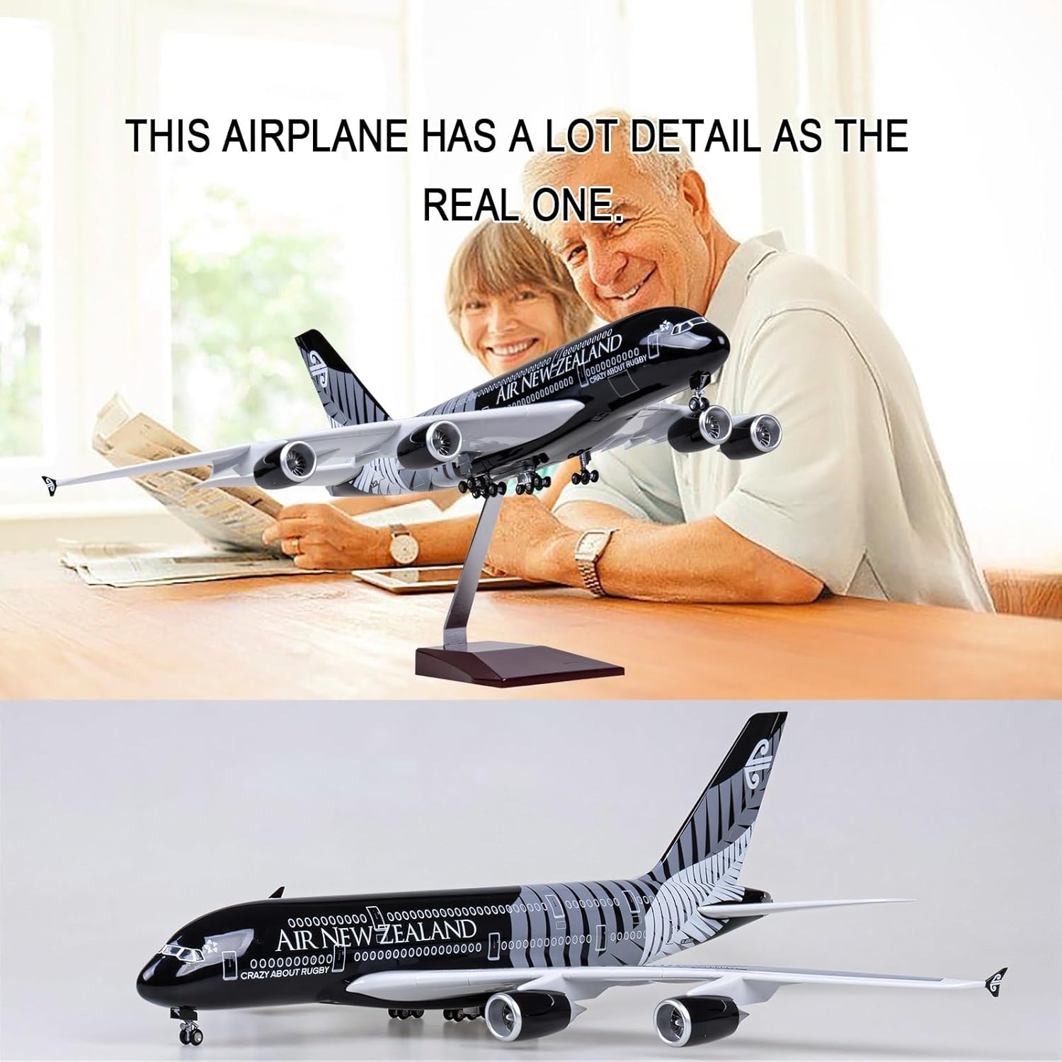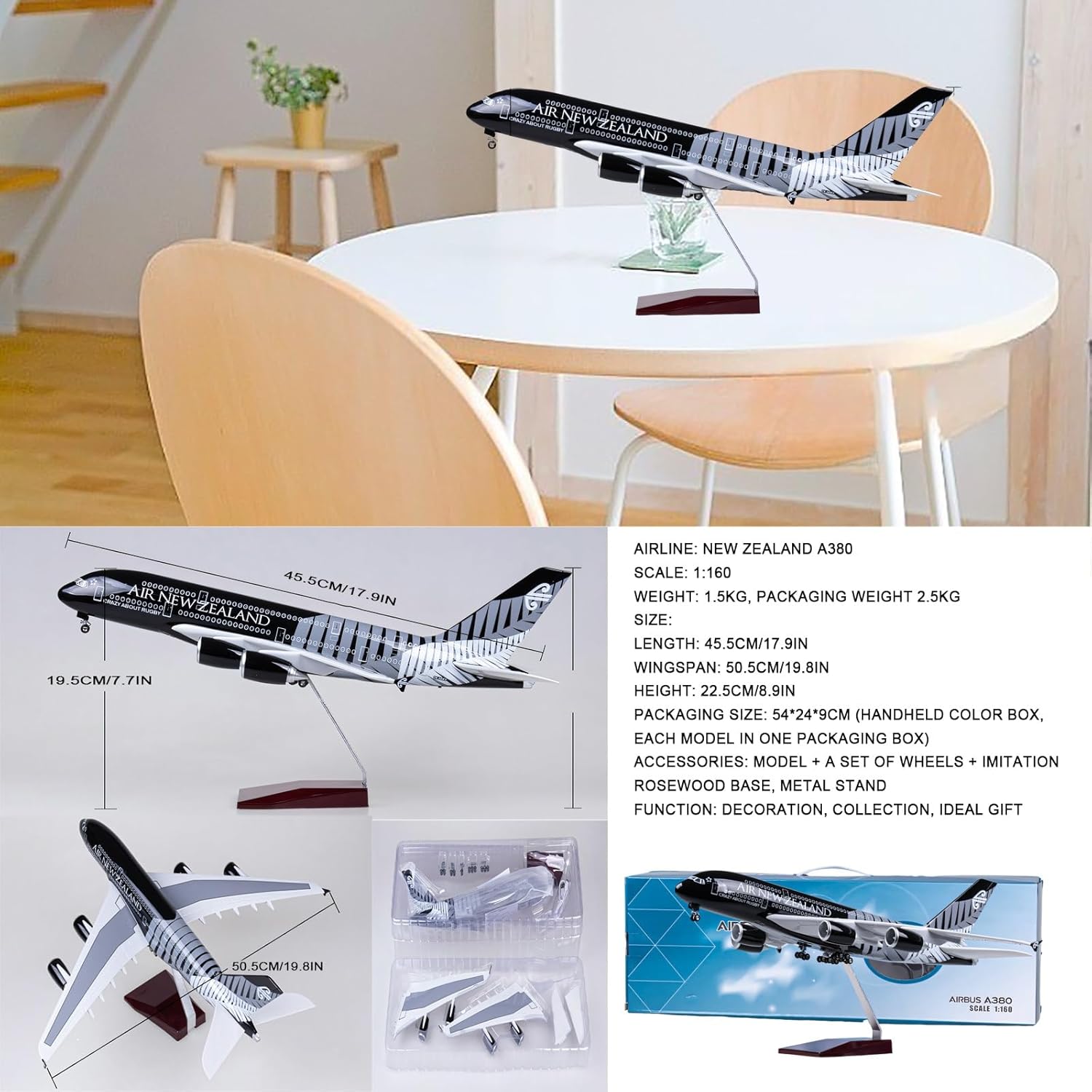 【Realismo artigianale di alta qualità】: Realizzato con precisione con resina pressofusa for superfici lisce e delicate, colori vivaci della vernice spray e precisione in scala 1/160, riproducendo ogni curva, dalle ali del motore ai dettagli della cabina di pilotaggio. 【Caratteristiche interattive dinamiche】: luci attivate tramite controllo touch/audio + carrello di atterraggio scorrevole retrattile e carrello di atterraggio rimovibile su ruote for una personalizzazione pratica del display. 【Design durevole e didattico】: Rivestimento antiossidante antigraffio, finiture anti-scolorimento e supporto espositivo di qualità museale for una conservazione a lungo termine; ideale for aule di sopravvivenza o arredamento for uffici. 【Dettagli complessi del motore】 : Aspetto del motore ad alta simulazione con pale cave, area di rivestimento realistica e numero esatto di pale che rispecchia il vero prototipo dell'A380 della compagnia aerea. 【Scala realistica】: replica esatta in scala 1:160 (lunghezza 45,5 cm) con linee dei pannelli incise al laser, dettagli della cabina di pilotaggio in lega fusa e marcature dipinte a mano for un impatto visivo senza pari.