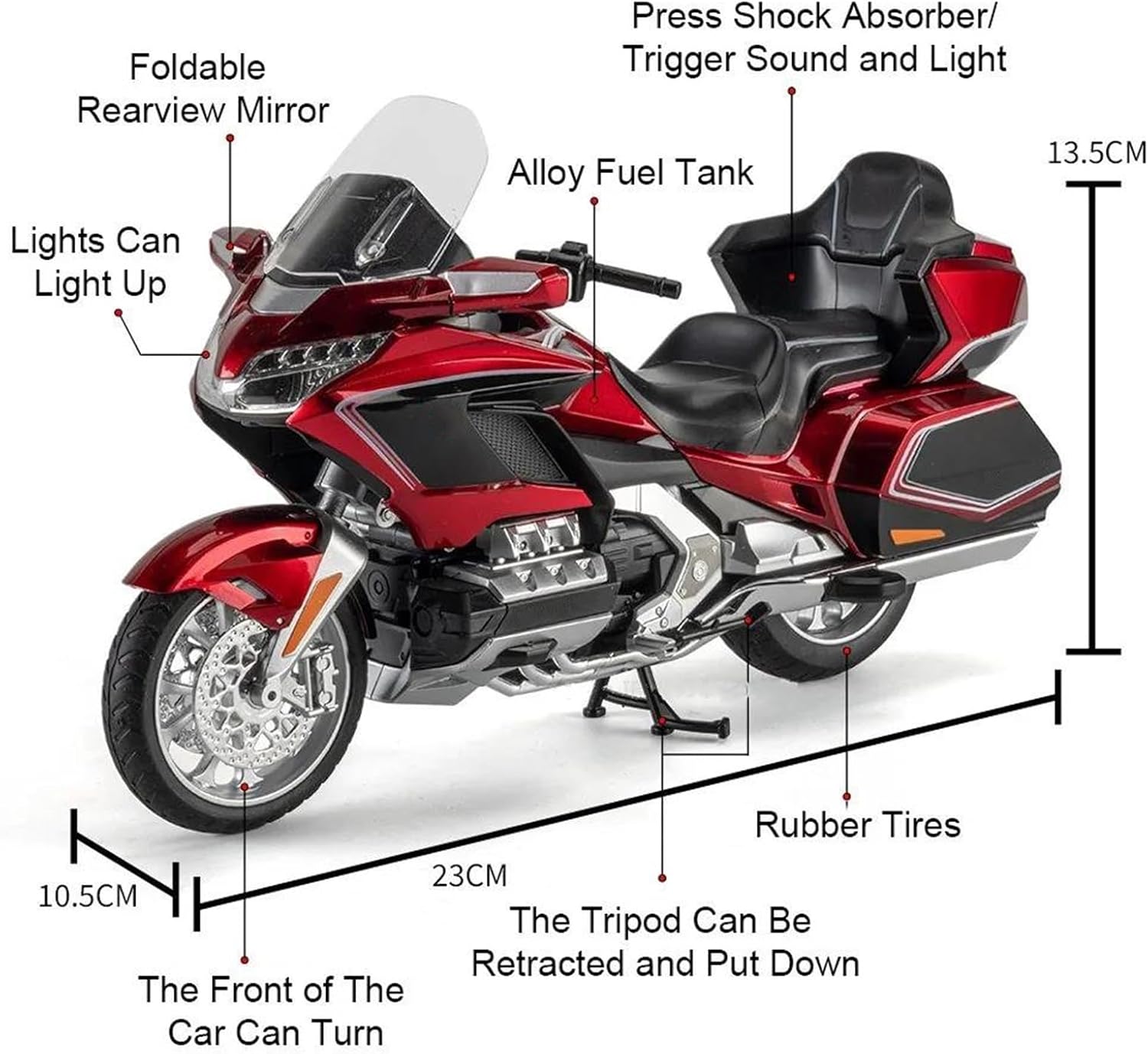 Questo è il tuo modello di moto preferito. Modellino Di Motocicletta In Scala 1:11, Pressofuso, Portatile, Da Corsa, Da Dito, Da Collezione, Simulazione, Per Honda Gold Wing GL800 2021 Decorazione ed estetica: il modello di motocicletta è realizzato in metallo. Grazie alla sua squisita fattura, alle linee morbide e alla forma simulata, diventa un elemento decorativo di spicco per la casa, l'ufficio o il negozio, dimostrando l'amore del proprietario per la cultura motociclistica o il suo gusto personale. Strumento di divulgazione scientifica: il modello di motocicletta può mostrare in modo intuitivo la struttura principale della motocicletta (ad esempio: motore, telaio, sospensioni, cambio, ecc.), aiutando i giovani o gli appassionati di meccanica a comprenderne i principi meccanici. Se hai domande, puoi inviarci un'e-mail in qualsiasi momento!