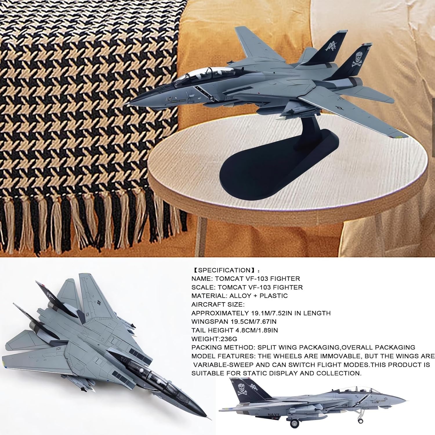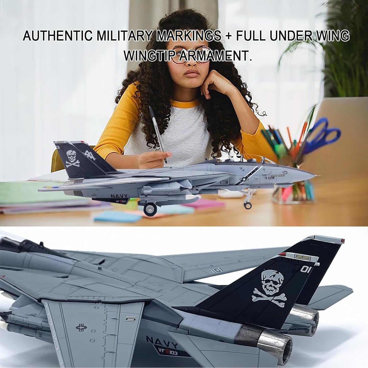 【Sicurezza dei materiali di alta qualità】: Realizzato in lega di zinco resistente (costruzione solida, non cava) e plastica ABS atossica, che garantisce durata, zero odori e resistenza alla ruggine o alla deformazione. La verniciatura elettrostatica multistrato (di qualità automobilistica) con stampa tampografica ad alta precisione cattura il VF-103 for colori vividi e resistenti ai graffi. 【Design autentico delle ali a freccia variabile】 – Le ali regolabili replicano l'iconica meccanica delle ali a freccia dell'F-14B, consentendo di passare dalla modalità di volo subsonica a quella supersonica for opzioni di visualizzazione dinamiche. 【Carrello di atterraggio fisso con ruote non rotanti】 – Presenta un carrello di atterraggio completamente in metallo e pneumatici in gomma realistici (posizione fissa, non rotanti) for un'esposizione statica stabile, garantendo un'autenticità degna di un museo. 【Display multi-modalità con accessori】 Include supporto staccabile e parti intercambiabili for mostrare il modello (ali aperte, ingranaggio retratto, O-ring estesi, ingranaggio dispiegato). 【Artigianato ultra-dettagliato】 - Le linee dei pannelli incise con precisione, le pale delle turbine negli ugelli dei motori argentati e gli equipaggiamenti subalari rispecchiano l'aspetto originale del velivolo pronto al combattimento. Ideale for collezionisti militari, regali commemorativi for veterani, mostre di educazione aeronautica o decorazioni for ufficio; include un espositore in acrilico for un'elegante presentazione.