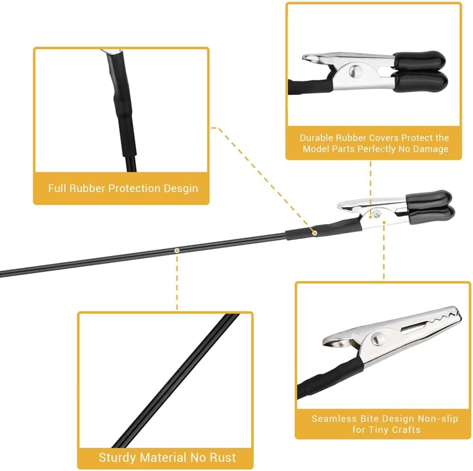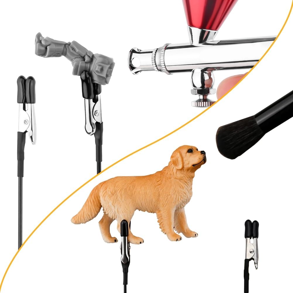 La base del supporto per pittura con rotazione a 360 gradi ti consente di osservare il tuo artigianale DIY con aerografo da tutte le direzioni e angolazioni. I morsetti a coccodrillo per la pittura di modelli sono dotati di punte in gomma, che impediscono di danneggiare gli oggetti da fissare. Il nostro supporto per modelli da dipingere è realizzato in plastica, ma è molto , il che garantisce che non si ribalti anche se esposto al flusso d'aria 'aerografo. Il morsetto è fissato saldamente alla barra di e avvolto strettamente per una connessione sicura, assicurando che non cada.