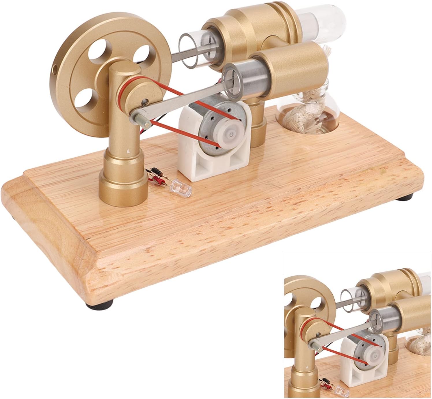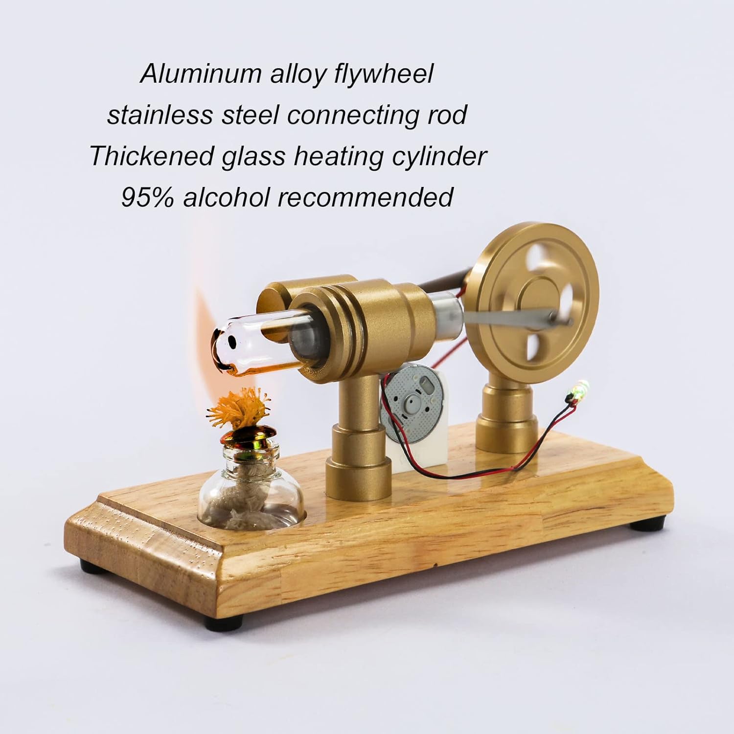 [LED a più colori]: il modello del motore Stirling genera elettricità attraverso il calore alcolico di alto grado per alimentare l'illuminazione a LED multicolore, rendendolo un giocattolo educativo visivamente accattivante per i bambini. [Costruzione in lega di alluminio]: realizzato in lega di alluminio spazzolato, il motore Stirling vanta un telaio a guscio di sabbia terminato CNC e un volano in lega di alluminio, garantendo la durata e la stabilità. [Materiali affidabili]: con bielle di collegamento in acciaio inossidabile e un cilindro di riscaldamento in vetro ispessito, questo modello di motore a tracolla è progettato per le prestazioni di riscaldamento a lungo termine e l'affidabilità. [Facile da usare]: usa semplicemente l'alcol al 95%, accendi la luce sul cilindro per 60-120 secondi, quindi spuntino delicatamente la ruota per avviare il motore, rendendolo un giocattolo educativo intuitivo. [Applicazione versatile]: ideale come regali del progetto scientifico per bambini, aiuti nell'insegnamento di fisica e meccanica e ottimo come sostegno alla dimostrazione degli insegnanti, offrendo valore educativo per vari pubblico.