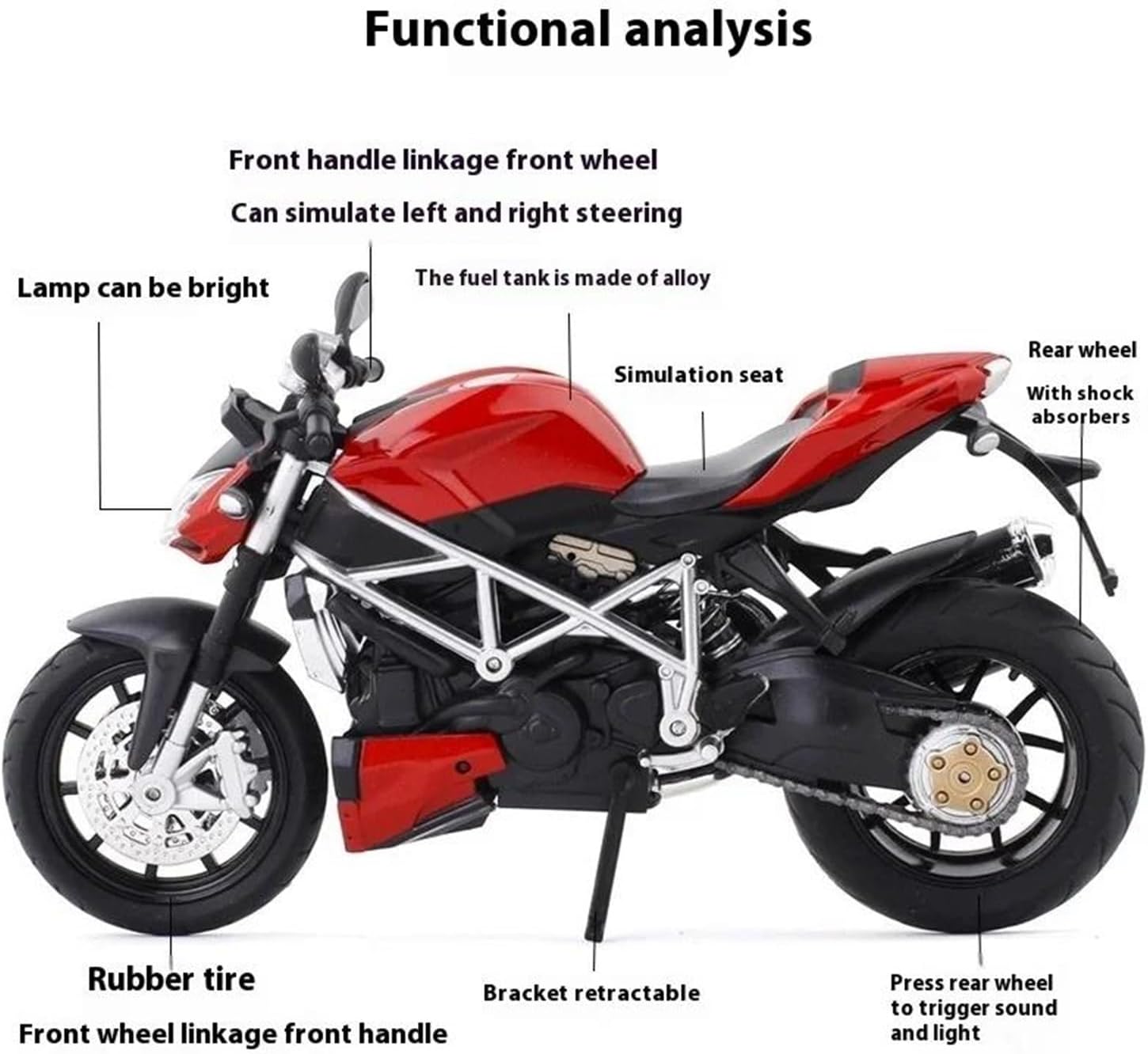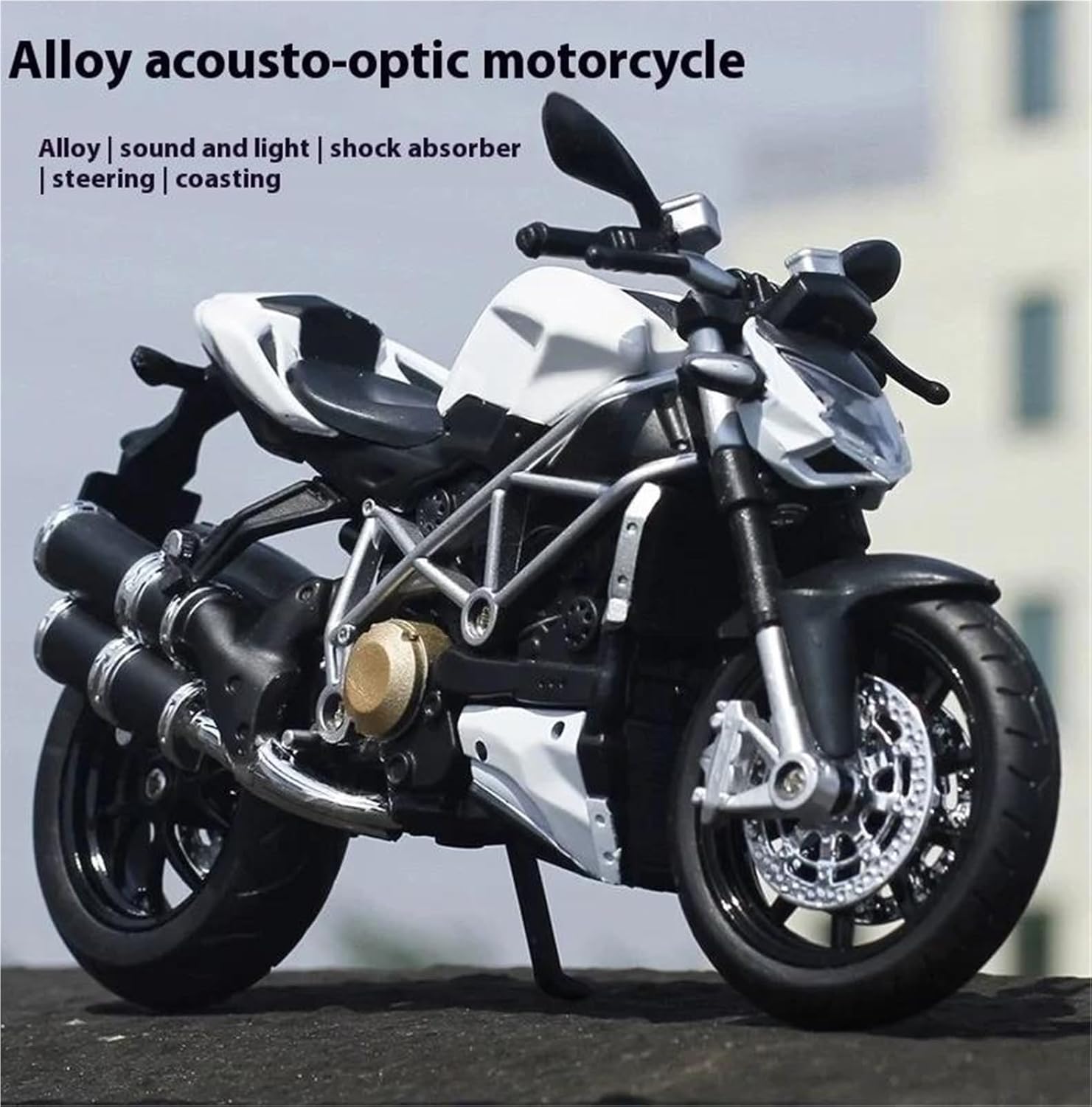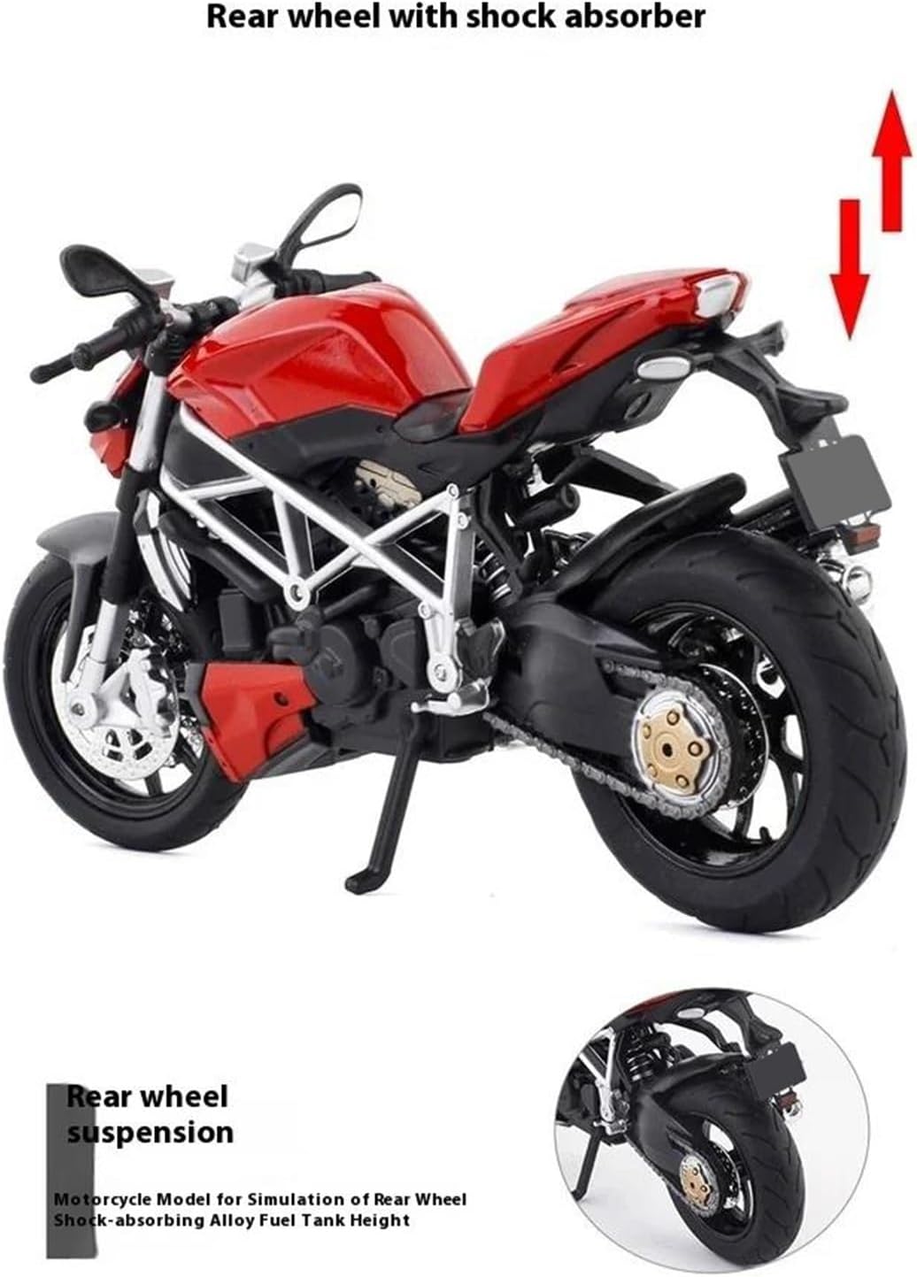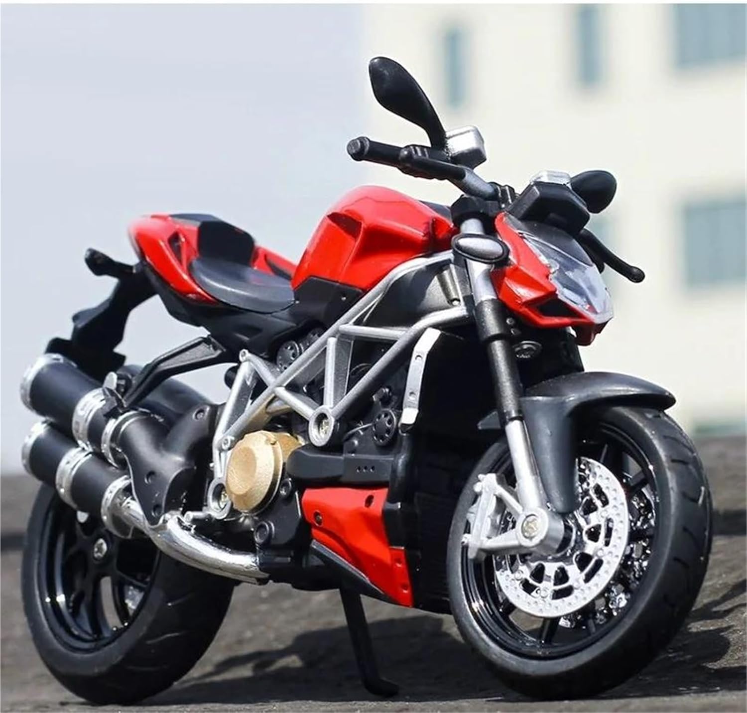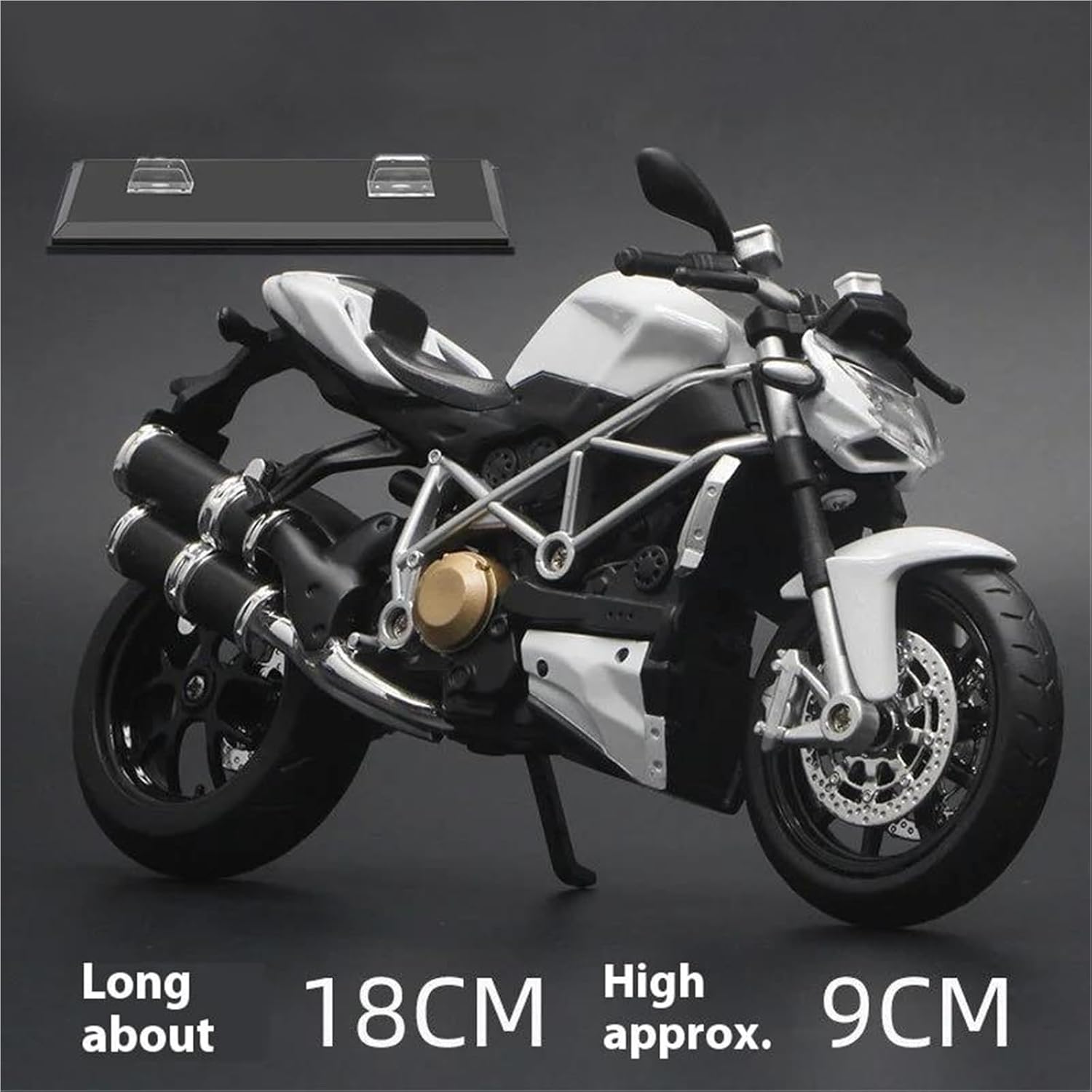 Modello di motocicletta per Streetfighter S Parti squisite progettate secondo le proporzioni originali dell'auto, il cruscotto, i pedali del freno e dell'acceleratore sono progettati per essere realistici e precisi. Modello di auto di simulazione Modello di auto giocattolo per moto in scala 1:12, collezionabile imperdibile per gli appassionati di motociclette grazie alla sua superba fattura e all'aspetto realistico. La finitura liscia e senza sbavature e la vernice lucida e uniforme dimostrano una maestria artigianale eccezionale. Questo modello incarna lo stile di una motocicletta, soddisfacendo l'amore degli appassionati per i modelli nostalgici.