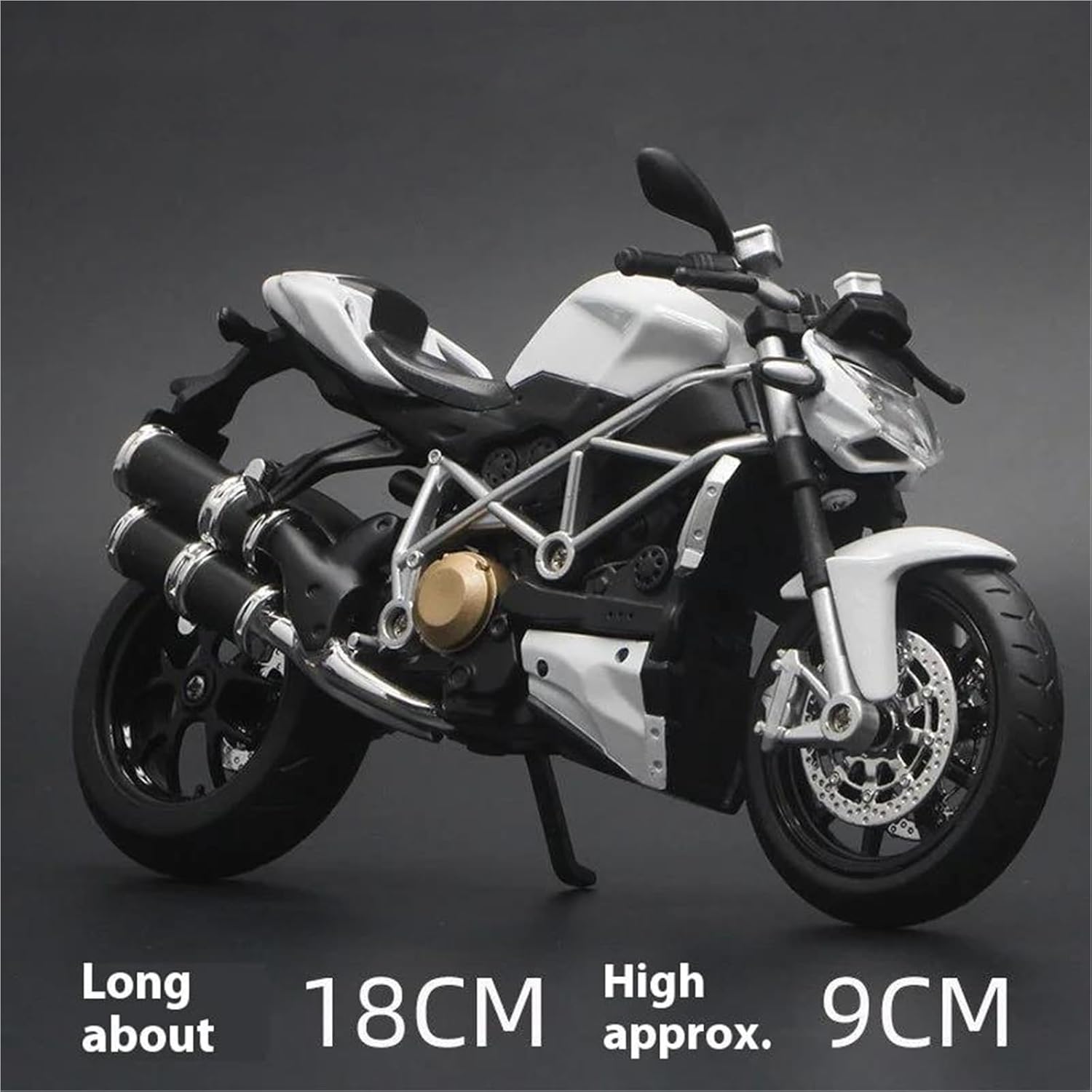 Modello di motocicletta per Streetfighter S Parti squisite progettate secondo le proporzioni originali dell'auto, il cruscotto, i pedali del freno e dell'acceleratore sono progettati per essere realistici e precisi. Modello di auto di simulazione Modello di auto giocattolo per moto in scala 1:12, collezionabile imperdibile per gli appassionati di motociclette grazie alla sua superba fattura e all'aspetto realistico. Realizzato in resistente lega di zinco, è resistente alle cadute e all'usura, garantendo la durevolezza del modello e la sua lunga conservazione. La finitura della vernice è uniformemente liscia, con colori vivaci e duraturi che resistono allo sbiadimento e alle scheggiature, garantendo un aspetto costantemente brillante.