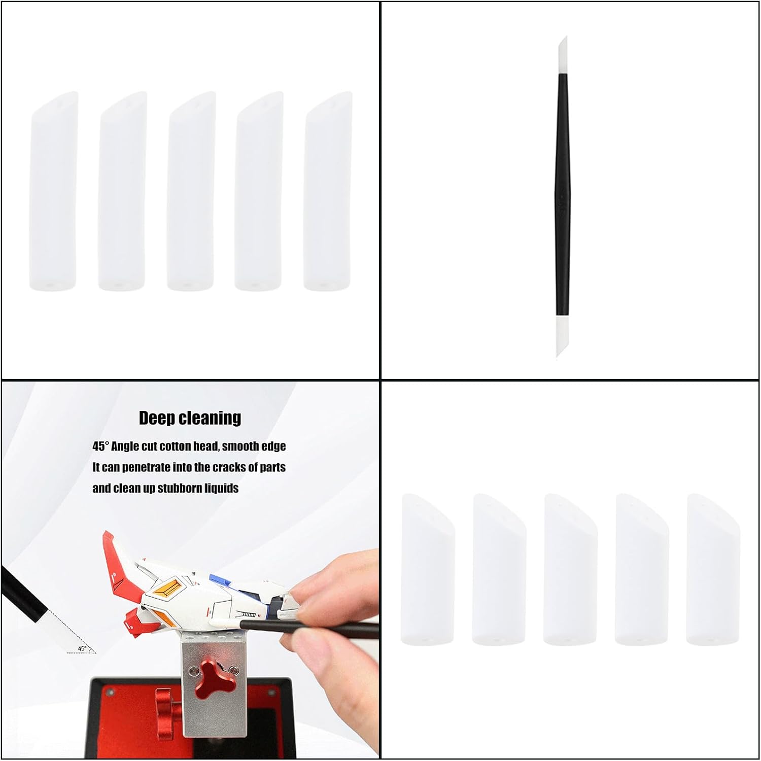 Vi presentiamo il nostro strumento professionale, prodotto specificamente per gli appassionati di modellismo per rimuovere efficacemente i lavaggi e le macchie durante il processo di verniciatura. Caratterizzato da una punta in cotone ad alta assorbenza che garantisce senza spargimento di pelucchi mentre assorbe accuratamente i liquidi, questo strumento garantisce efficienza e comodità senza danneggiare le superfici del modello. Ideale per hobbisti di modelli, artisti di pittura, creatori di artigianato e artisti che richiedono dettagli e presentazione meticolosi nel loro lavoro. Per l'uso durante l'assemblaggio e la verniciatura del modello per garantire una finitura, creare effetti naturali di agenti atmosferici o perfezionare i dettagli in progetti artistici e dimostrazioni didattiche. Con il suo design sottile dell'asta, questo strumento versatile raggiunge aree complesse senza sforzo, rendendolo un'aggiunta essenziale a qualsiasi kit di strumenti per la creazione di modelli.