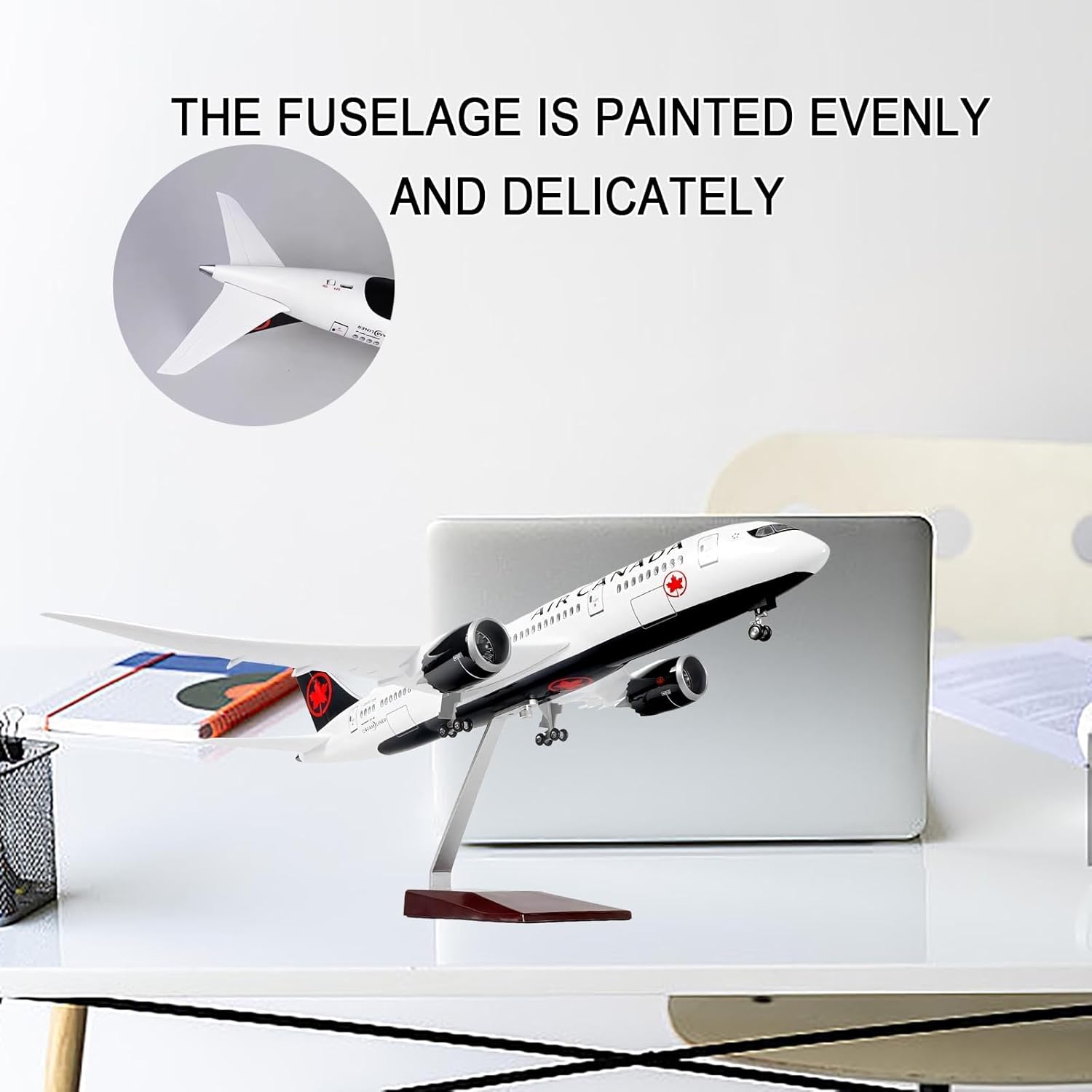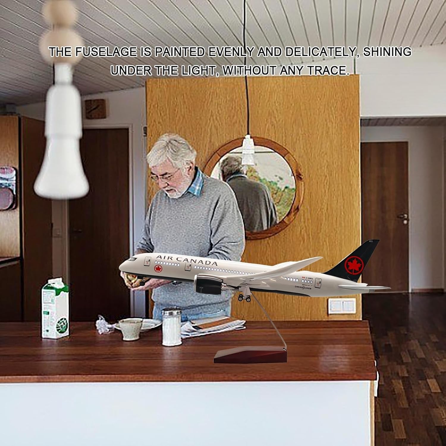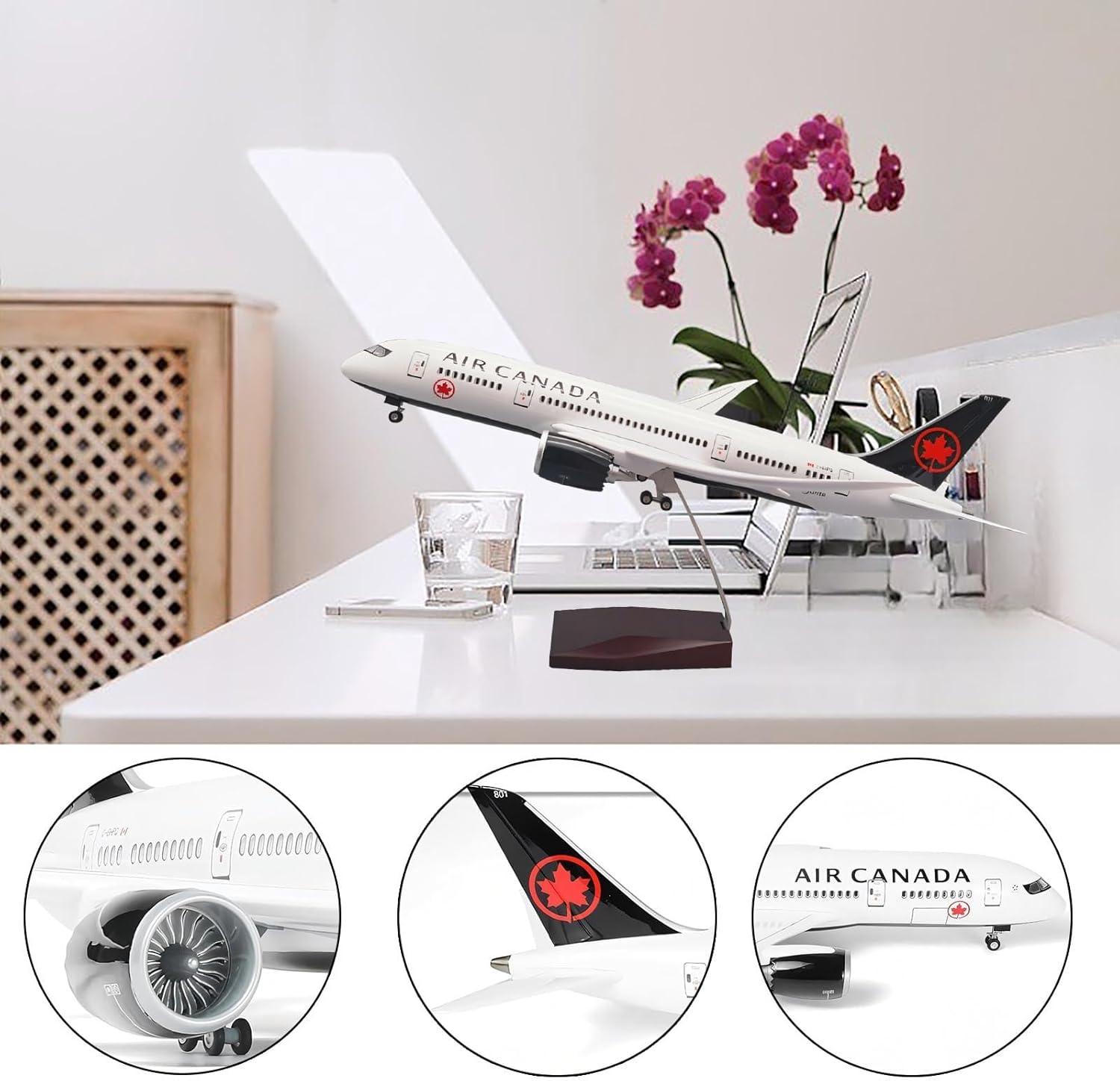 【Artigianato e realismo di alta qualità】: questo modello B787 in scala 1:130 presenta un design di nuova generazione stampato in 3D con CNC, finestrini della cabina di pilotaggio tagliati al laser, turbine del motore cave (pale ruotabili manualmente) e dettagli dei pannelli ultra precisi for un'autenticità di livello museale. 【Illuminazione ad attivazione vocale】: batti le mani o tocca for attivare le luci integrate nella cabina (tramite sensore sonoro): un elemento centrale affascinante for le stanze buie. Ali, coda e motori si illuminano con una vernice ecologica resistente e resistente allo sbiadimento, for una conservazione vivida dei colori. 【Gioco e visualizzazione interattivi】: il carrello di atterraggio rimovibile e le ruote scorrevoli consentono di passare dalla modalità volo a quella terra. Abbinalo all'elegante base in finto legno (supportata da lega) for un allestimento professionale su scrivania o scaffale. 【Materiali di qualità professionale】: corpo in resina ad alta densità con rivestimento opaco antigraffio e ali rinforzate in ABS for garantire la massima durata. La tecnologia di spruzzatura antipolvere elimina la granulosità, ottenendo una finitura impeccabile e pronta for la galleria. 【Arte aeronautica realistica】: la vernice di qualità aerospaziale riproduce l'iconica livrea di Canada Airlines, con dettagli in argento metallizzato e decalcomanie nitide. Le gondole motore, lo scarico APU e le cerniere delle porte rispecchiano i veri progetti del 787.