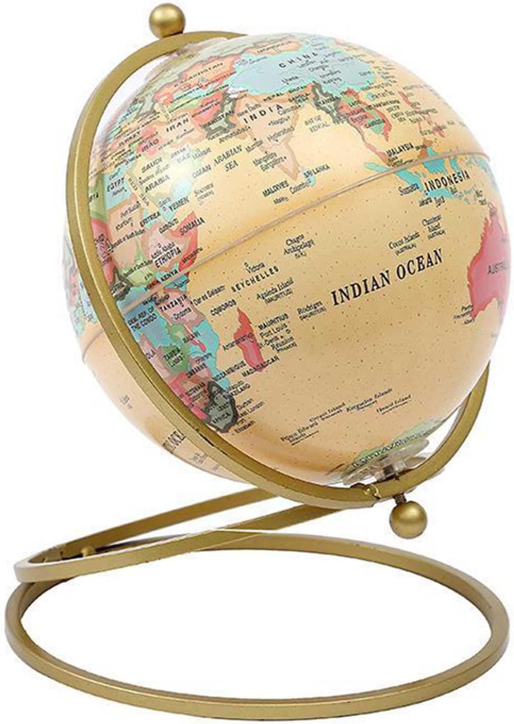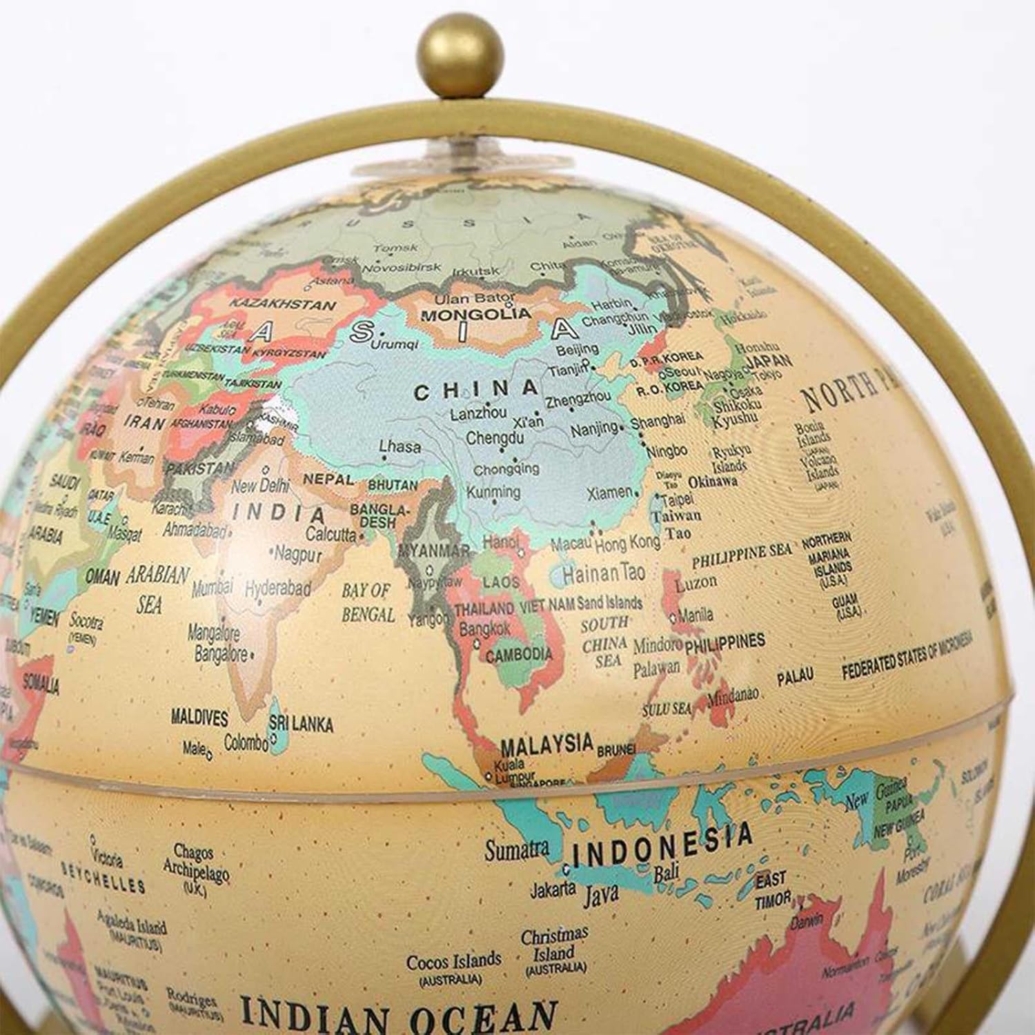 Mappa giallo scuro con lettere inglesi, nostalgia retrò. Educazione scientifica, o studio, che è pratico e bello. La mappa è ben stampata e il testo è chiaro e funziona bene. Globe può essere ruotato intorno, può anche capovolgere su e giù, facile da leggere e navigare. Ottimo per i bambini, adulti di tutte le età, hanno un buon significato educativo.