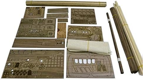 Scala: 1/65 Dimensioni della nave: 800 mm × 280 mm × 700 mm (31 pollici) Tutti i legni sono tagliati al laser per la massima precisione. Doppie assi. I raccordi sono realizzati in metallo fuso, ottone, ottone fotoinciso e legni duri. Sono presenti riempitivi di prua e di poppa in modo da poter avere una forma corretta dello scafo. I cannoni sono disponibili in diverse dimensioni. Questo kit ha anche carrelli per cannoni dove necessario e coperchi per le porte dei cannoni. Ci sono vele di stoffa, cinque diametri di cordame, buoni progetti, manuale inglese, istruzioni illustrate e supporto espositivo. Inoltre il kit viene fornito con un sistema di illuminazione posteriore