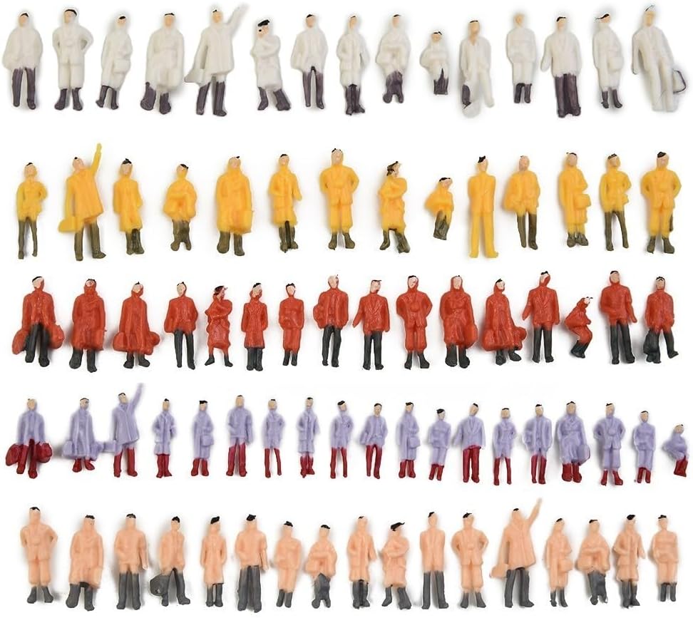 Materiale di alta qualità: queste figure dipinte sono realizzate con materiali di alta qualità, la loro sicurezza, compatibilità ambientale e durata. Colorazione realistica: vengono applicate tecniche di colorazione manuale, risultando in colori realistici in grado di soddisfare le esigenze delle aziende di modelli e degli appassionati di modelli dilettanti. Miglioramento della scena vivace: perfette per migliorare l'autenticità delle scene del tuo modellino, queste figure aggiungono un tocco vibrante alle piattaforme della stazione e alle scene di strada. Grande collezione: con 300 pezzi inclusi, questo set è una grande aggiunta alla tua collezione di accessori per modellini di treno. Decorazione versatile: non solo adatte per modellini di treni, queste figure servono anche come eccellenti decorazioni per case, scrivanie, soggiorni, cucine, ecc. Possono anche essere regalati ad amici e compagni di classe.
