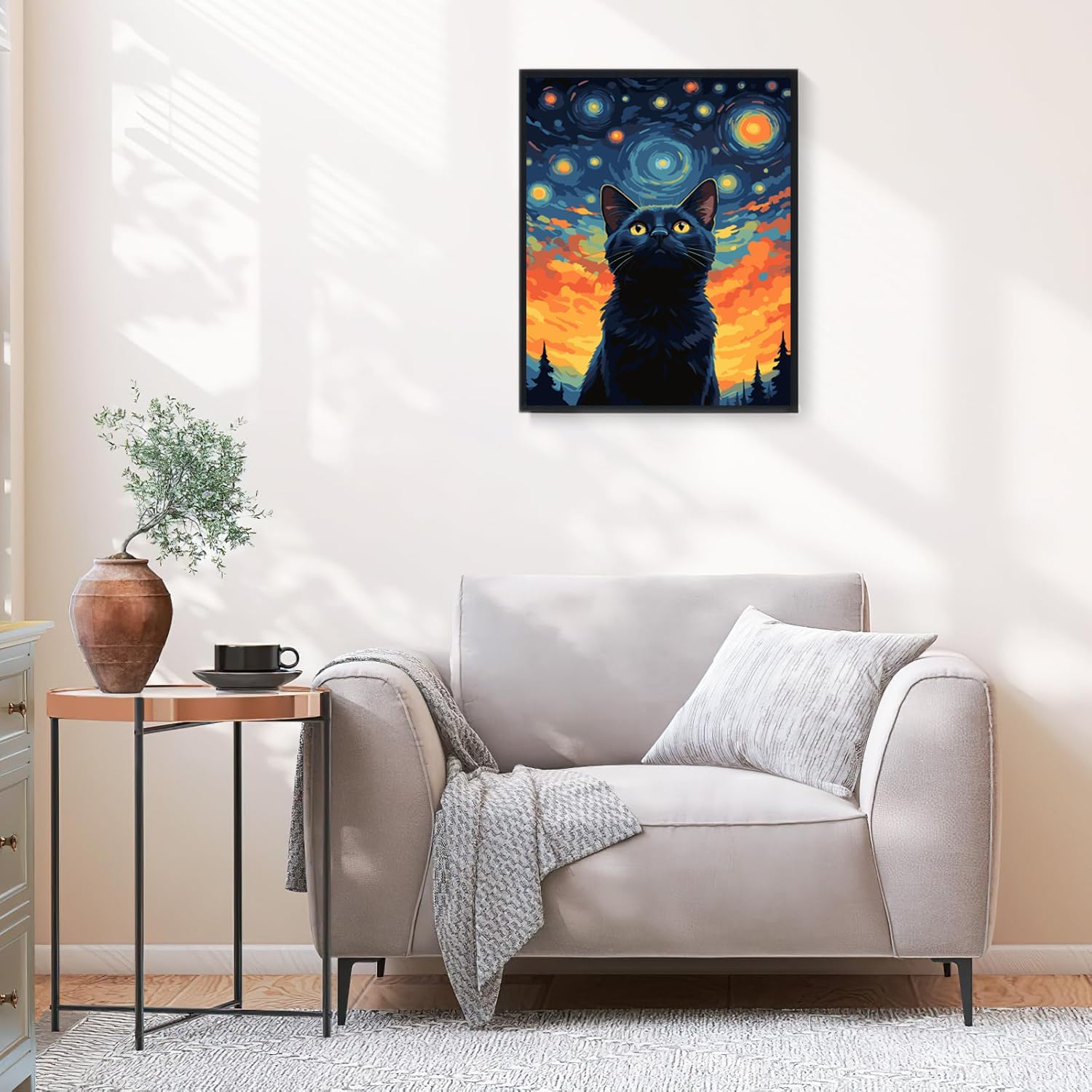 Modojuny Dipingere con i Numeri per Adulti e Bambini, Paint by Numbers Kit con pigmento acrilico e pennelli, regalo e decorazione da parete, 30 x 40 cm, gatto nero (senza cornice), 9+ anni