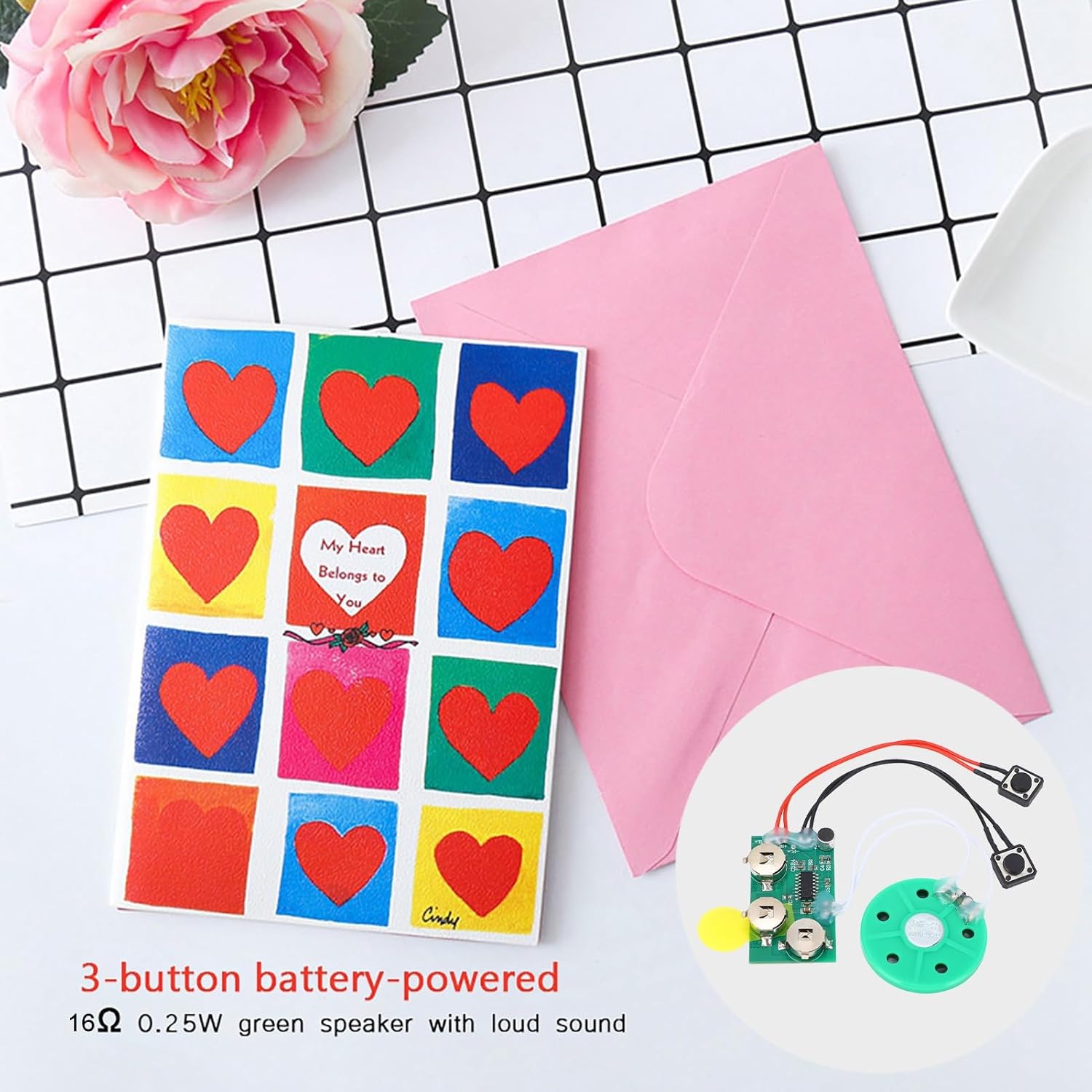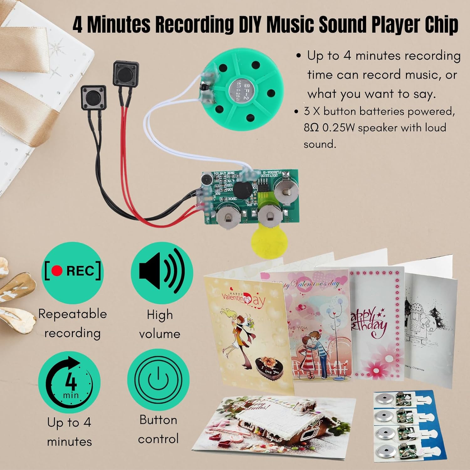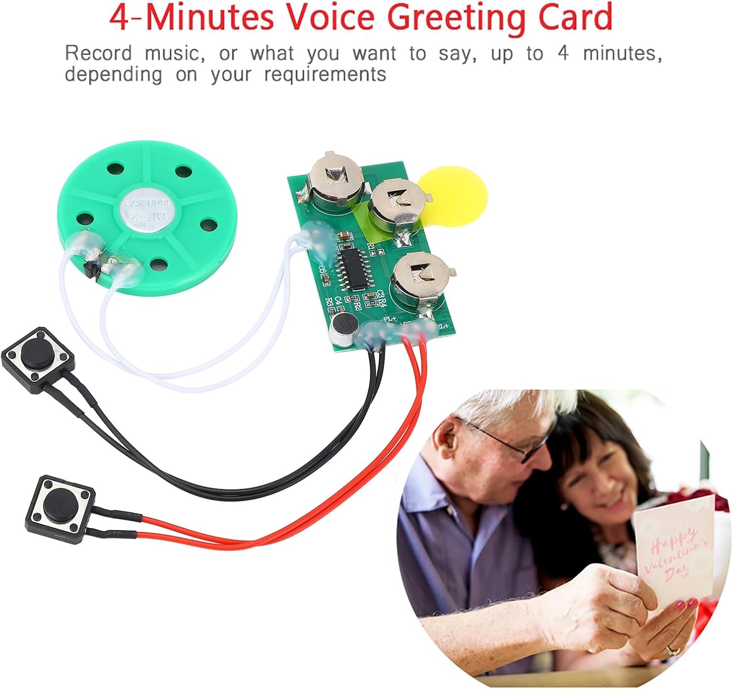 Registrazione ripetibile: il modulo audio può essere ripetuto, ogni registrazione sovrascriverà l'ultima registrazione, flessibile per soddisfare le esigenze di diversi festival e occasioni Suono forte: il modulo musicale fai-da-te per scheda vocale è alimentato da una batteria a 3 pulsanti, altoparlante verde da 16Ω 0,25 W, suono forte, può far risparmiare circa 240 secondi / 4 minuti di registrazione Facile da usare: questo modulo audio registrabile di 4 minuti può essere attivato con un semplice pulsante per registrare e riprodurre le registrazioni, facile da usare e adatto a secoli Funzione: il modulo di registrazione vocale del lettore controlla l'azione vocale con un sensore a pulsante, il cavo del pulsante è lungo circa 10 cm, facile da usare. Usi estesi: il modulo del chip audio può essere utilizzato per realizzare biglietti di auguri fai-da-te, portagioielli, oggetti di artigianato, giocattoli per bambini e altro ancora