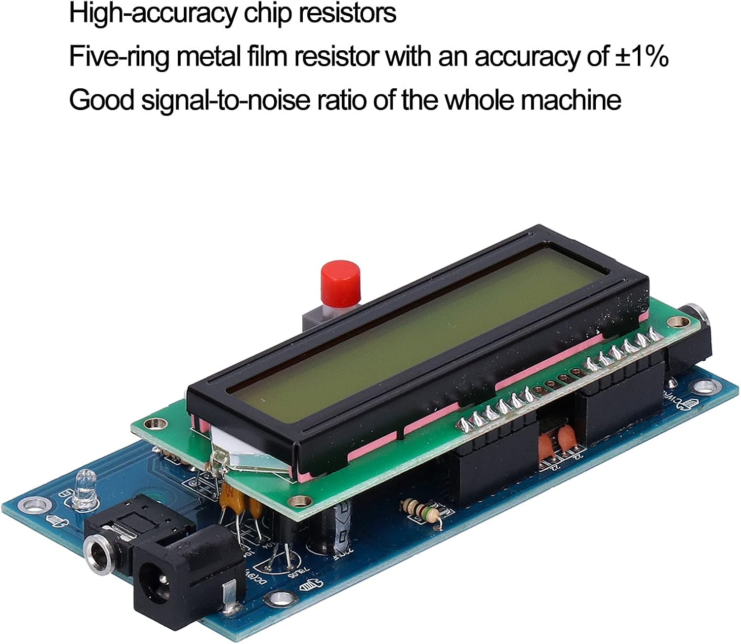 Traduzione del codice Morse efficiente e precisa: con questo modulo decodificatore ad alta precisione, puoi decodificare facilmente l'audio del codice Morse. Adatto per comunicazioni CW o progetti di hobby. Display a LED chiaro: lo schermo a LED integrato visualizza i valori decodificati in modo chiaro e preciso, garantendo una leggibilità rapida e semplice sia per i principianti che per gli esperti. Componenti di alta qualità: sono dotati di resistori robusti e lavorati con precisione e di un circuito di resistori a film metallico per una chiarezza e una riduzione del rumore superiori, garantendo le migliori prestazioni. Design ad alta efficienza energetica: funziona in un ampio intervallo di tensione (CC 7-12 V) con un'efficienza fino al 90%, consentendo tempi di utilizzo prolungati con un consumo energetico minimo. Lavorazione robusta e di alta qualità: realizzato in materiale PCB a doppia faccia di alta qualità, questo modulo è progettato per un uso a lungo termine e presenta un'eccellente dissipazione del calore e prestazioni elettriche sicure.