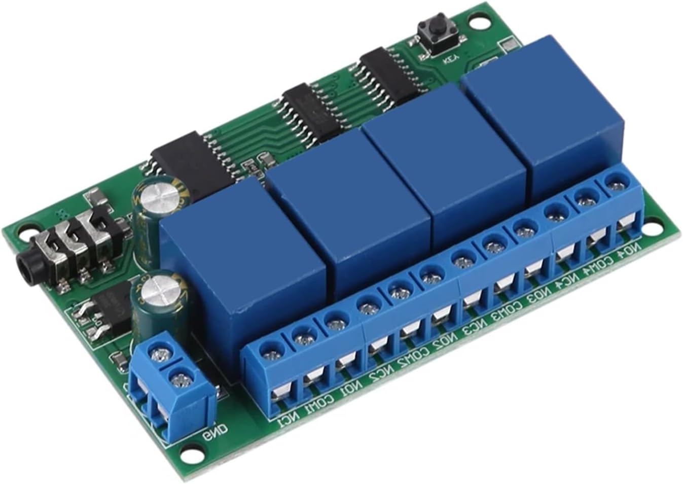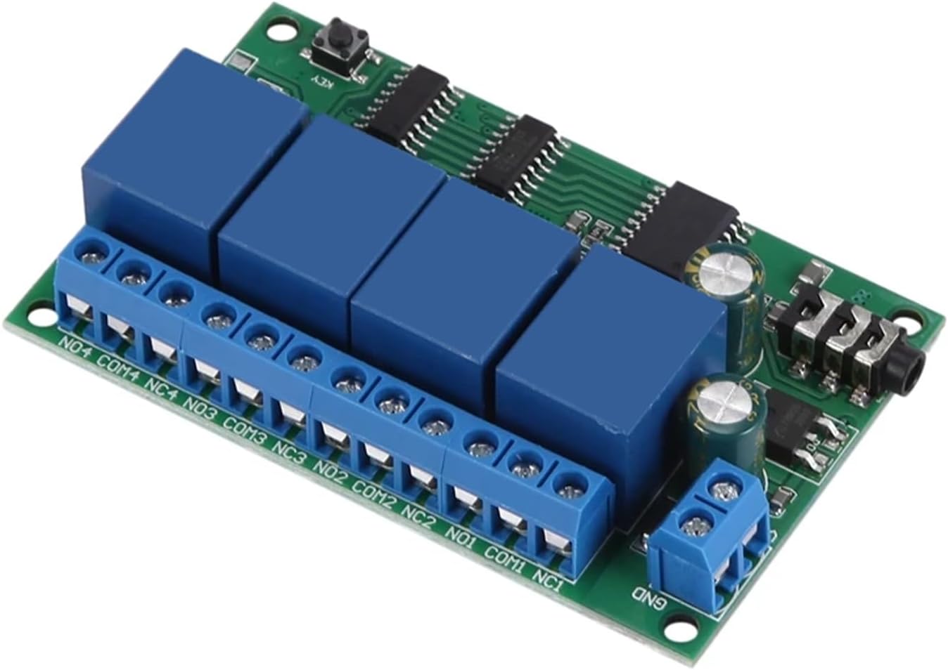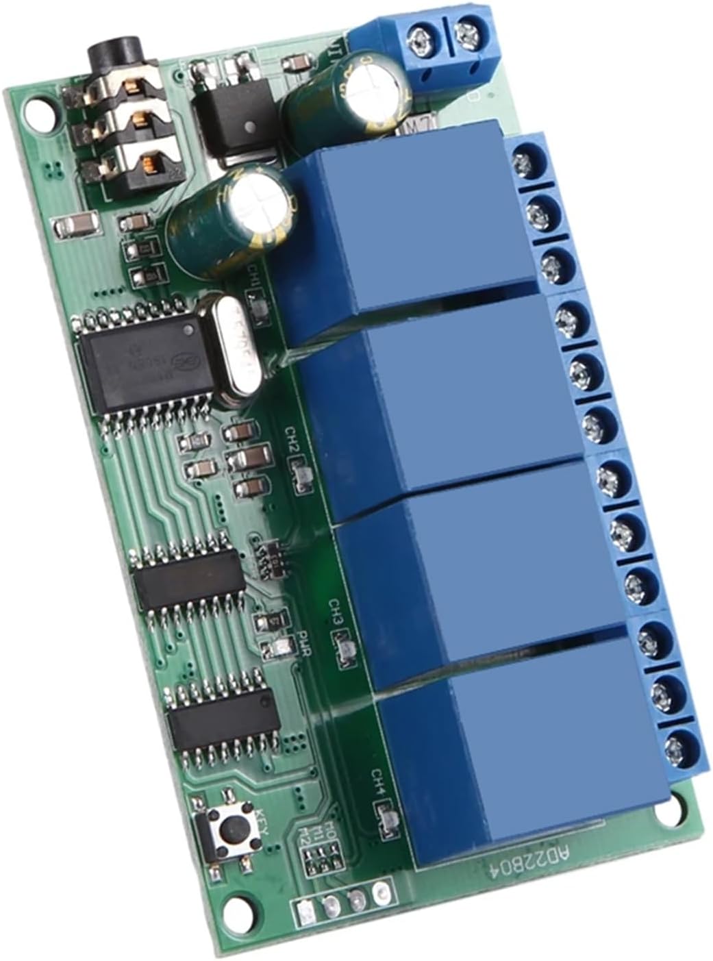 Migliora il tuo sistema di controllo con un relè che decodifica il segnale audio DTMF AD22B04-K e fornisce funzionalità di comando multifunzionali per un'automazione sofisticata Ideale per sistemi di automazione domestica, applicazioni di controllo remoto industriale e gestione di apparecchiature di laboratorio. Questo modulo prospera in ambienti di controllo complessi AD222B04 è adatto agli appassionati di elettronica e agli ingegneri tecnici Con un design robusto con componenti ABS, questo modulo relè funziona a 12 V per telecomandi personalizzabili per prestazioni affidabili e funzionalità elevate. Il comando di controllo predefinito è 1/2/3/4. Ad esempio, comporre 1 per controllare il relè 1, comporre 2 per controllare il relè 2, comporre 3 per controllare il relè 3, comporre 4 per controllare il relè 4. I comandi di controllo possono essere modificati in qualsiasi 1-4Digital (vedere "Note sull'impostazione dei comandi del controller AD22B04 4-K DTMF"