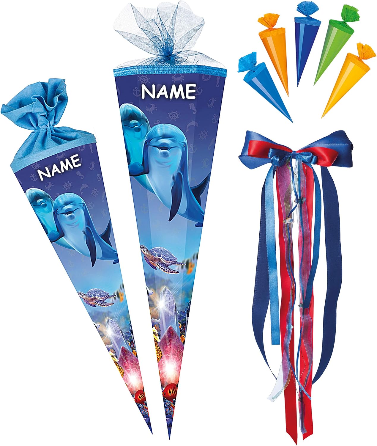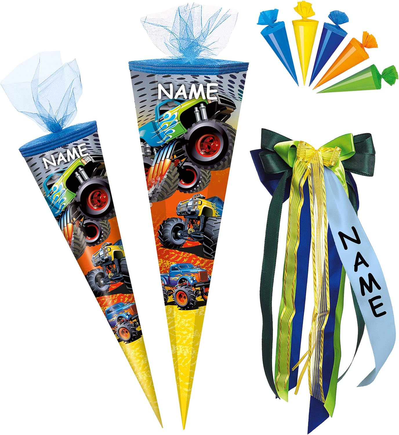 | Material | echte HANDARBEIT & hergestellt in Deutschland ! ___ Material: hochwertiger & beschichteter Karton - wasserabweisend ! __ SUPER Stabil & viel Platz ! ___ tolle Druckfarben ! _____ die obere Kante hat eine edle Webborte und einen Tüll- oder Filzabschluß ___ Form je nach Wunsch: 6-eckig / rund ____ je nach Wunsch - mit / ohne __ Effekt Glitzerdruck & SOUND & LICHT !! __ 70er, 85er und 100er Schultüten haben eine fest eingearbeitete, langlebige + stabile Holzspitze ( original von Roth ) |