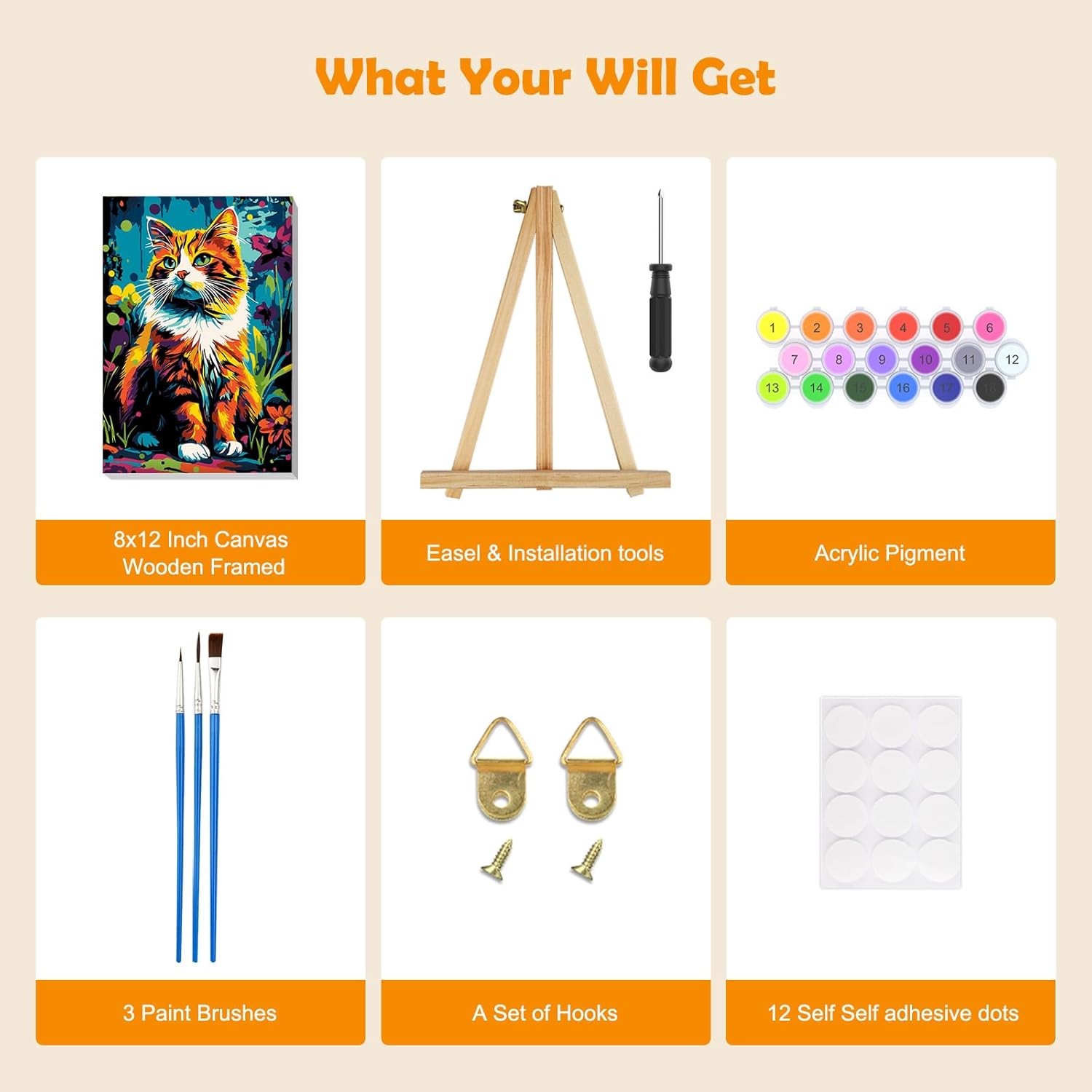 Kit per dipingere con i numeri: tela da 8 x 30,5 cm con cornice e cavalletto, motivo semplice e carino, texture chiaramente prestampata, non richiede abilità di pittura. Basta seguire i numeri sulla tela e poi possono creare un grande dipinto da soli Pigmenti acrilici di alta qualità: la vernice che forniamo è realizzata in vernice acrilica sicura e sana, che può essere utilizzata con fiducia. Inoltre, la vernice acrilica non ha bisogno di essere diluita e può essere utilizzata dopo l'apertura, il che è molto conveniente Contenuto della confezione: ogni kit di pittura per numero include una tela con cornice in legno, un cavalletto in legno, tre pennelli di diverse dimensioni, un set di pigmenti acrilici colorati, un set di ganci per unghie, un'immagine di riferimento e otto punti autoadesivi Fasi del fai da te: prima di tutto, trova il numero di colore sulla tela e inizia a dipingere. In secondo luogo, pulire il pennello e asciugarlo prima di prendere altri colori. In terzo luogo, lasciare asciugare e applicare i punti sui quattro lati del telaio posteriore e infine mostrare il vostro capolavoro Decorazione alla moda e idea regalo: il nostro kit di pittura a olio fai da te è perfetto per decorare il soggiorno, la camera da letto o ovunque tu voglia abbinare diversi stili di decorazione. Inoltre, è un'ottima scelta regalo per familiari, cari e amici