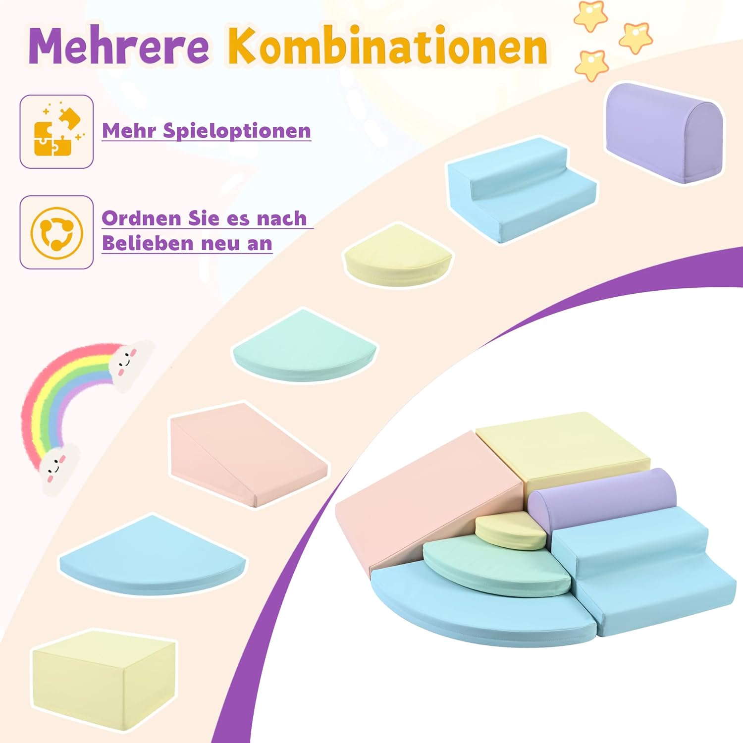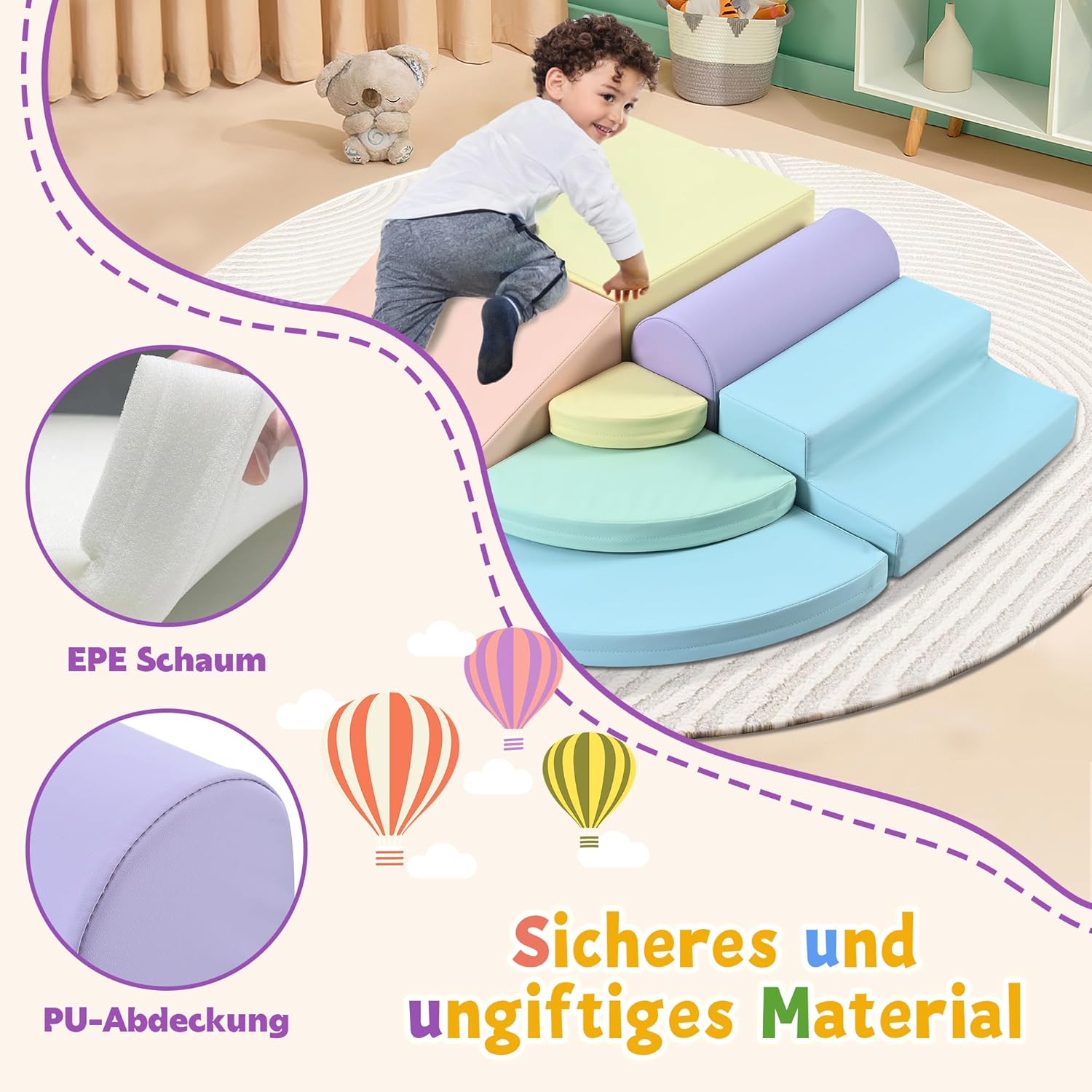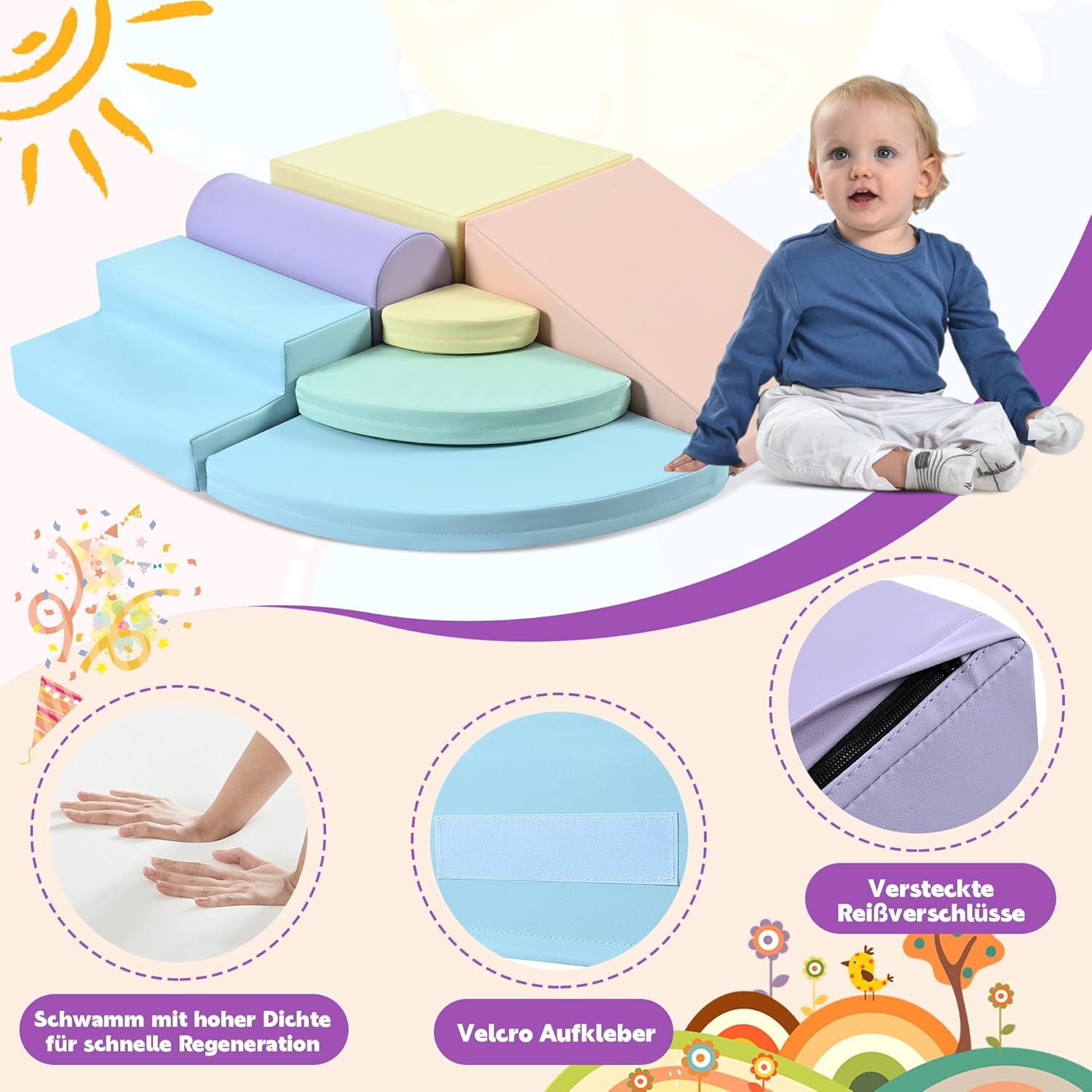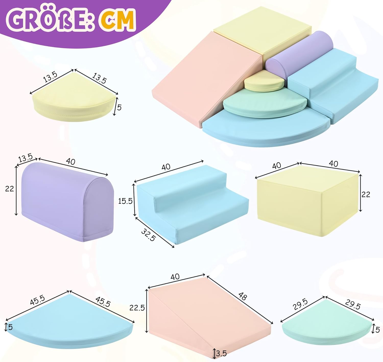 Morbido e sicuro: questo set di giocattoli da arrampicata per bambini è realizzato in schiuma EPE di alta qualità e una superficie morbida e delicata sulla pelle, che offre ai bambini un equipaggiamento giocattolo ben studiato per giocare tutto il giorno. Il set di giocattoli da arrampicata è stato sviluppato appositamente per i bambini e mira a fornire comfort e sicurezza ai bambini. Versatili possibilità di gioco: lo scopo principale di questo tappetino per gattonare è quello di promuovere lo sviluppo fisico e le capacità di movimento dei bambini e allo stesso tempo fornire loro un ambiente sicuro in cui giocare, imparare e scoprire. I giocattoli sono generalmente leggeri, facili da trasportare e riporre, quindi sono adatti sia per l'uso domestico che per gli asili. Stampo per pizza unico: rendi il tempo di gioco dei tuoi bambini ancora più interessante e delizioso! Il nostro tappetino per gattonare con cura a forma di pizza sembra una deliziosa pizza e garantisce infinite sorprese e divertimento. Ogni pezzo di pizza è un omaggio unico al cibo e all'infanzia, consentendo ai bambini di godere di infinite creatività e gioia di esplorare nel loro gioco. Set completo: questo set di giocattoli da arrampicata include tre tappetini triangolari, un modulo rettangolare, una scala, una rampa da arrampicata e un blocco semicilindrico. Il set offre una gamma completa di possibilità di gioco e allenamento, in modo che i bambini possano cambiare e assemblare liberamente le parti. Regalo delizioso per piccoli buongustai: sia per compleanni, vacanze o occasioni speciali, questo delizioso panno morbido a forma di pizza è il regalo perfetto. Lasciate che il nostro tappetino per gattonare diventi un gustoso ricordo dell'infanzia e accompagnate i bambini mentre crescono allegramente!