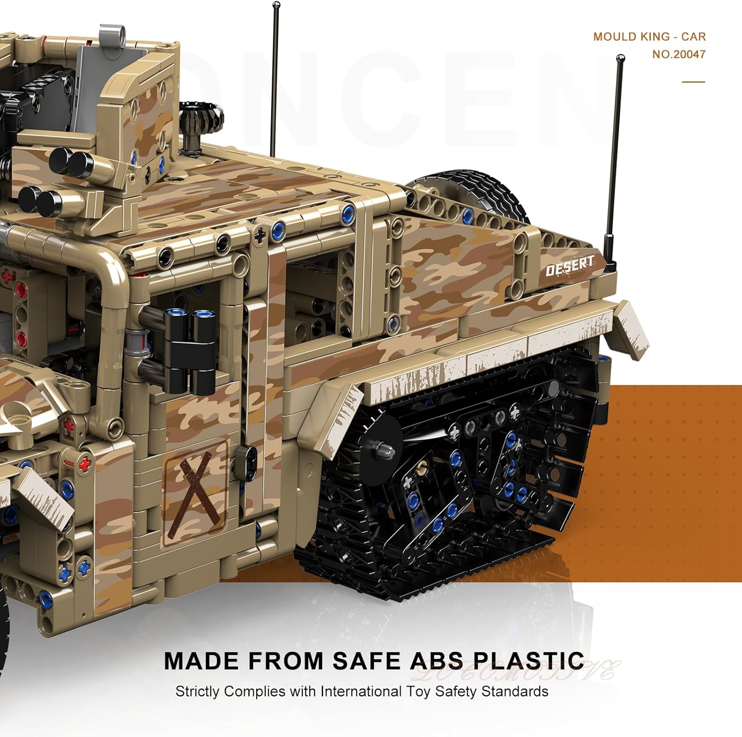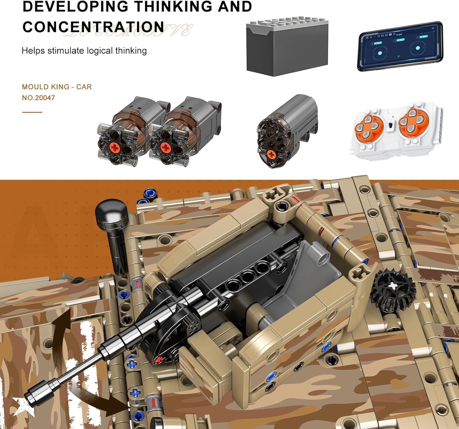 Veicolo militare a catena da 2094 pezzi: costruisci questo impressionante veicolo militare con un'armatura dettagliata, una torre del cecchino rotante e interni realistici. Le porte e il portellone posteriore sono mobili per un'autentica esperienza di gioco. Controllo remoto e applicazione: controllabile tramite radiocomando o applicazione per smartphone! Il motore consente movimenti precisi della catena per un piacere di gioco dinamico. Dettagli funzionali e realismo: la torre del cecchino girevole a 360°, le parti mobili e il design potente rendono questo modello un punto culminante per gli appassionati di tecnologia e gli appassionati militari. Giocattolo educativo STEM: promuove la comprensione meccanica, il pensiero logico e le capacità motorie - ideale per ingegneri in erba dai 14 anni in su. Dimensioni: 40,2 x 21,5 x 18 cm (15,8 x 8,5 x 7,1 pollici) La dimensione perfetta per una costruzione dettagliata e un aspetto di visualizzazione impressionante.