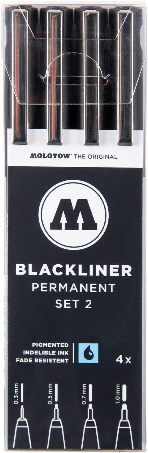 Base d' acqua, inchiostro pigmentato, dokumentenechte Coprente, permanent, impermeabile e resistente agli agenti chimici Metallgefasste punte da 0.3, 0.5, 0.7.e 1,0.mm Ideale per outlines, stencil e schizzi Per applicazioni in interni, per fine e linee precise