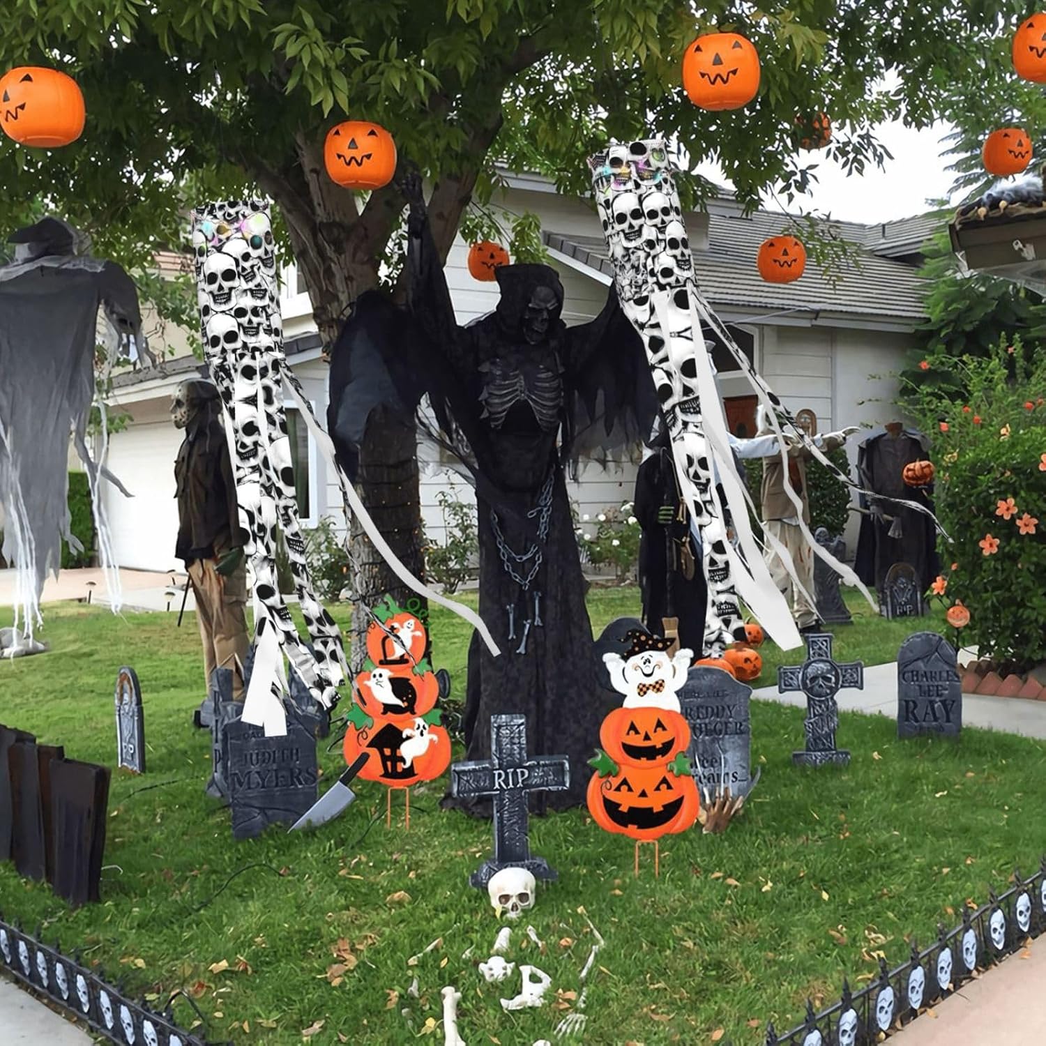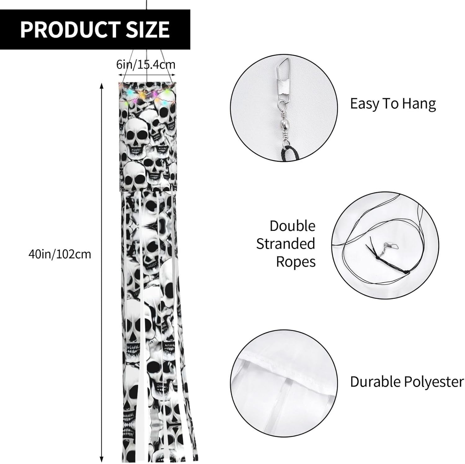 Realizzate con materiale leggero e arioso: le nostre calze a vento sono realizzate in poliestere leggero e svolazzante, progettate per un'asciugatura rapida e un volo ventilato, creando uno splendido display dinamico con le loro nove code. Ideali per tutte le feste: queste calze a vento sono perfette per Halloween, Natale e altre vacanze. Aggiungeranno un fascino accattivante a giardini, strade, parchi giochi, aperture di eventi e altro ancora. Struttura intelligente: misura 102 cm di altezza e 15,4 cm di larghezza, queste calze a vento hanno un'asta di supporto integrata e un connettore di tipo A sulla corda di nylon a tre lati lunga 40 cm per appenderlo in modo sicuro e facile. Illuminazione opzionale: scegli tra la nostra versione con una deliziosa stringa di luce a LED colorata per uno spettacolo notturno scintillante o la versione non illuminata per un elegante display diurno. Istruzioni per la cura: per mantenere il loro aspetto vivace, queste calze a vento devono essere lavate a mano e asciugate all'aria naturalmente. Si sconsiglia il lavaggio in lavatrice e la candeggina.