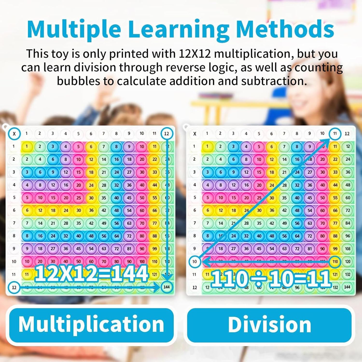 Aiuto per l'apprendimento della matematica sensoriale: Progettato come aiuto per l'apprendimento del feedback sensoriale, il Math Pop Board promuove il rafforzamento delle abilità matematiche basato sul gioco attraverso l'interazione tattile. Aiuta i bambini a rimanere concentrati e calmi, il che è particolarmente utile nelle aule affollate o negli ambienti di apprendimento silenziosi. Questa versatilità lo rende uno strumento ideale per diversi contesti educativi e supporta l’apprendimento con riduzione dello stress. Efficace aiuto didattico: Multiplication Pop 12x12 integra un layout attraente e codificato a colori per aiutare gli insegnanti e i genitori a esercitarsi. Promuove il riconoscimento dei modelli e il miglioramento della memoria attraverso esperienze di apprendimento arricchenti per tutte le età. Sviluppo di abilità coinvolgenti: questo prodotto combina attività matematiche coinvolgenti con il gioco tattile. Lo speciale formato delle bolle che scoppiano rafforza la comprensione numerica e le abilità aritmetiche in modo giocoso e crea gioiosi momenti di scoperta in ambienti educativi e ricreativi. Comodità portatile: la tavola per l'apprendimento delle moltiplicazioni consente di esercitarsi in matematica all'aperto grazie al suo design leggero e pronto per il viaggio. È facile da trasportare per imparare ovunque e offre un'istruzione varia durante i viaggi o gli spostamenti. Occupazione significativa: migliora le capacità di risoluzione dei problemi e la comprensione matematica attraverso giochi motivanti. Regalo di apprendimento arricchente per le vacanze o il tempo educativo che incoraggia i più piccoli con divertenti attività matematiche.