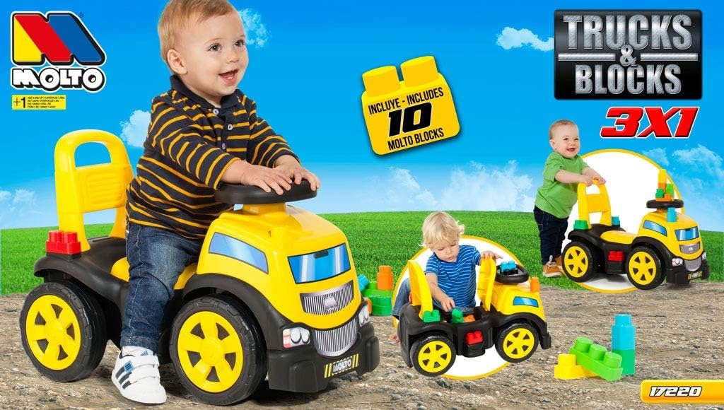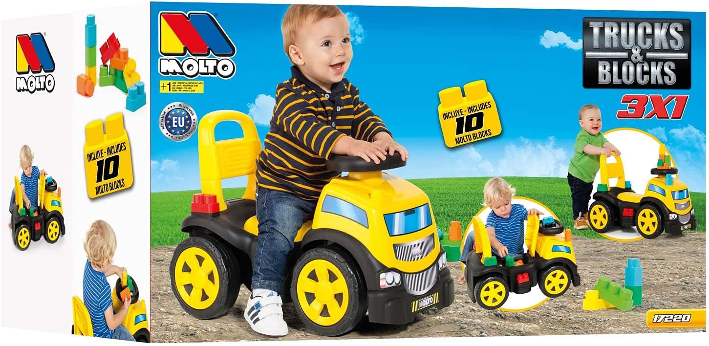 🚴【MOLTO 3-in-1 Runner con set di blocchi incluso】Grazie a questo favoloso corridore da corridoio a forma di camion, i tuoi piccoli potranno imparare a camminare, correre e costruire con il loro set di blocchi da 10 pezzi tutto in uno! Grazie al loro ampio bagagliaio, potranno trasportare facilmente i loro blocchi per giocare ovunque. Il supporto lombare è perfetto per far imparare a camminare i tuoi bambini fino ai 36 mesi circa. 🏫【ALLENATI MENTRE GIOCI】Esercita le tue abilità di guida e di pilotaggio con questo favoloso camion giocattolo di Molto. I tuoi piccoli potranno divertirsi su qualsiasi terreno con questo fantastico camion. 👶【GIOCATTOLI PER LO SVILUPPO DI RAGAZZI E RAGAZZE】I giochi di diapositive giocattolo promuovono lo sviluppo cognitivo di bambini e neonati in modo che imparino attraverso il gioco fin dalla tenera età. I tuoi bambini si divertiranno a giocare migliorando le loro capacità motorie generali, incoraggiando il gioco all'aperto e incoraggiando una sana competizione. 🔧【Dimensioni】60 x 30 x 43 cm. ✨ 【MOLTO】 è un'azienda riconosciuta a livello nazionale e internazionale, presente in più di 100 paesi e con una gamma di prodotti di oltre 300 referenze. Nel corso di questi 60 anni Molto ha consolidato il proprio marchio come sinonimo di fiducia, qualità e design, adattando il giocattolo tradizionale alle nuove generazioni di bambini. Tutti i nostri giocattoli sono progettati per essere forti, robusti e durevoli.