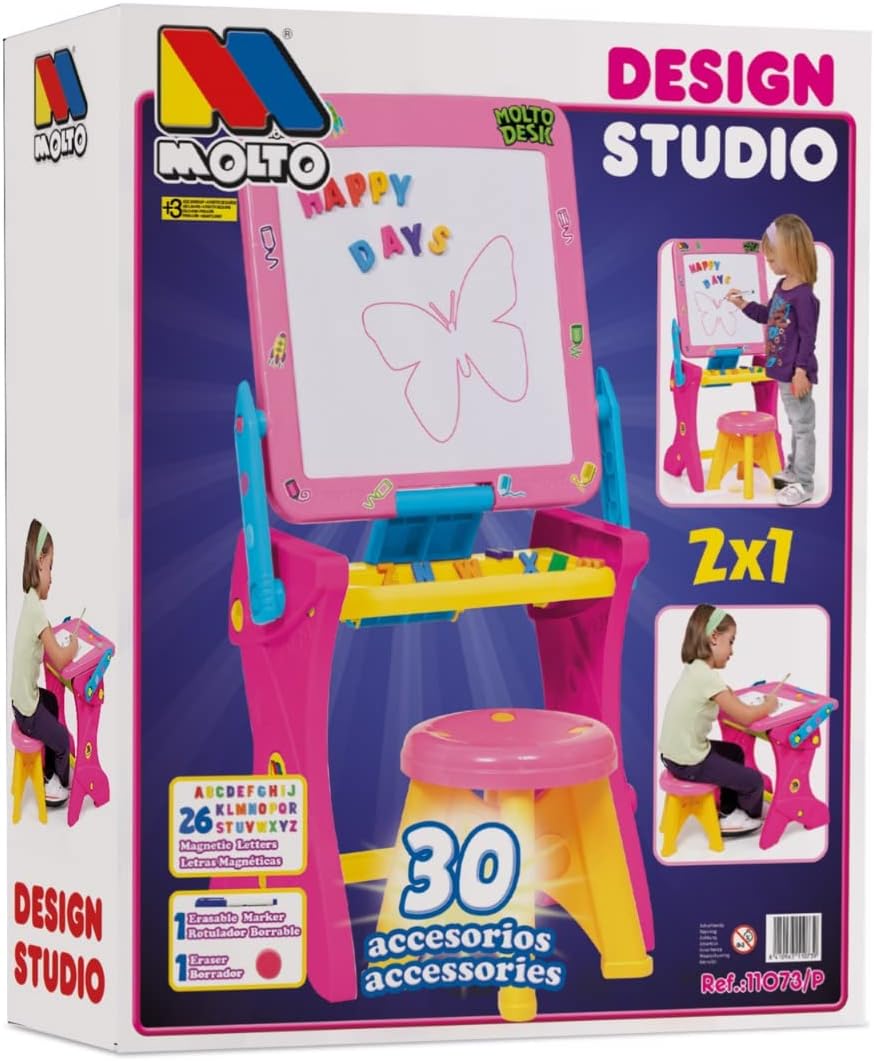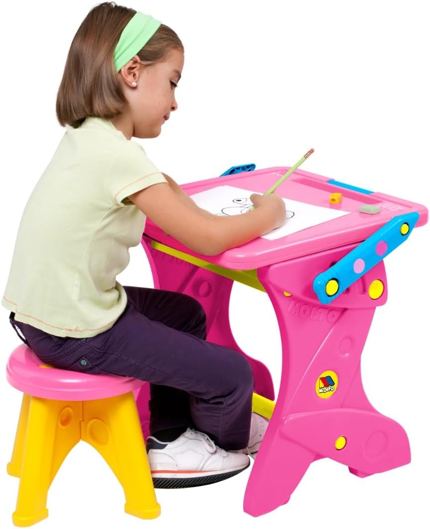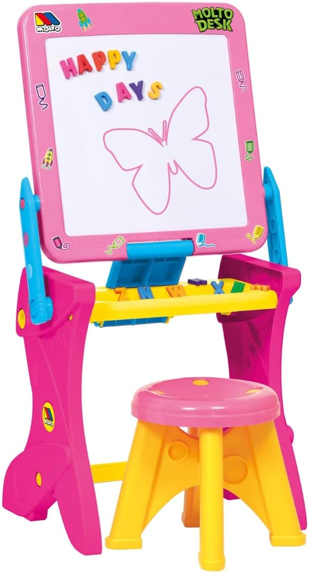 Fantastica scrivania + lavagna per dare libero sfogo alla creatività dei bambini. Gli scrittoi 2 in 1 includono una matita, un temperino, una gomma, un fantastico pennarello e dieci gessetti colorati. Le scrivanie magnetiche 3 in 1 includono 26 lettere magnetiche, 1 pennarello e 1 gomma.