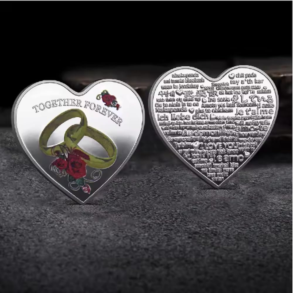 Moneta Commemorativa A Forma di Cuore, Moneta Portafortuna Ti Amo, Monete da Collezione, Monete da Sfida Placcate in Argento, Souvenir di Nozze, Regalo