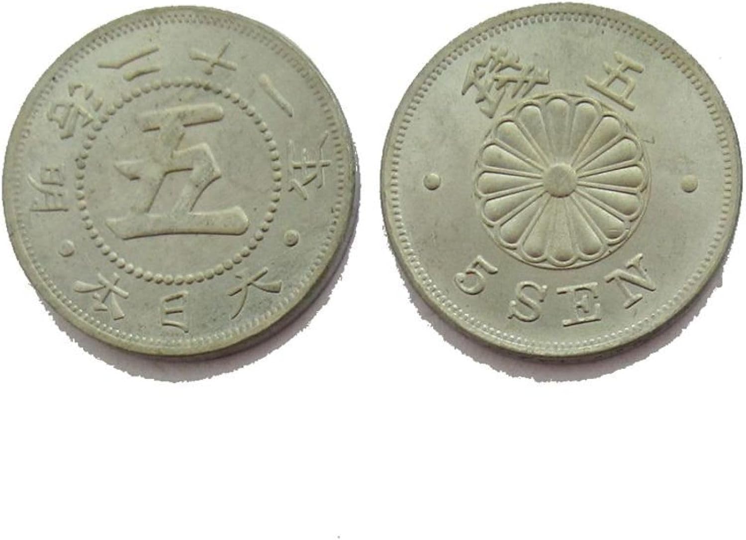 Moneta commemorativa Giapponese da 5 centesimi Meiji 21° Anno, Replica Bianca JP74