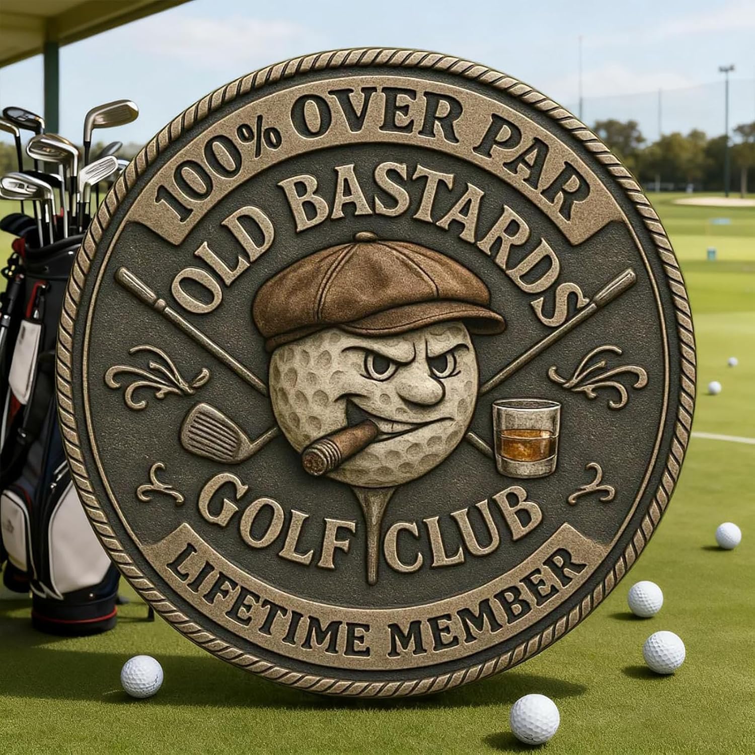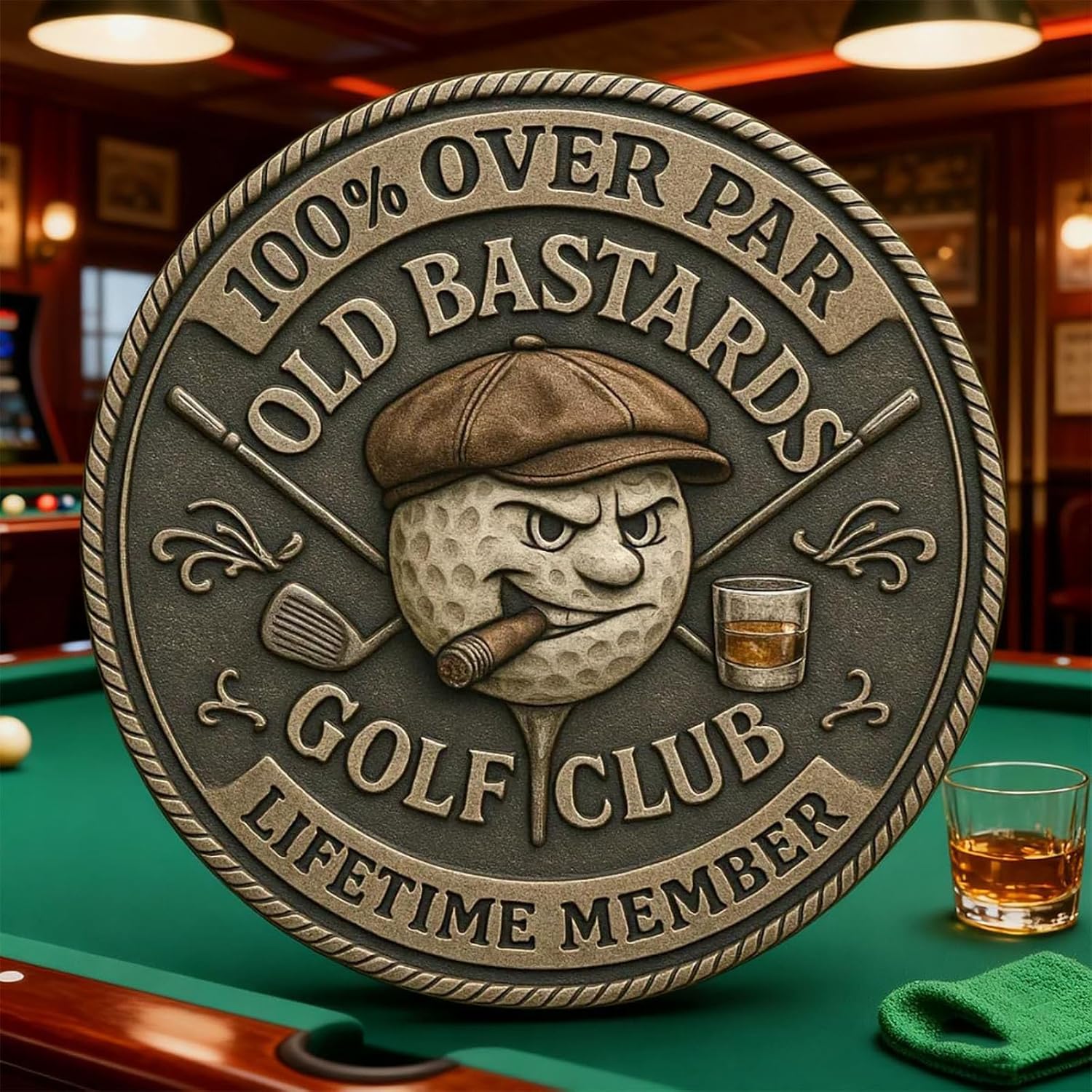 Design umoristico: la moneta da golf "Over Par Old Bastards" presenta un pezzo di metallo dal design unico che raffigura una pallina da golf burbera, completa di sigaro e whisky, rendendola la moneta da golf perfetta per divertirsi. Iscrizione audace: con iscrizioni audaci come "100% OVER PAR" e "LIFETIME MEMBER", questa moneta da golf cattura l'essenza dell'umorismo del golf club dei vecchi bastardi. Regalo scherzoso perfetto: un ricordo divertente e audace per compleanni, pensionamenti, tornei o per qualsiasi golfista che ami l'umorismo senza filtri dentro e fuori dal green. Uso versatile: usa questa moneta over par come marcatore per palline da golf o esponila come cimelio golfistico audace. Le sue immagini provocatorie susciteranno conversazioni e risate tra amici, rivelandosi un'aggiunta memorabile alla collezione di qualsiasi golfista. Spunto di conversazione: Che sia esposta in una sacca da golf, nella caverna dell'uomo o in ufficio, questa moneta suscita risate e cenni di assenso da parte di ogni "vecchio bastardo" che ha visto qualche bogey di troppo.