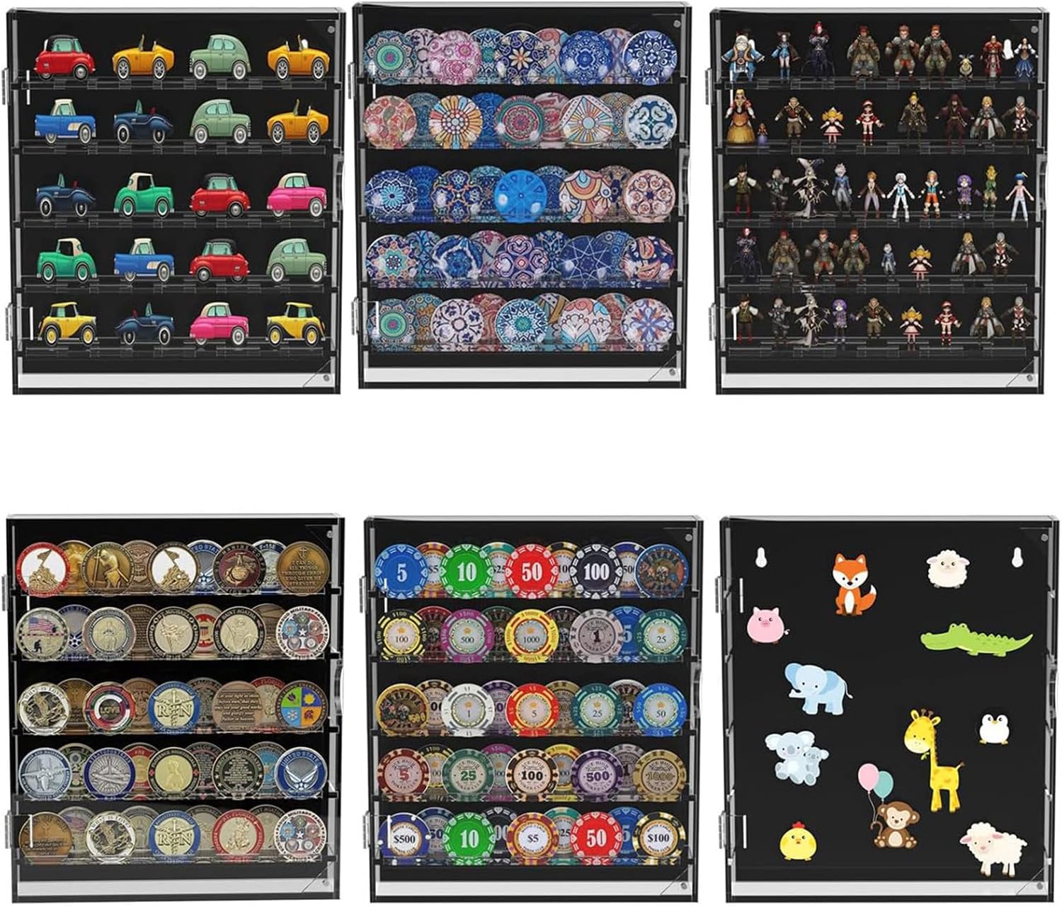 Per collezionisti, artigiani e appassionati di moda, questo disco espositivo per tutti coloro che vogliono organizzare ed esporre la loro preziosa collezione di Pin o gioielli. Migliorare la decorazione di una stanza con questi versatili organizzatori; adatto per l'uso in camere da letto, sale artigianali o piccole imprese dove oggetti da collezione e accessori possono aggiungere un tocco di eleganza. Trasforma la tua parete in un display delle tue spille e accessori preferiti. Monete acriliche display come oggetti decorativi, che lo rende un must per coloro che apprezzano entrambe le organizzazioni. Mostra la tua collezione di monete con la mappa di visualizzazione della moneta acrilica, un organizzatore con una copertura magnetica trasparente che garantisce che i tuoi spilli fusibili, spille e distintivi siano sicuri e visualizzati con eleganza. Questo porta monete accuratamente progettato con 5 strati e offre spazio Amples per contenere oggetti, mentre acrilico offre durata ed eleganza look.